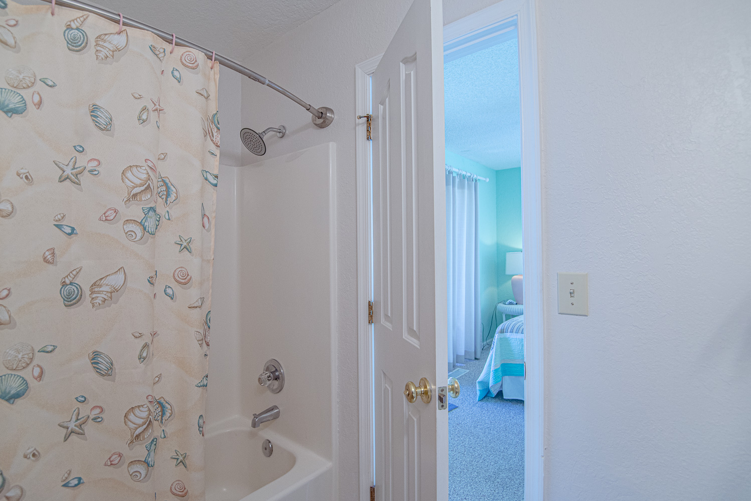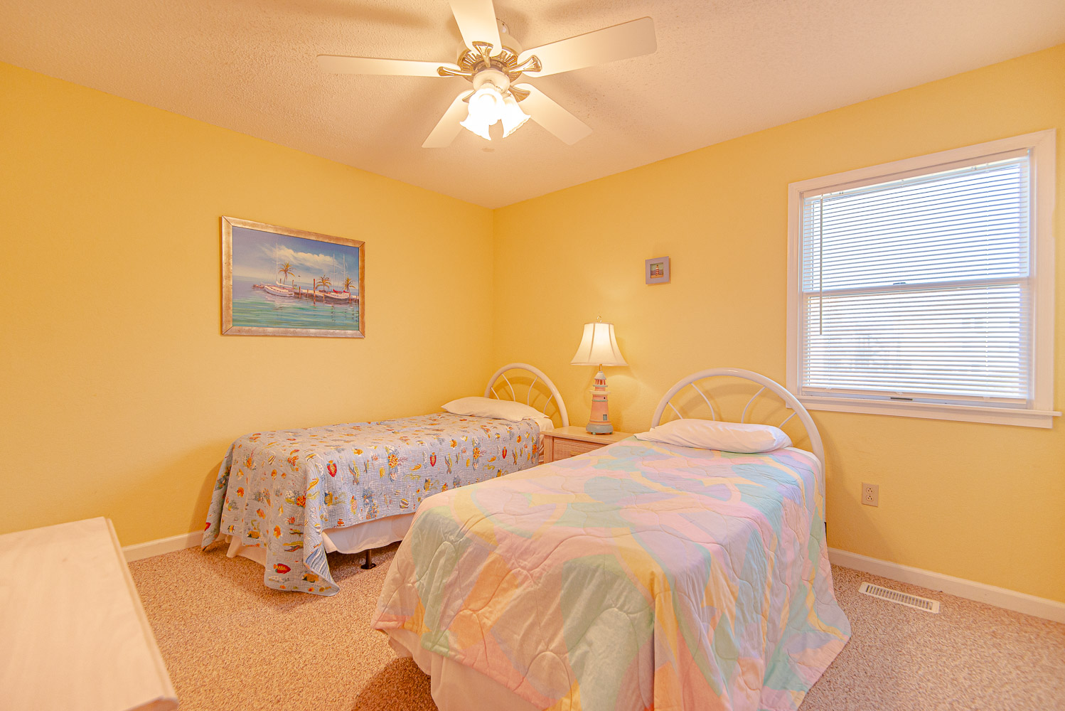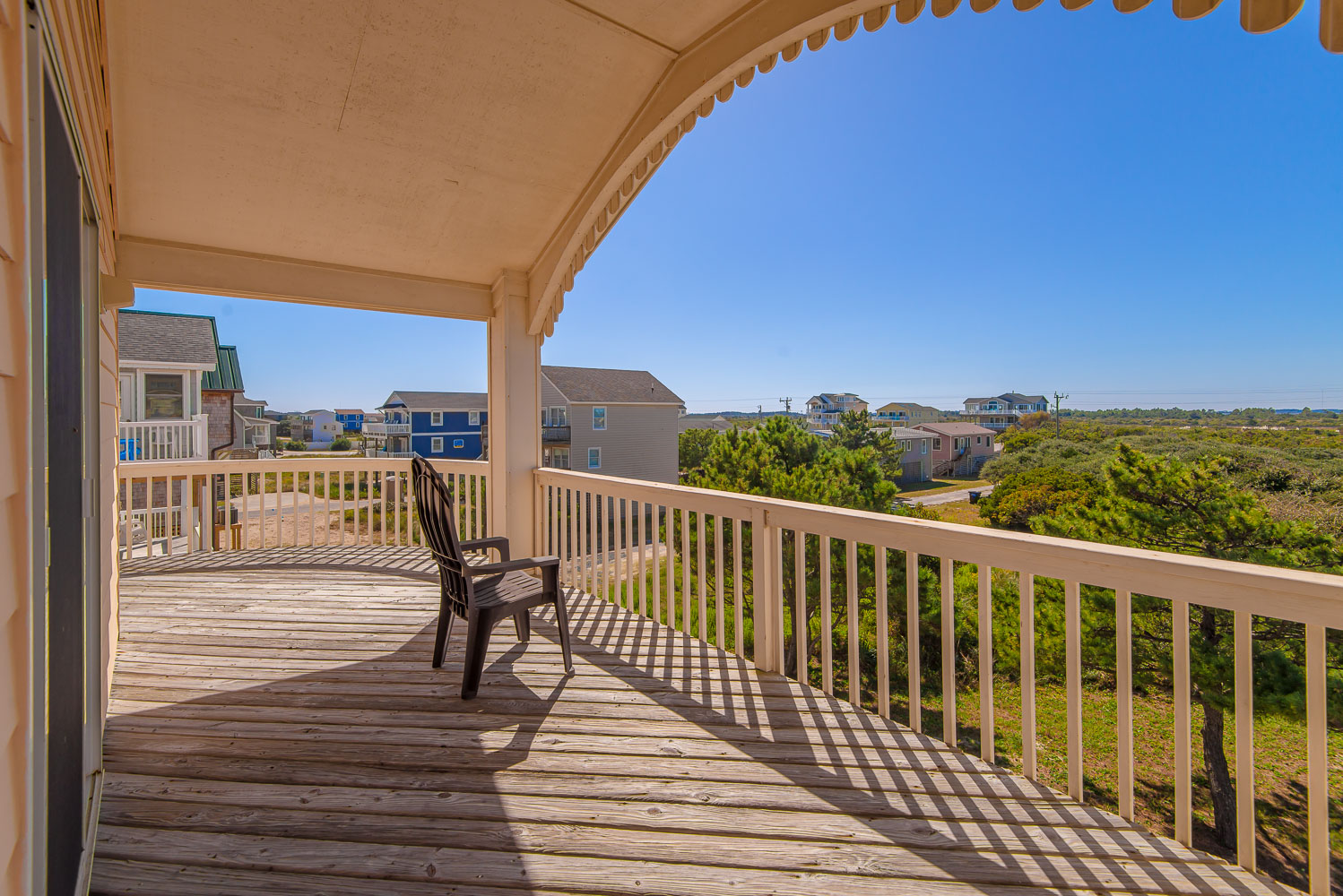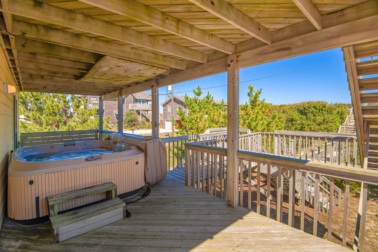 Mid Level: 5 Bedrooms (Private Suite w/Queen, TV, DVD, Full Bath w/Jacuzzi Tub, Walk-In Shower; 2 w/Queens; 1 w/Bunk Set; 1 w/2 Singles), 2 Full Hall Baths, Laundry Area, Covered Deck w/Deck Furniture, Oceanfront Covered Deck w/Hot Tub , & Walkway to Beach w/Dune Top Deck, Steps to Beach, & Ocean Views.
