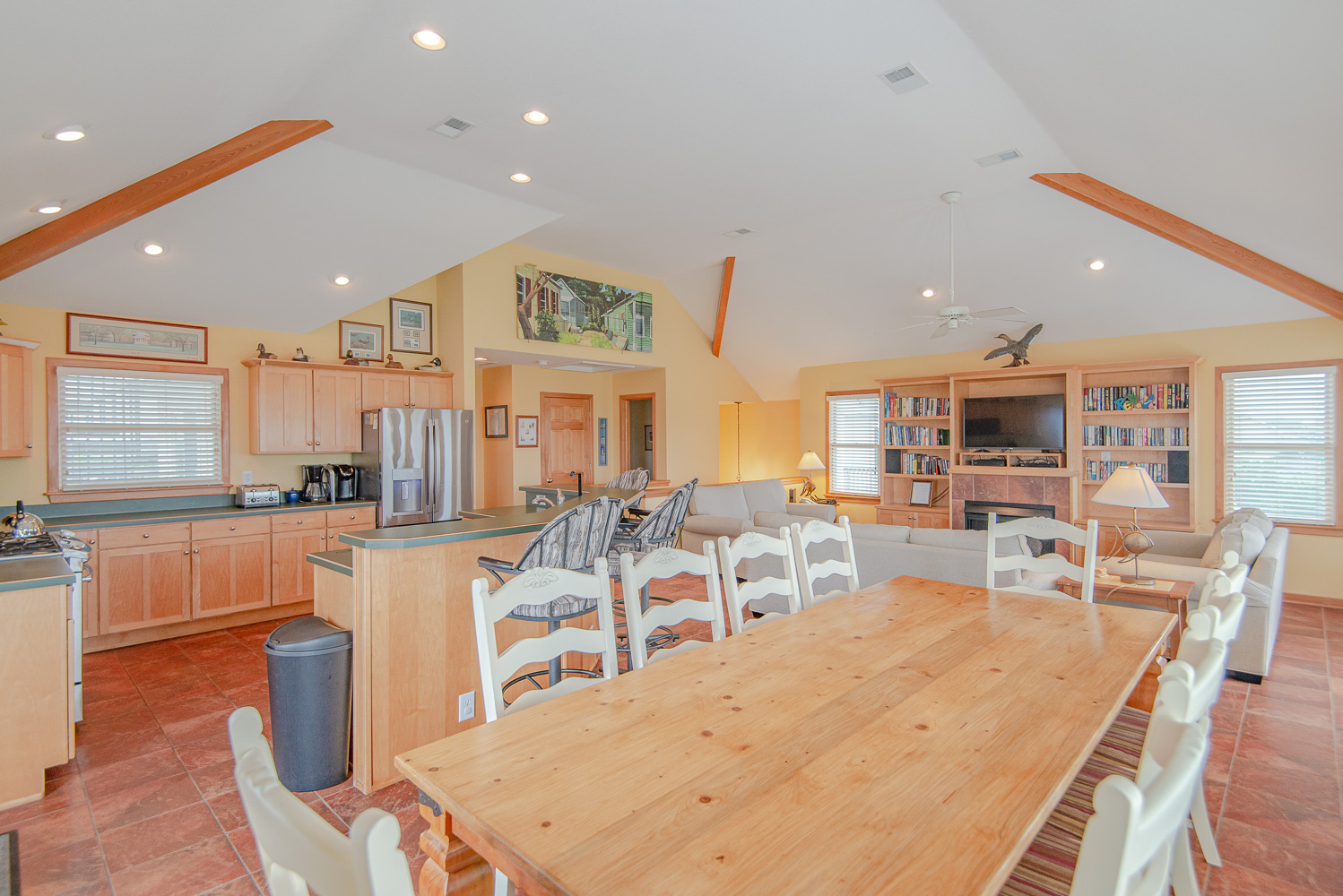 Top Level: Living/Dining/Kitchen Area, Smart TV, Stereo w/CD, Large Variety of Books, Gas Fireplace, Kitchen w/Bar Eating Area, Stainless Steel Appliances, Pantry, Half Bath, Private w/King, Full Bath, Smart TV; Screen Porch w/Picnic Table, Access Sun Deck Overlooking Private Swimming Pool & Sanctuary, & Steps to Observation Deck w/Incredible 360 Degree Views from Ocean to Sound.