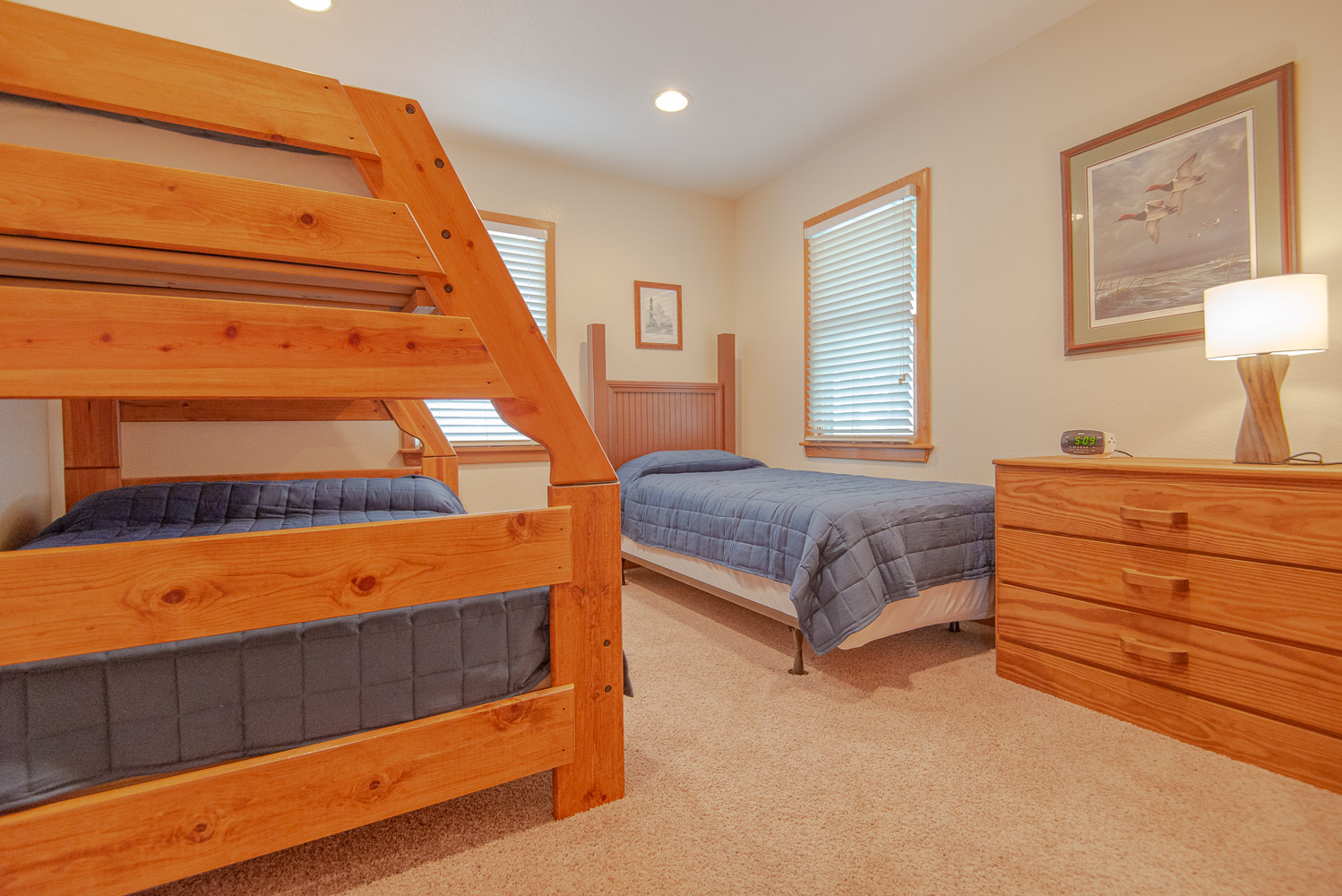 Mid Level: 4 Bedrooms (Private Suite w/King, Smart TV, Full Bath; Private Suite w/King, Smart TV, Full Bath; 1 w/Queen w/Smart TV, 1 w/Duo Bunk, Single), Shared Full Bath, Laundry Area, & Access to Wrap Around Covered Deck.