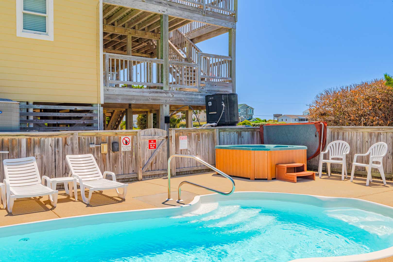Ground Level: Parking for 5 Cars, Covered Entry, Full-size Refrigerator, Access to Private Heated Swimming Pool - Open Seasonally (Can Be Heated For $250.00 Per Week, Plus Tax. Please Bear in Mind That Pool Temperature is Subject to Outside Temperatures & Conditions), Hot Tub, Ample Pool Furniture, Enclosed Outside Shower w/Dressing Area & Half Bath, & Park Grill.