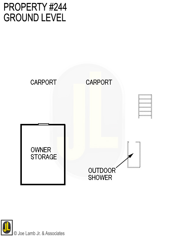 Ground Level: Parking for 4 Cars, Steps to Mid Level Covered Entry, Enclosed Outside Shower, Fish Cleaning Station, and Grill.