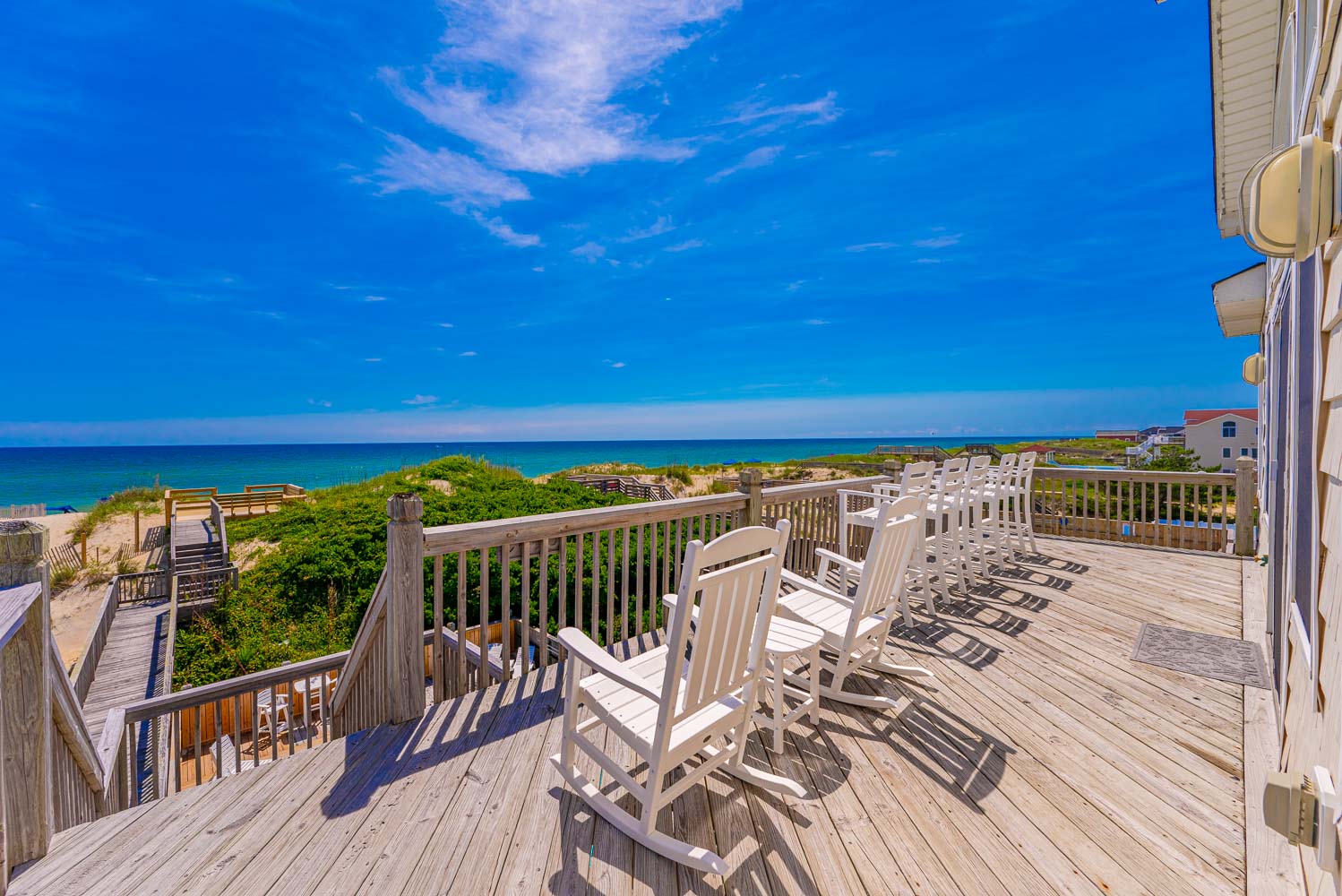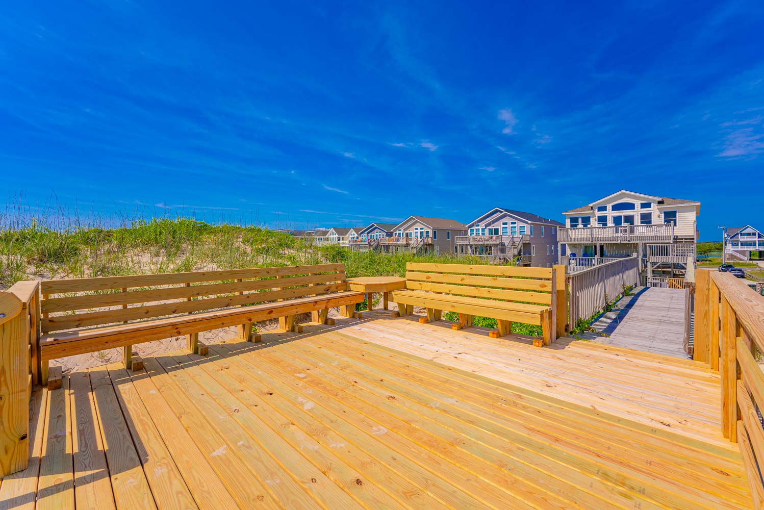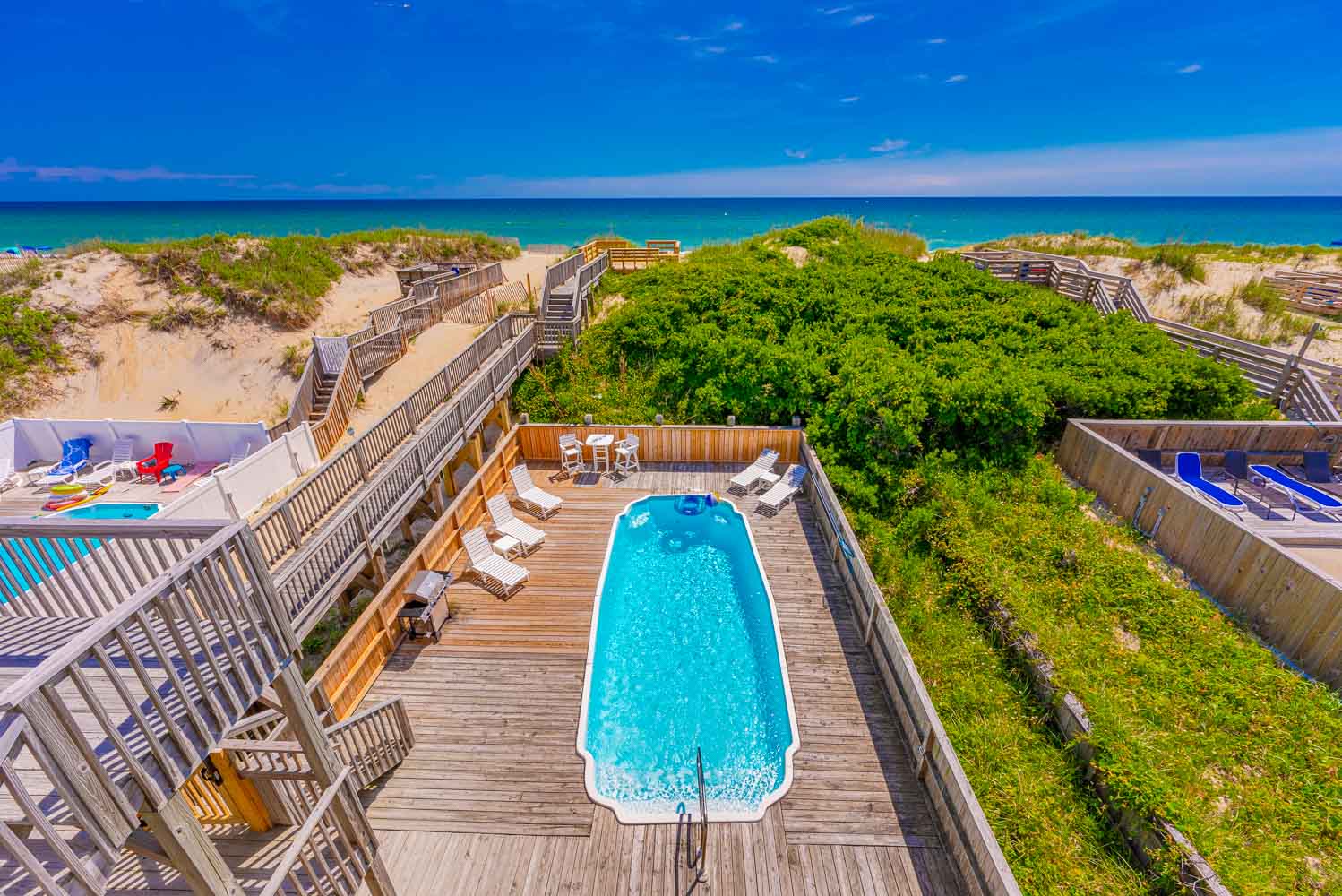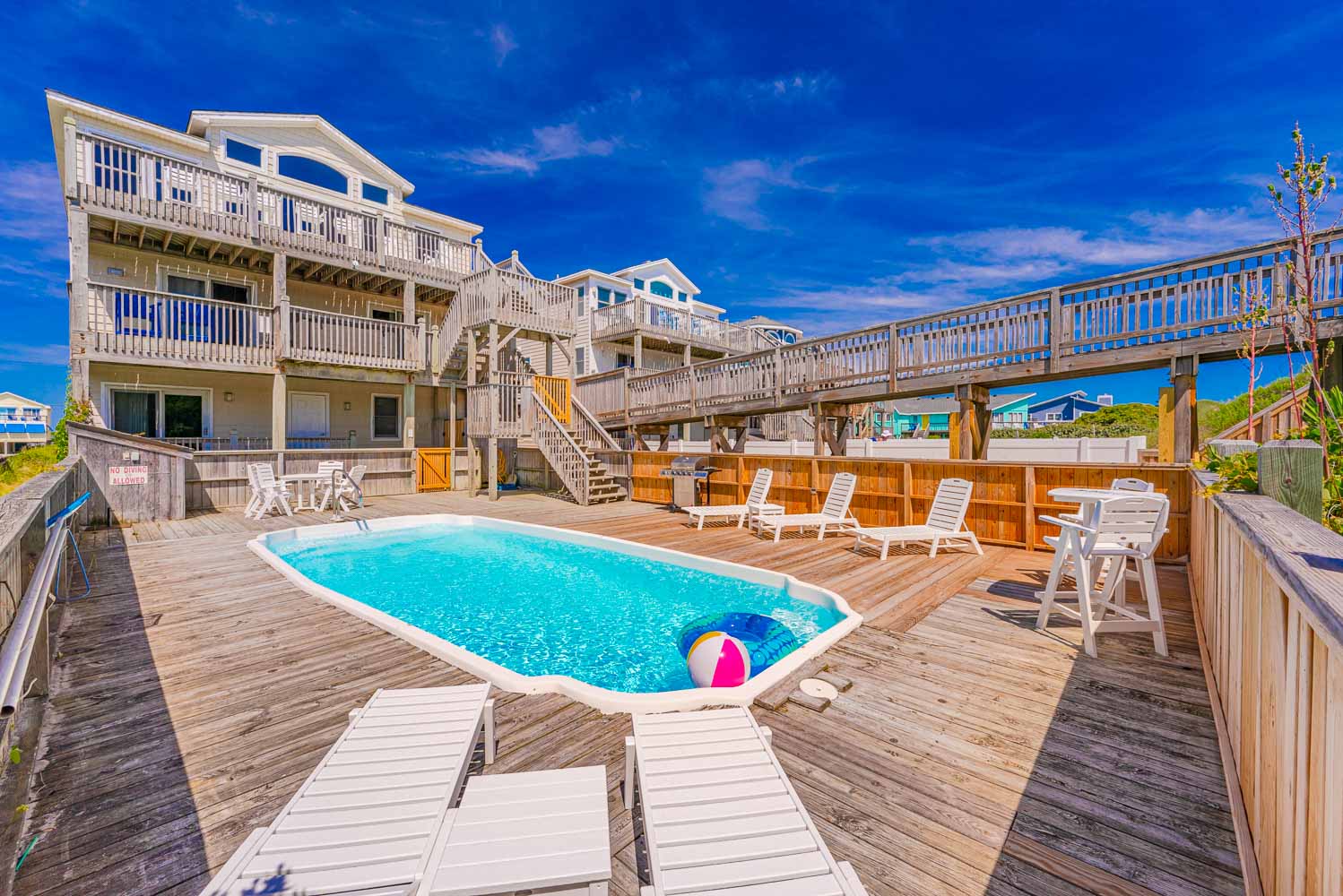 Sand Dollar has terrific ocean views, a wide beach, private oceanfront swimming pool, hot tub, and rec. room w/pool table. Spacious (4,000 square feet), beautifully decorated, well-equipped house makes it easy and comfortable to entertain your family. Designed to accommodate your vacation needs with ample deck and pool furniture for your group. This wonderful home provides all the ingredients your family will need for a memorable vacation. New, large deck by the ocean with built in benches, places to pop in an umbrella, overlook the beach in the shade, and drop beach gear after a day at the beach without taking back to the house.