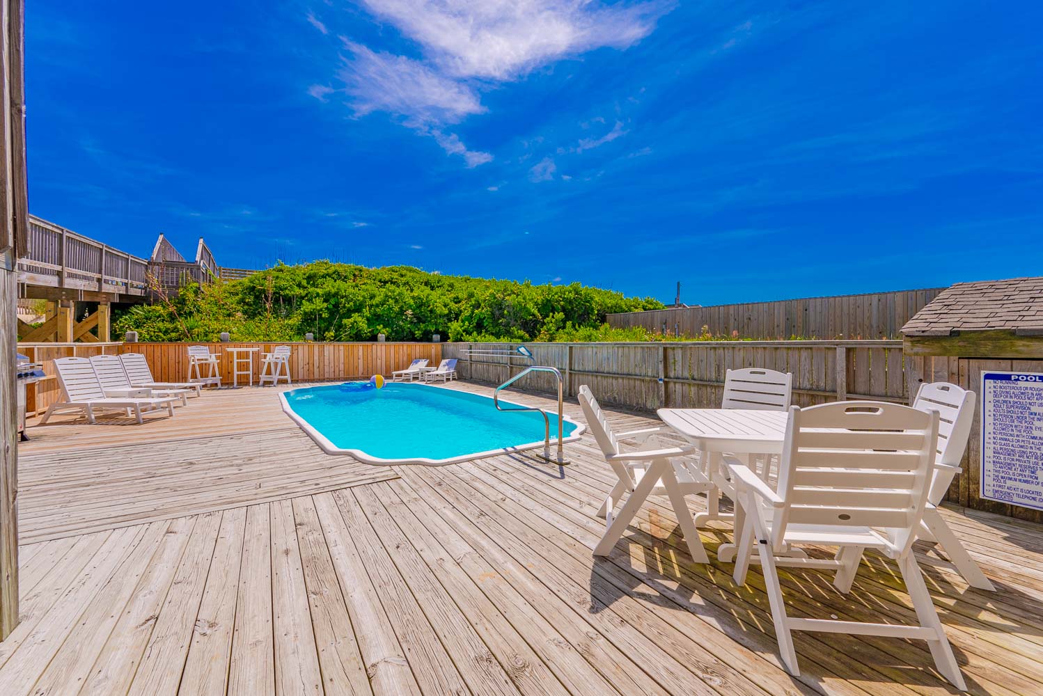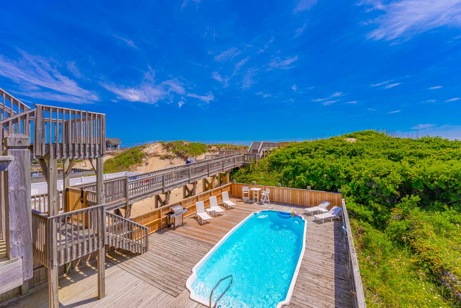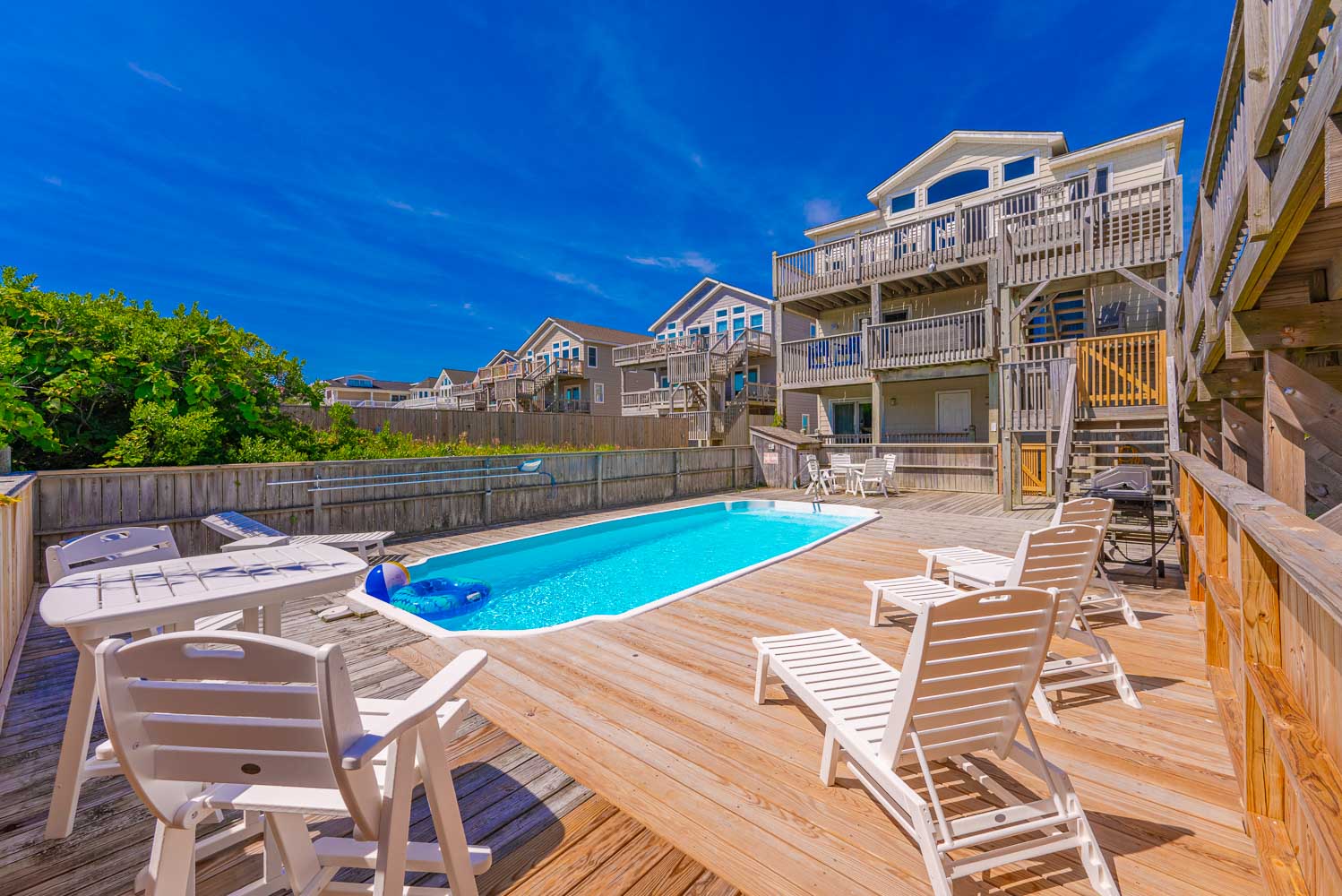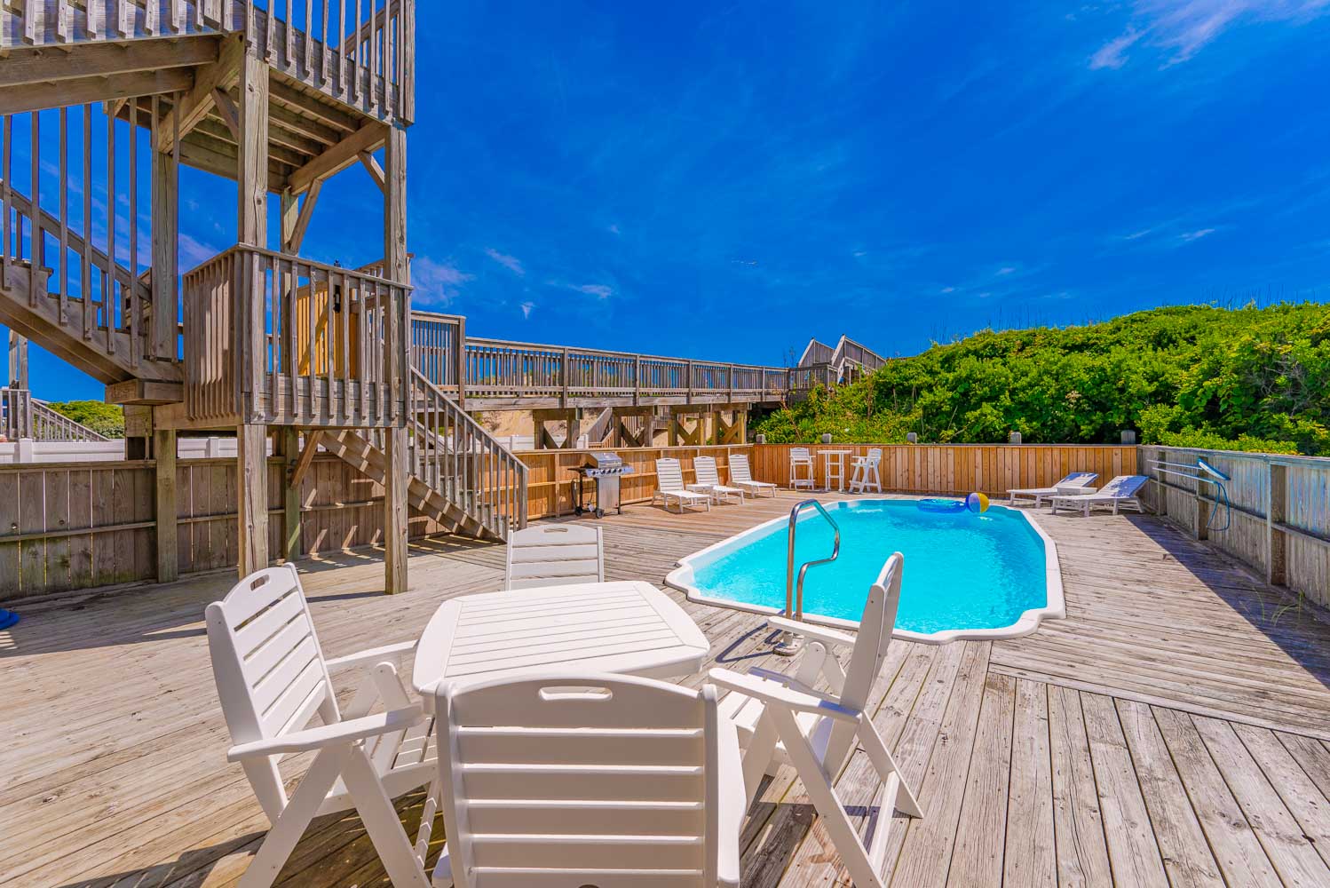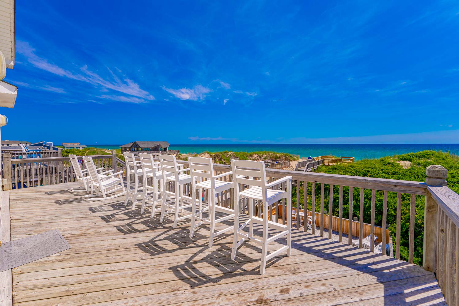 Sand Dollar has terrific ocean views, a wide beach, private oceanfront swimming pool, hot tub, and rec. room w/pool table. Spacious (4,000 square feet), beautifully decorated, well-equipped house makes it easy and comfortable to entertain your family. Designed to accommodate your vacation needs with ample deck and pool furniture for your group. This wonderful home provides all the ingredients your family will need for a memorable vacation. New, large deck by the ocean with built in benches, places to pop in an umbrella, overlook the beach in the shade, and drop beach gear after a day at the beach without taking back to the house.