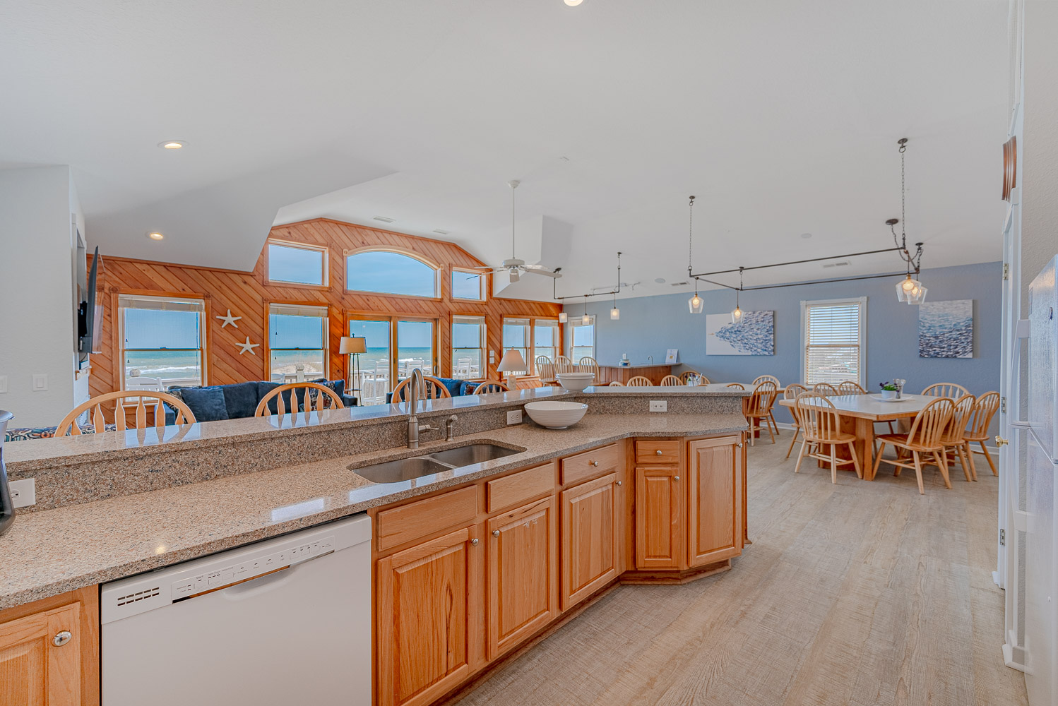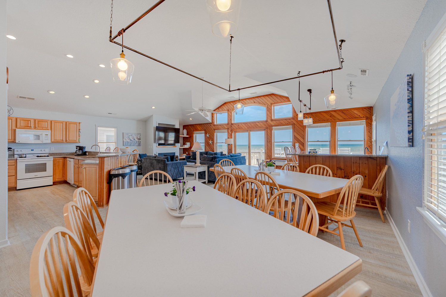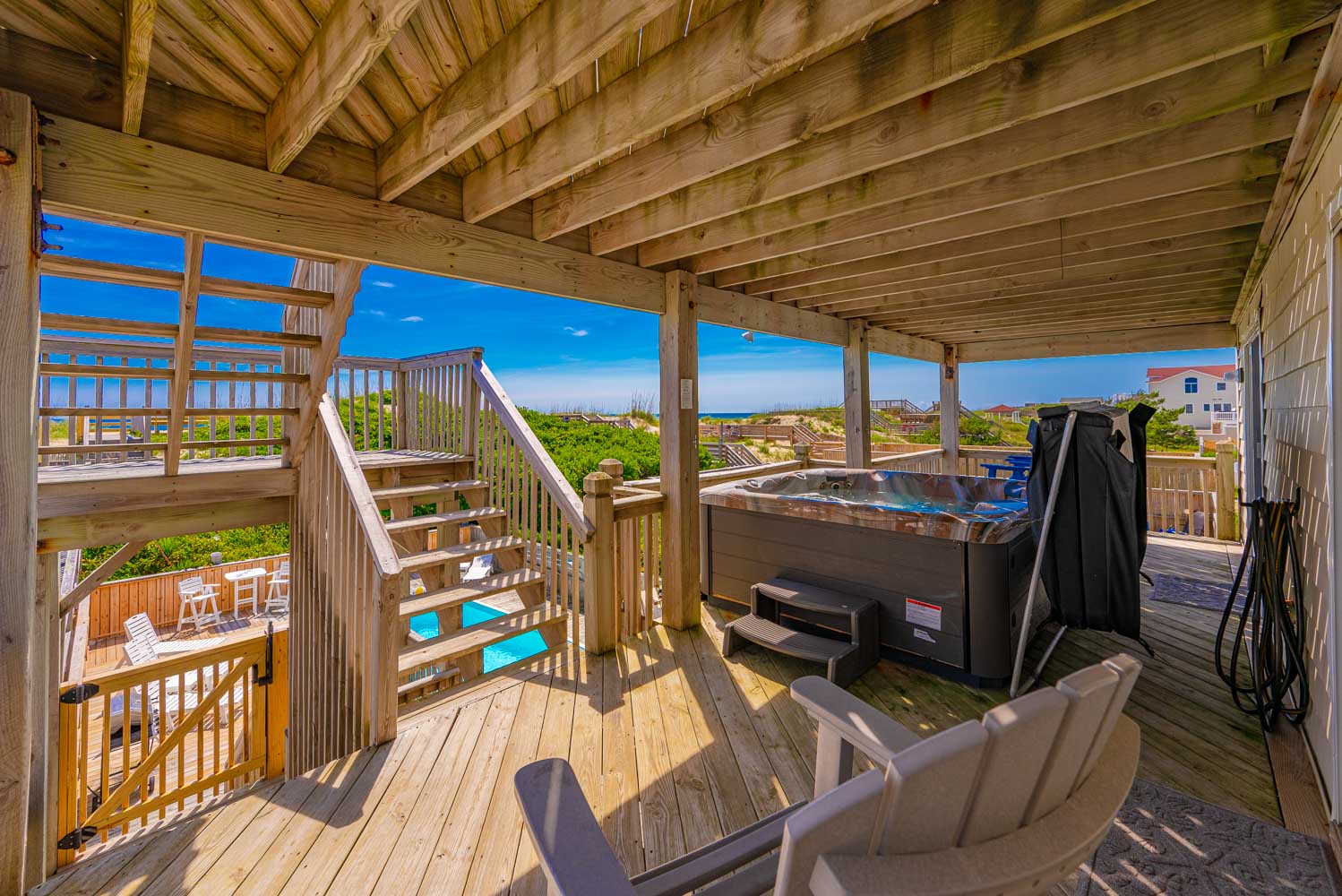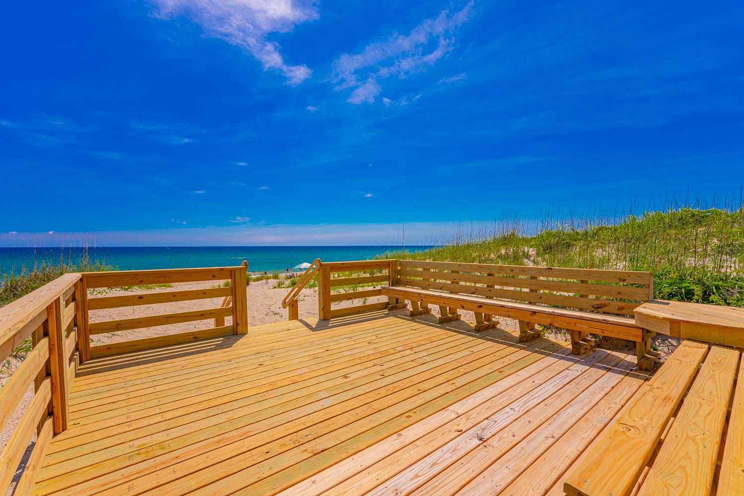 Sand Dollar has terrific ocean views, a wide beach, private oceanfront swimming pool, hot tub, and rec. room w/pool table. Spacious (4,000 square feet), beautifully decorated, well-equipped house makes it easy and comfortable to entertain your family. Designed to accommodate your vacation needs with ample deck and pool furniture for your group. This wonderful home provides all the ingredients your family will need for a memorable vacation. New, large deck by the ocean with built in benches, places to pop in an umbrella, overlook the beach in the shade, and drop beach gear after a day at the beach without taking back to the house.