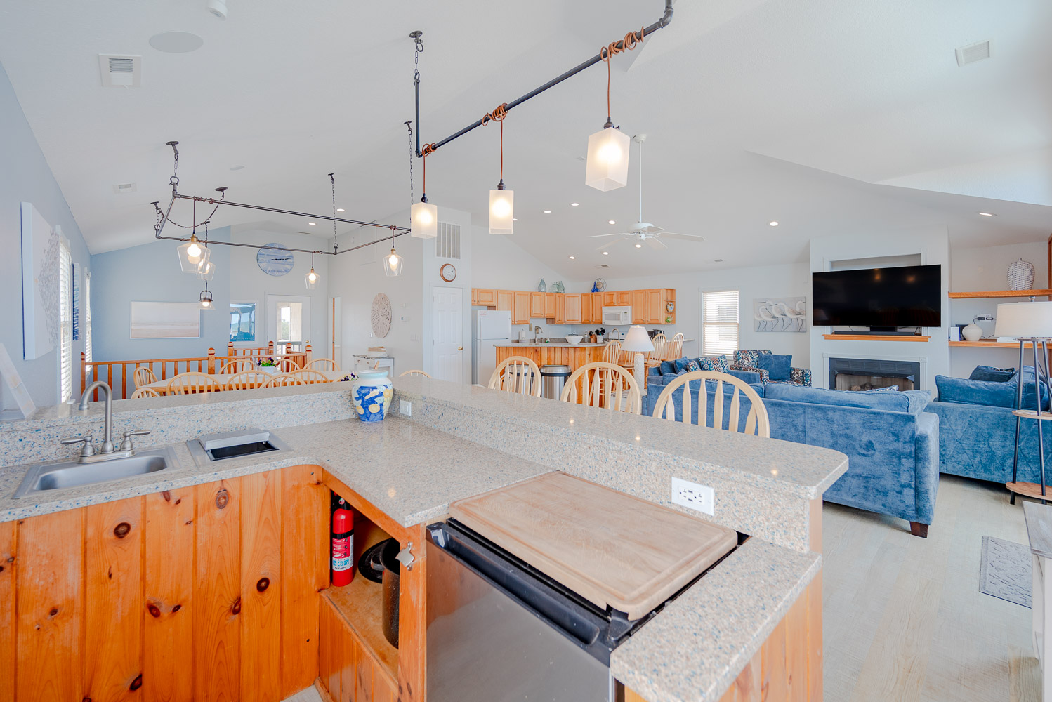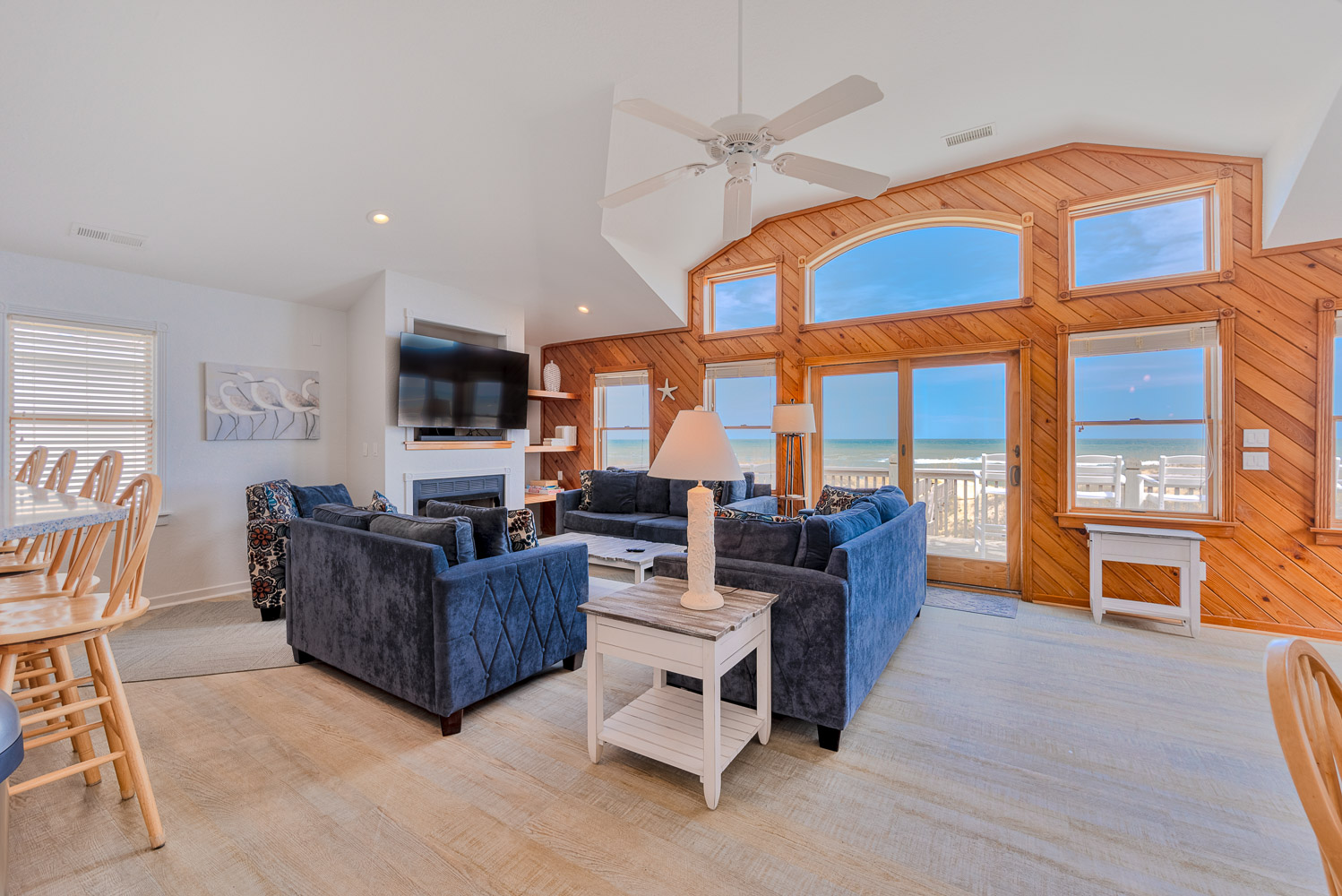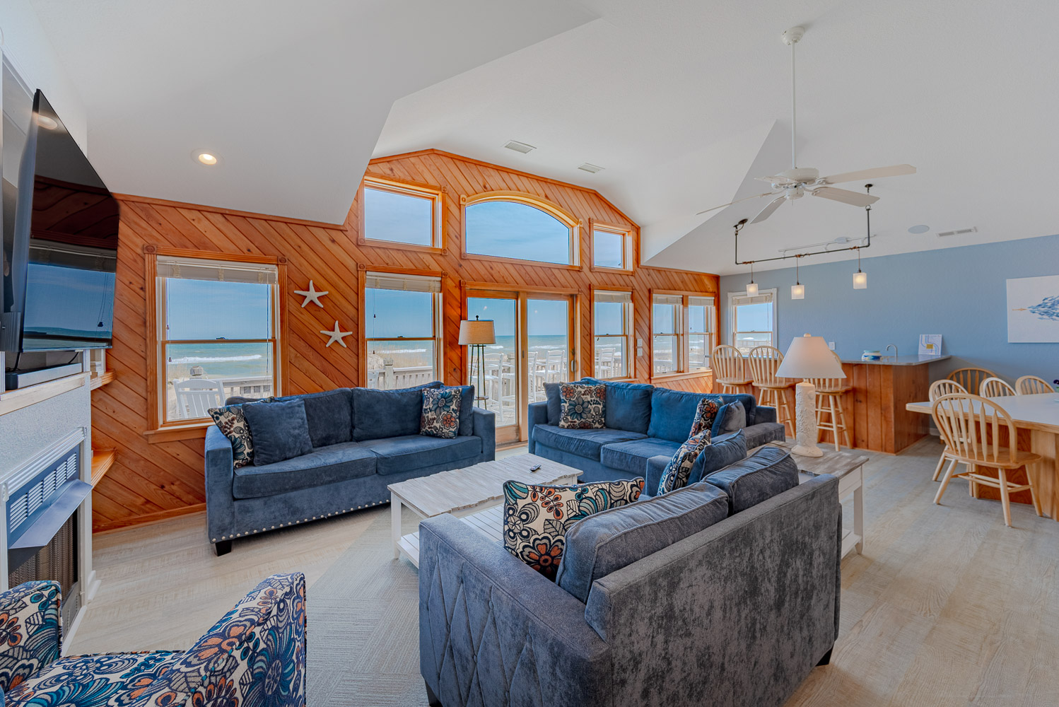 Top Level: Living/Dining/Kitchen Area, TV, Wet Bar, Gas Fireplace, Wonderful Ocean Views, Covered Sunset Porch w/New Furniture, Private Suite w/King, TV, Full Bath w/Jacuzzi Tub; Half Bath, and Sun Deck w/New Deck Furniture.