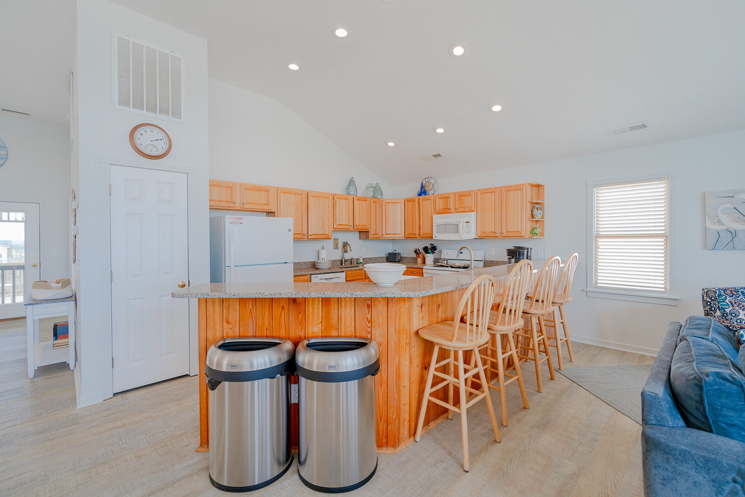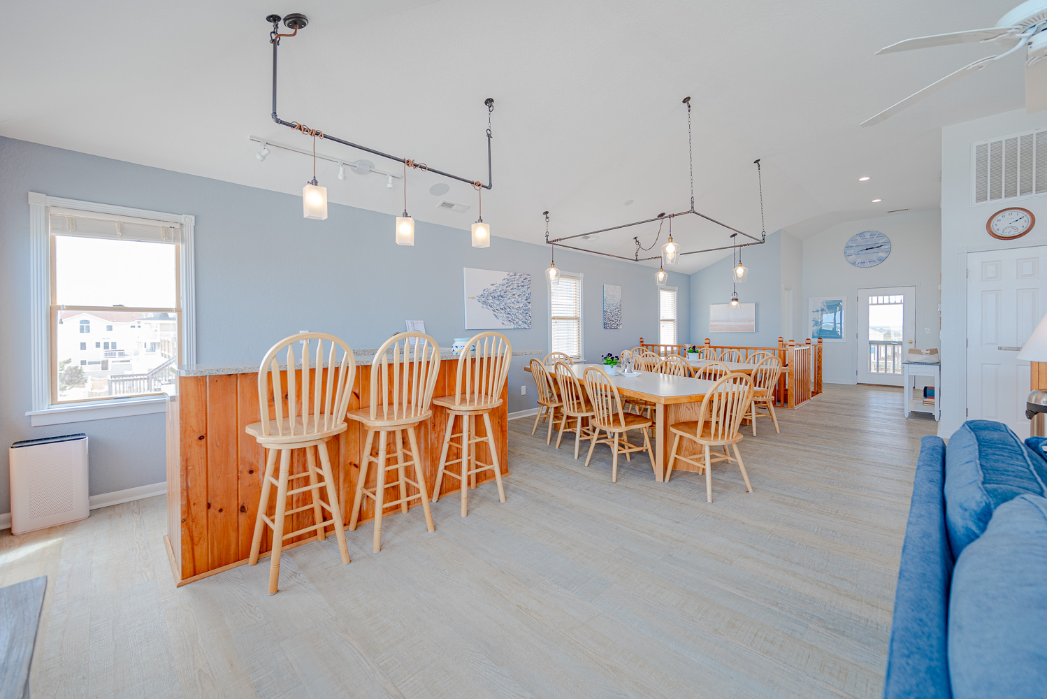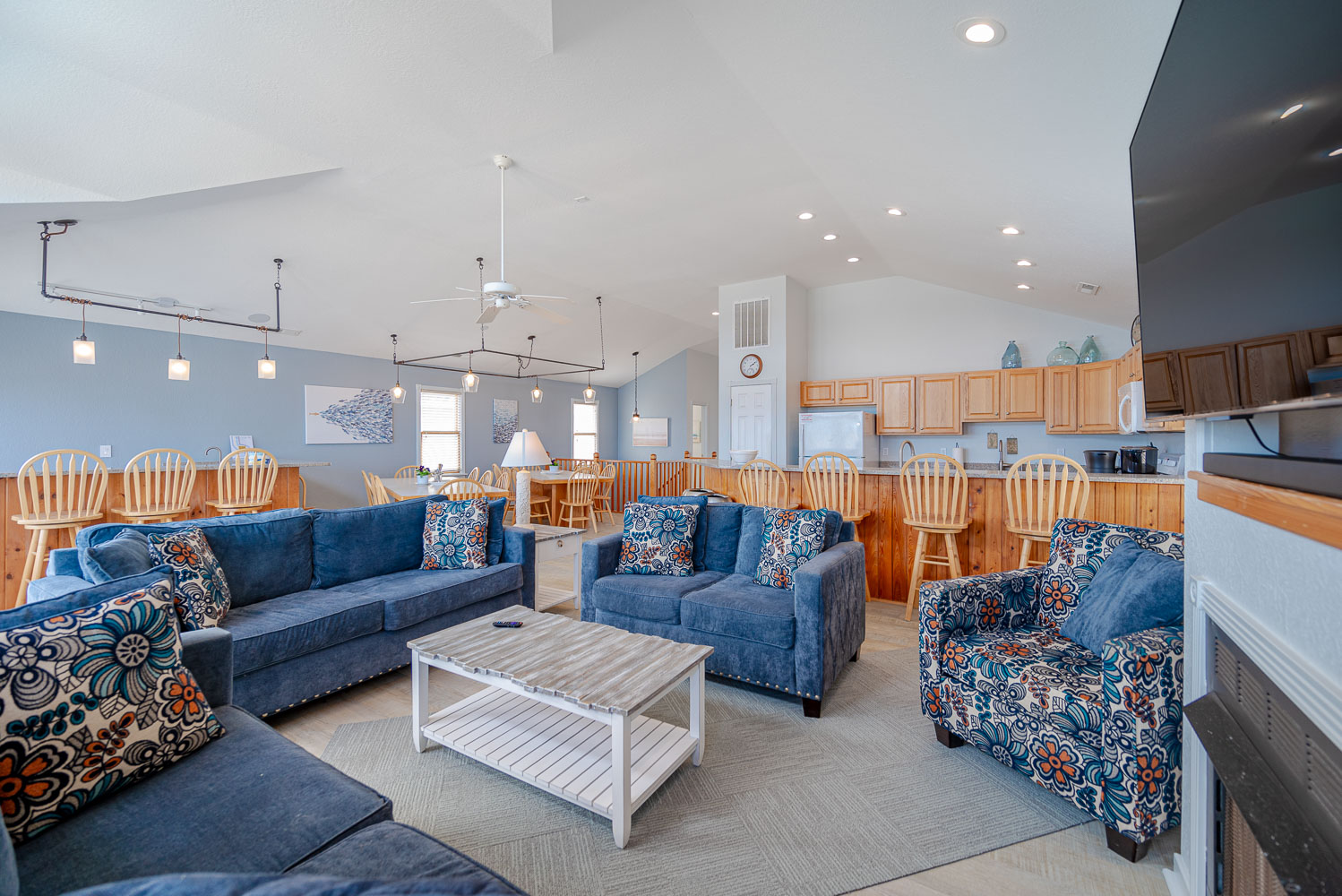 Top Level: Living/Dining/Kitchen Area, TV, Wet Bar, Gas Fireplace, Wonderful Ocean Views, Covered Sunset Porch w/New Furniture, Private Suite w/King, TV, Full Bath w/Jacuzzi Tub; Half Bath, and Sun Deck w/New Deck Furniture.