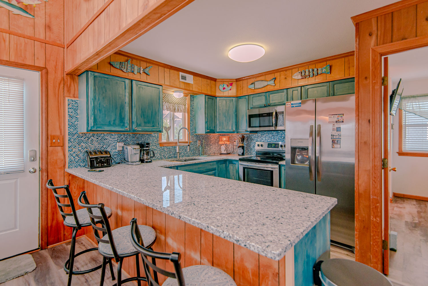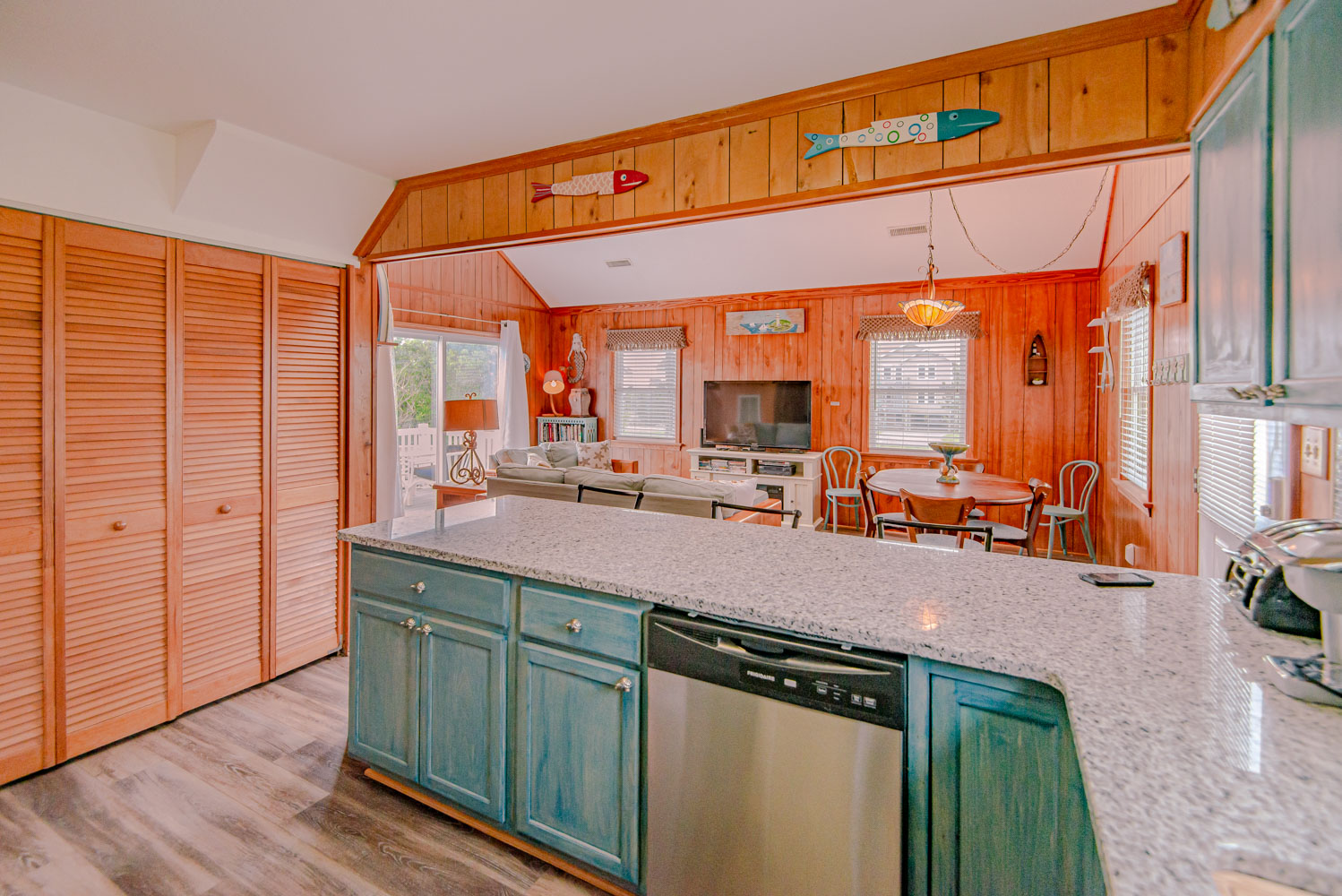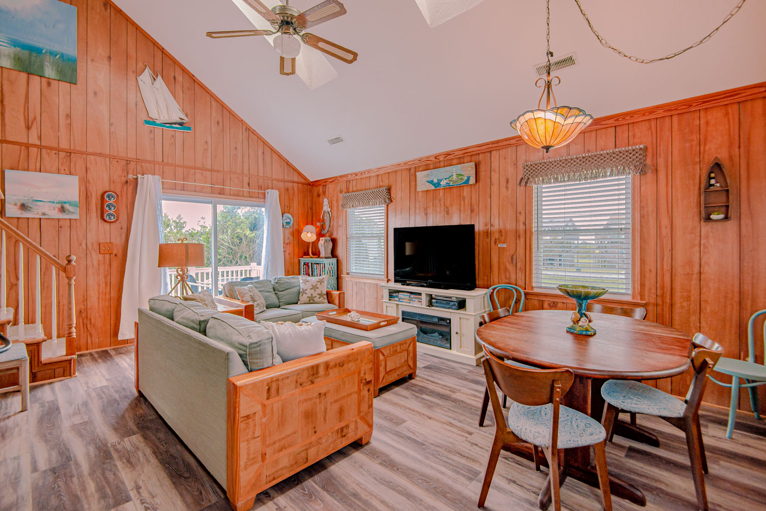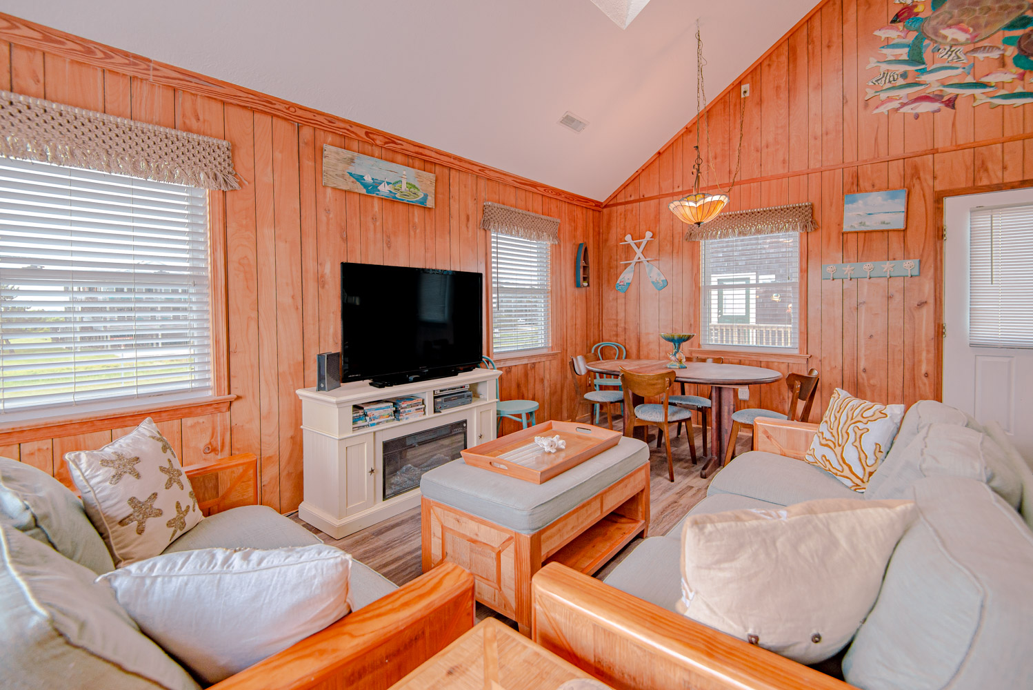 Mid Level: Living Area, TV, DVD, Electric Fireplace; Kitchen, Stainless Steel Appliances, Breakfast Bar w/Seating for Three (3); Dining Area w/Seating for Six (6); Bedroom w/Queen, Flat Screen TV; and Sun Deck w/Table and Chairs.