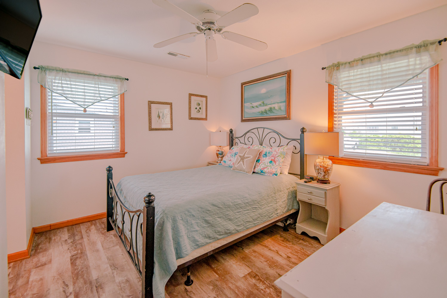Features include: C/AC-Heat, Washer/Dryer, Dishwasher, Microwave, 4 TVs, DVD, VCR, Wireless Internet, Ceiling Fans, Baby Equipment (Portable Crib/Play Pen, Baby Gate, Crib), Puzzles, Books, DVD and VHS Movies, and Deck Furniture. Two Mature Dogs Allowed w/Fees. No Smoking Allowed.
