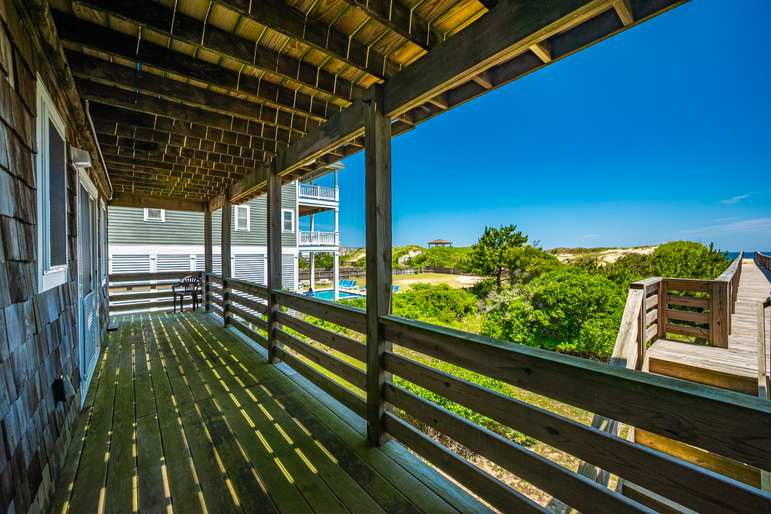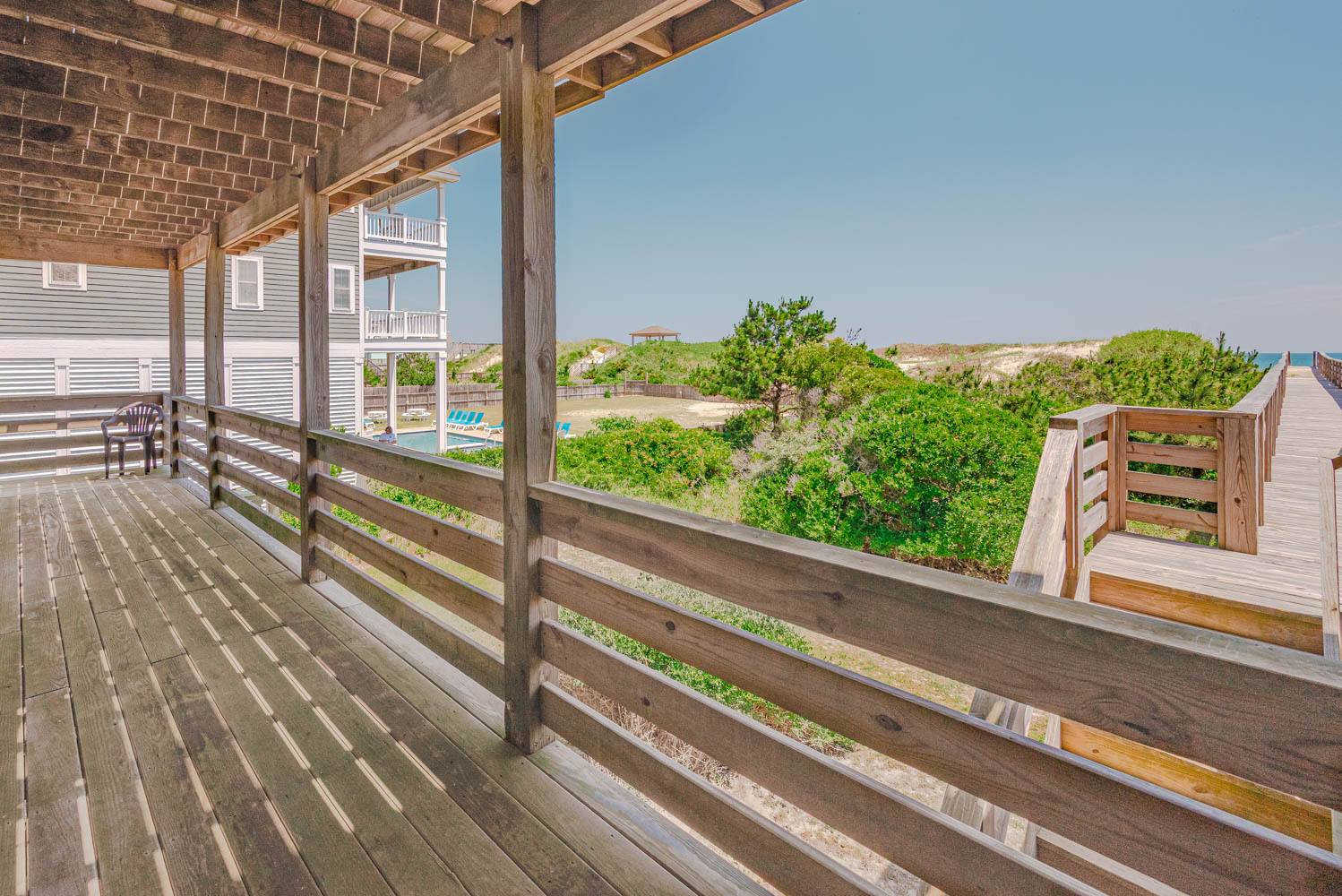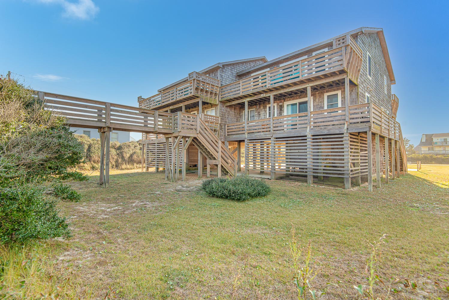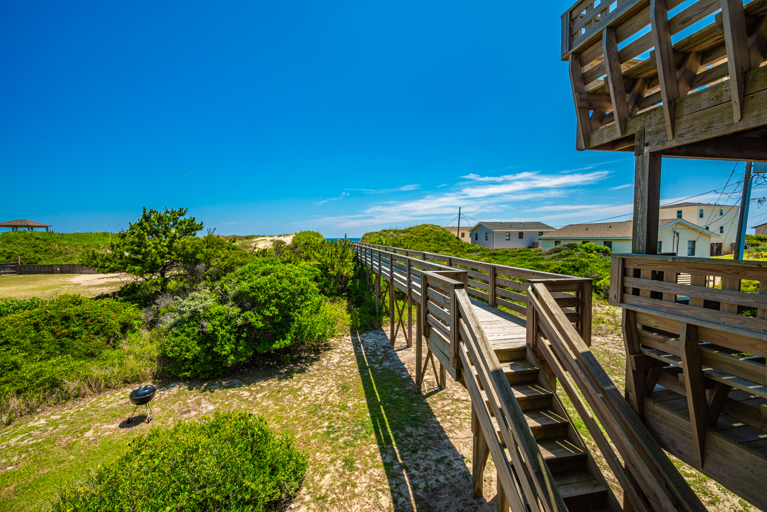 Located in South Nags Head, this home has a peaceful setting that is away from the hustle and bustle of the Northern Beaches yet is convenient to many outstanding restaurants, entertainment, and shopping areas located just a few miles away. The undeveloped beaches of the Cape Hatteras National Seashore are a few miles to the south as is Oregon Inlet and the Oregon Inlet Fishing Center. The Outer Banks Pier and Fish Heads Bar and Grill are located at Mile Post 18.5 and is a favorite for locals and visitors alike. There is a multi-use path that runs through all of Nags Head so don’t forget to bring your bikes.