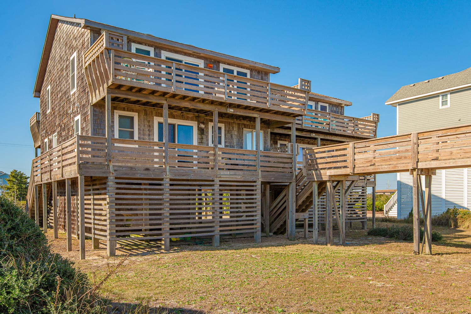 Outstanding ocean views and charming décor make this Classic Nags Head Oceanfront North Side Duplex a wonderful vacation choice for your family. This home is Pet Friendly, so your entire family is welcome.