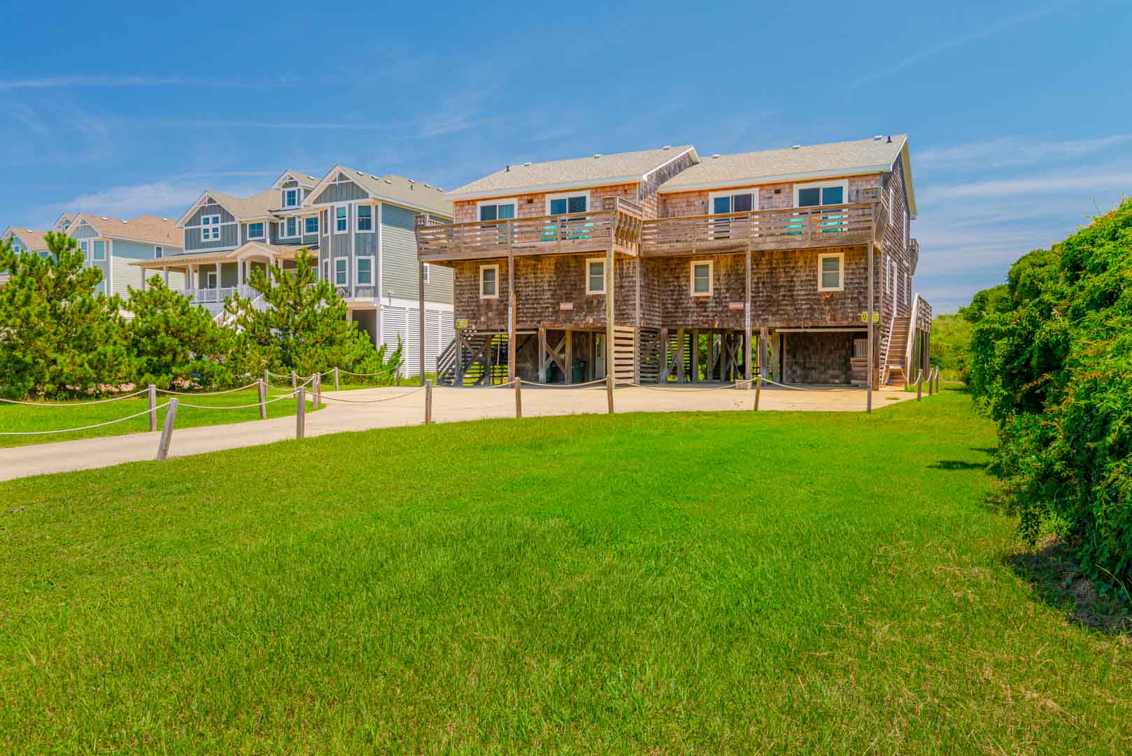 Located in Nags Head, this home has a peaceful setting that is away from the hustle and bustle of the Northern Beaches yet is convenient to many outstanding restaurants, entertainment, and shopping areas located just a few miles away. The undeveloped beaches of the Cape Hatteras National Seashore are a few miles to the south as is Oregon Inlet and the Oregon Inlet Fishing Center. The Outer Banks Pier and Fish Heads Bar and Grill are located at Mile Post 18.5 and is a favorite for locals and visitors alike. There is a multi-use path that runs through all of Nags Head so don’t forget to bring your bikes.