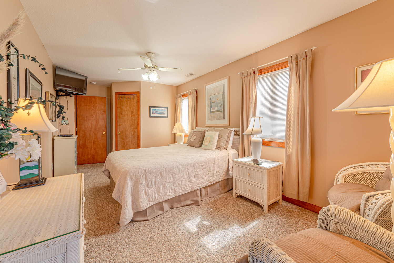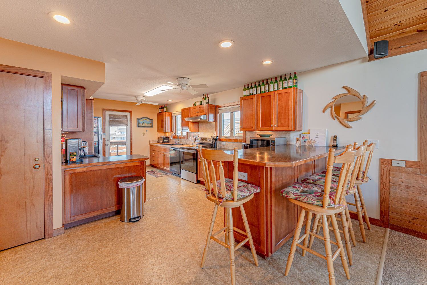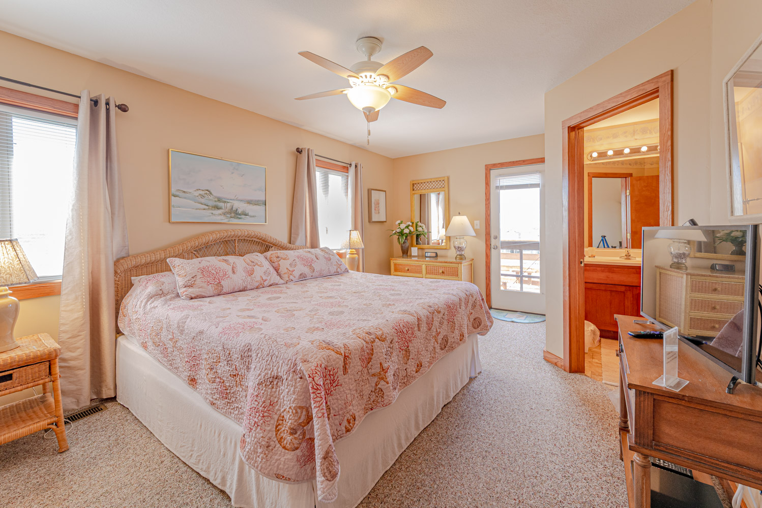 Features Include: C/AC & Heat, Washer/Dryer, 2 Dishwashers, Microwave, Phone w/Answering Machine & Free Long Distance Calling, 6 CATVs, Netflix, DVDs, Wireless Internet, Video Library, Ceiling Fans, Deck Furniture, Bikes, & Beach Toys. One Mature Dog Allowed w/Fee. This is a Non-Smoking Unit.