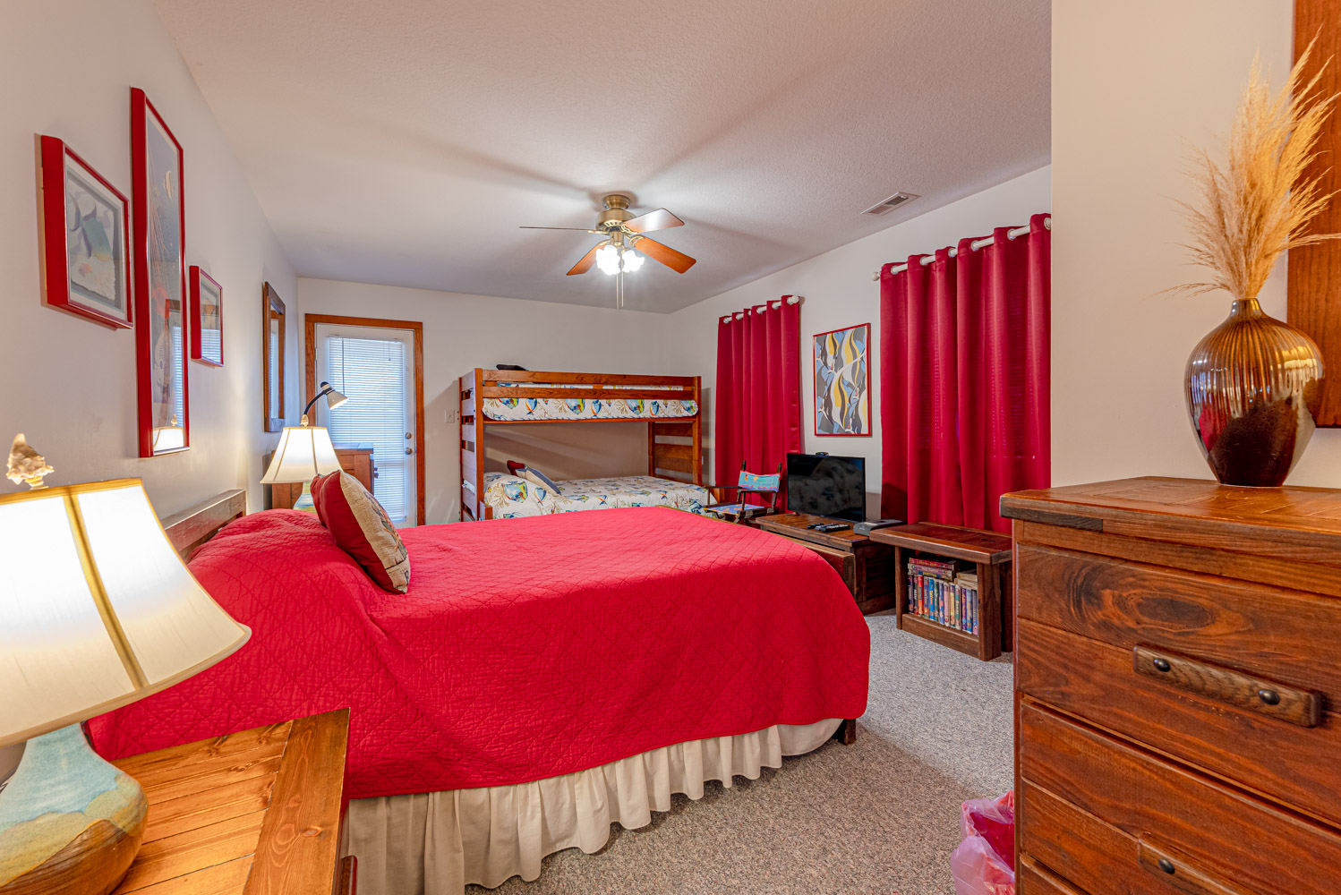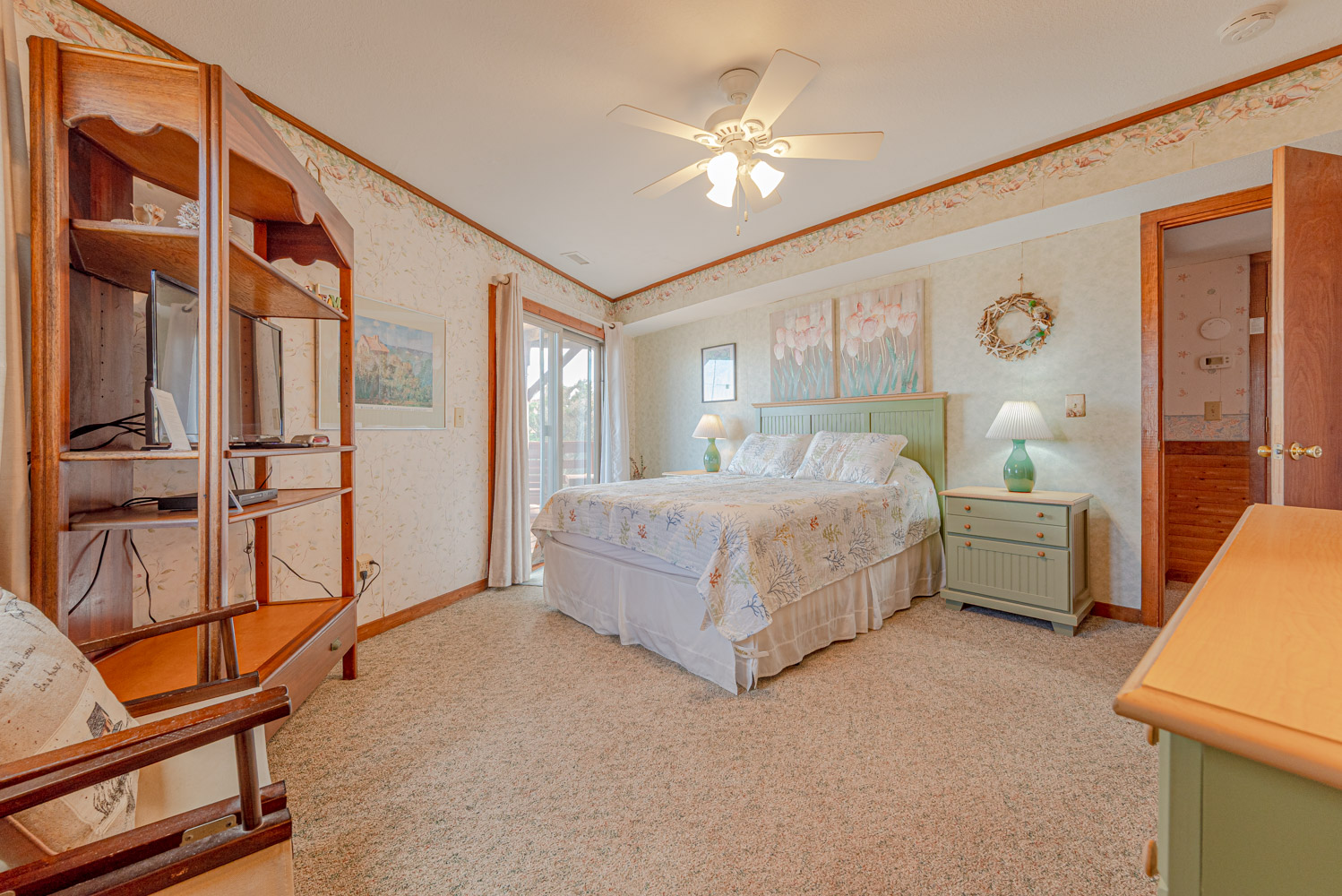 First Level: 4 Bedrooms (1 Private Suite w/Queen & Full Bath, 1 Private Suite w/Queen & Full Bath, 1 w/Queen, 1 w/Duo Bunk & Double), Full Bath, Laundry Area, West Facing Covered Deck w/Deck Furniture, Oceanfront Covered Deck w/Furniture & Access to Walkway to Beach & Dune Top Deck.