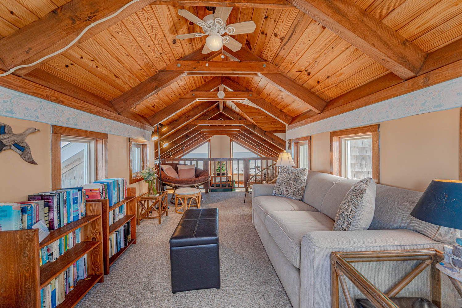 Top Level: Loft space offering a cozy reading space w/Double Sleep Sofa & Sound Facing Sun Deck w/Furniture & Stunning Sunset Views.