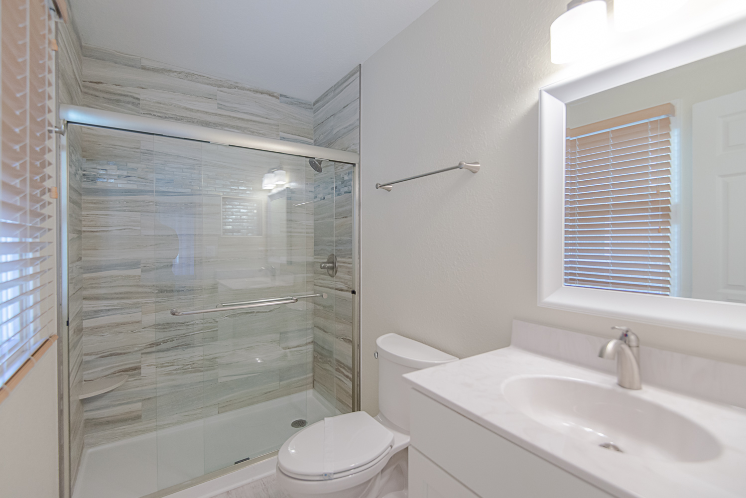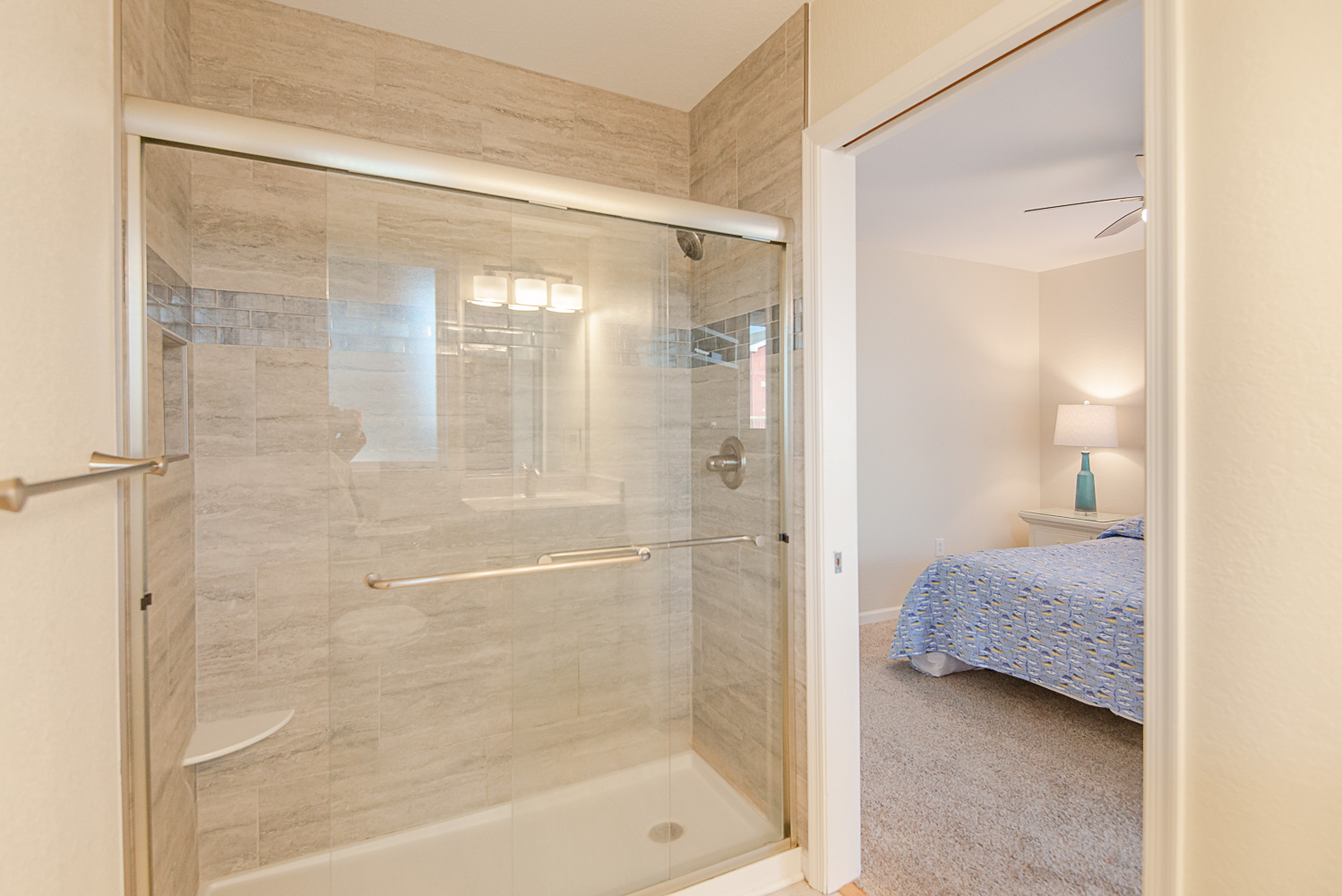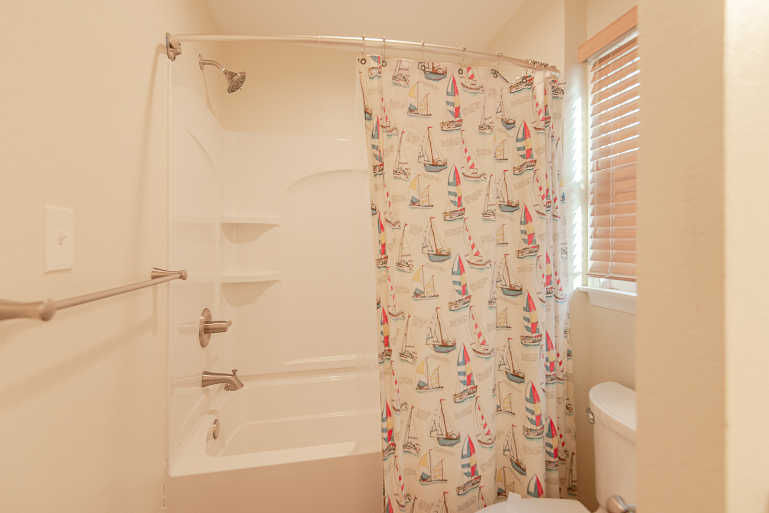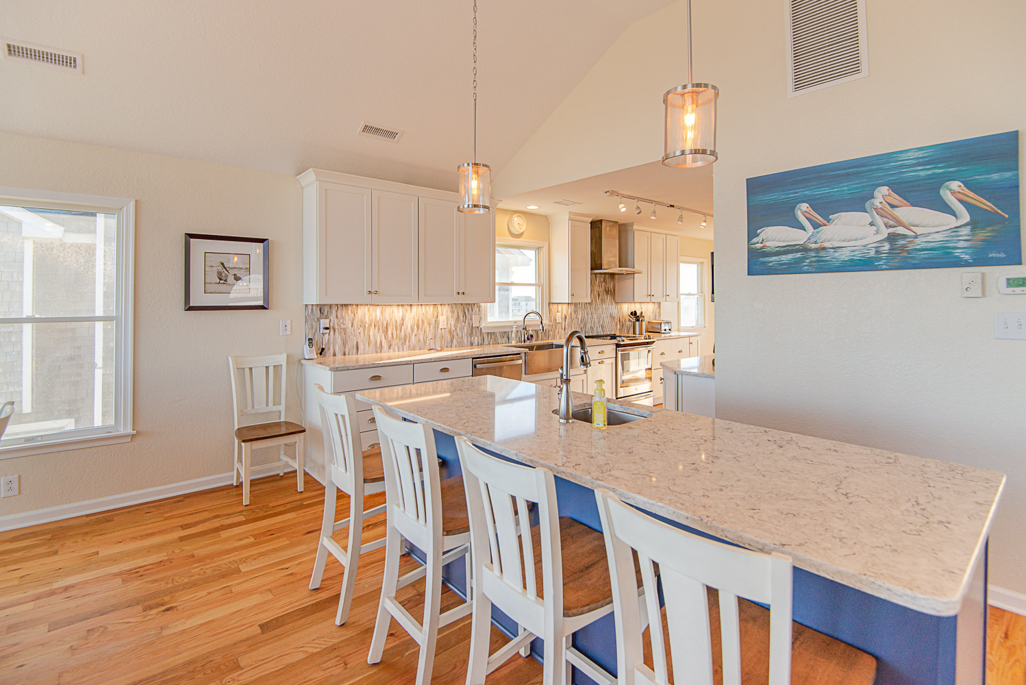 Top Level: Living/Dining/Kitchen Area, 75 Inch Flat Screen Smart HDTV, Half Bath, Private Suite w/King, Smart TV, Full Bath, Dual Sinks, Walk-in Shower (Approx. 6 Inch Threshold), Private Deck; Gas Fireplace, Large Oceanfront Sun Deck, and Screened Porch w/Picnic Table.