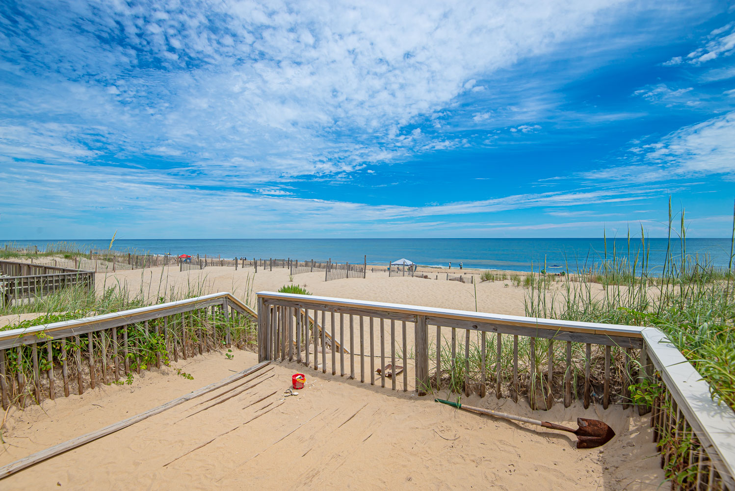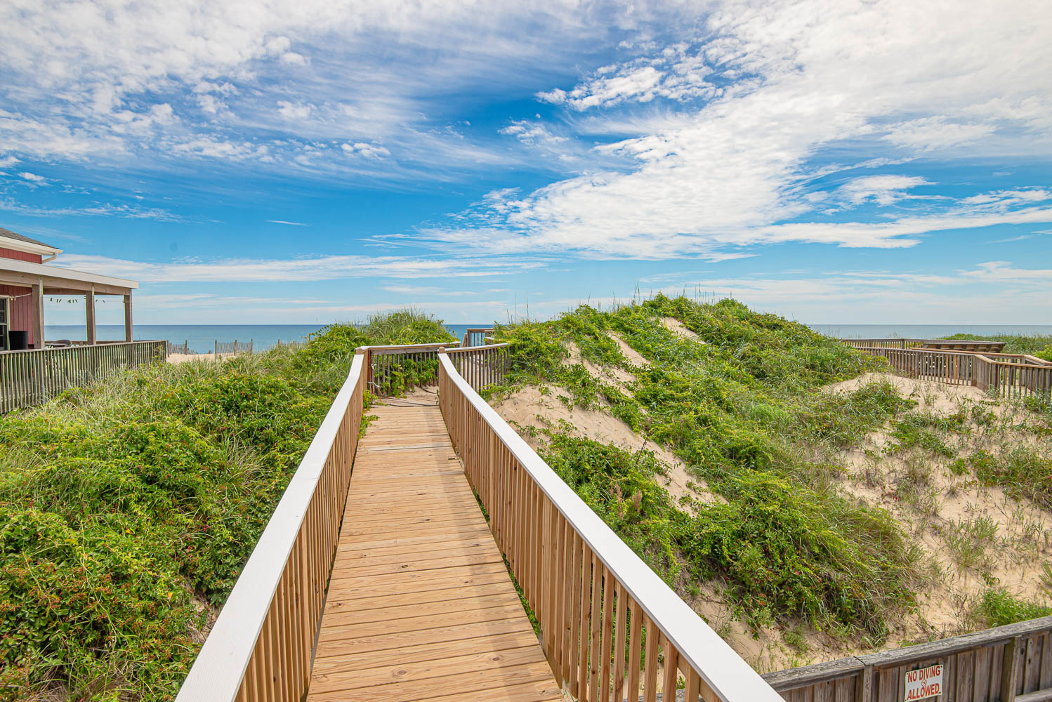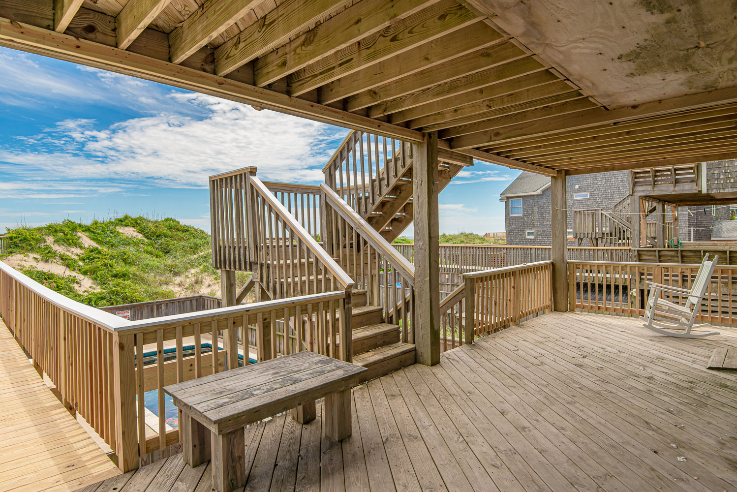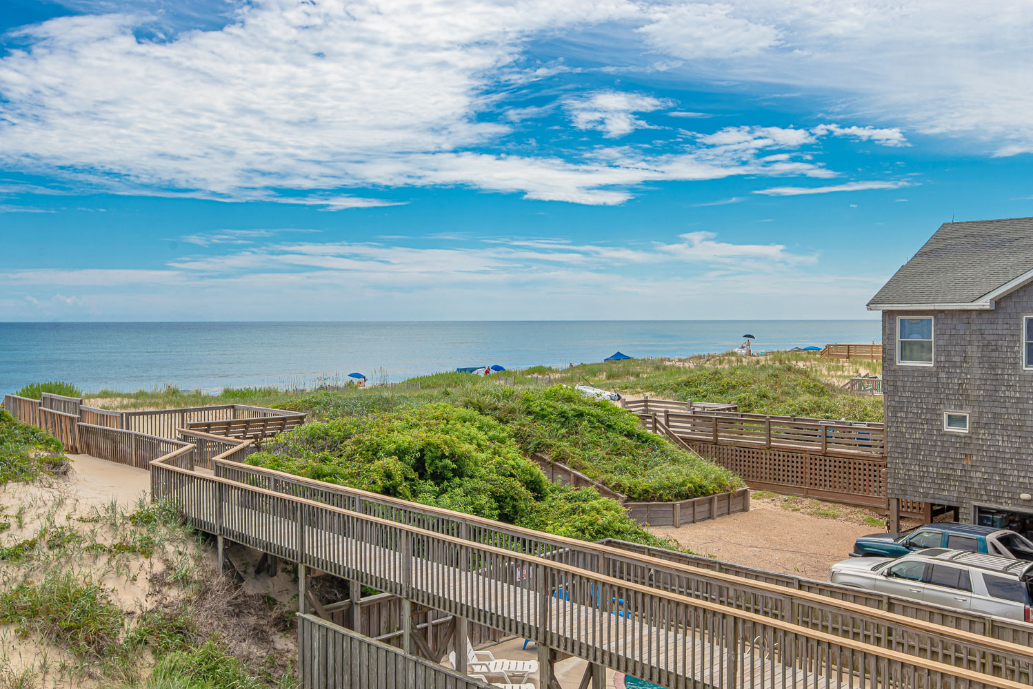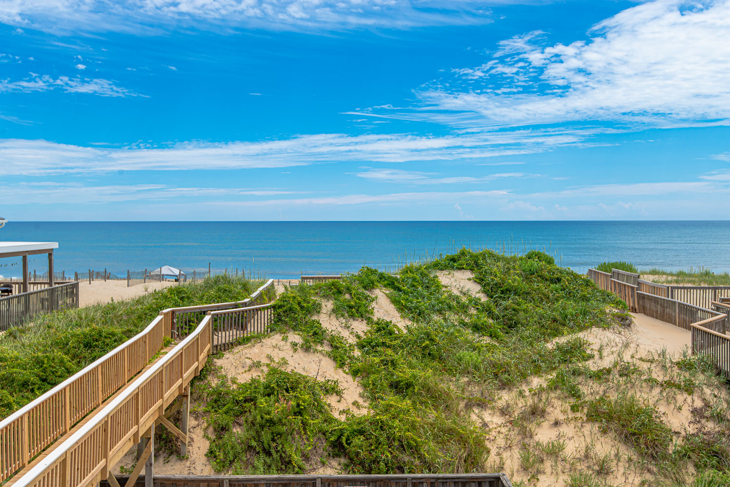 Mid Level: 4 Bedrooms (2 Private Suites w/King, Smart TVs, Full Baths; 2 w/Kings, Smart TVs), Shared Bath, Laundry Area, Covered Deck, and Access to Oceanfront Dune Top Deck that is Wheelchair Accessible.