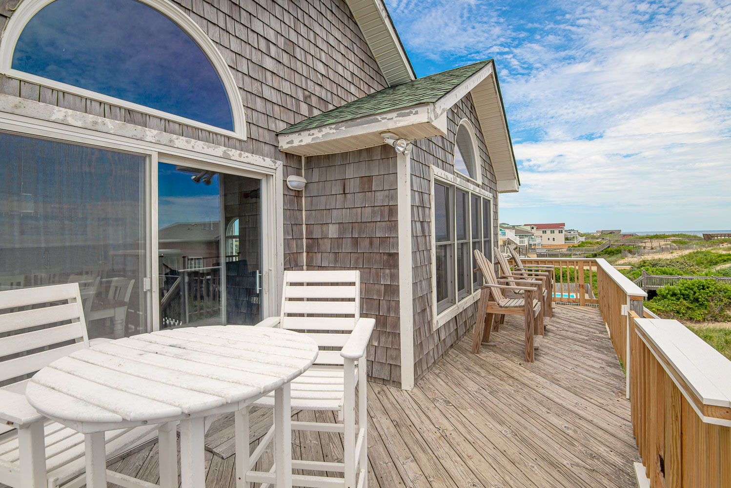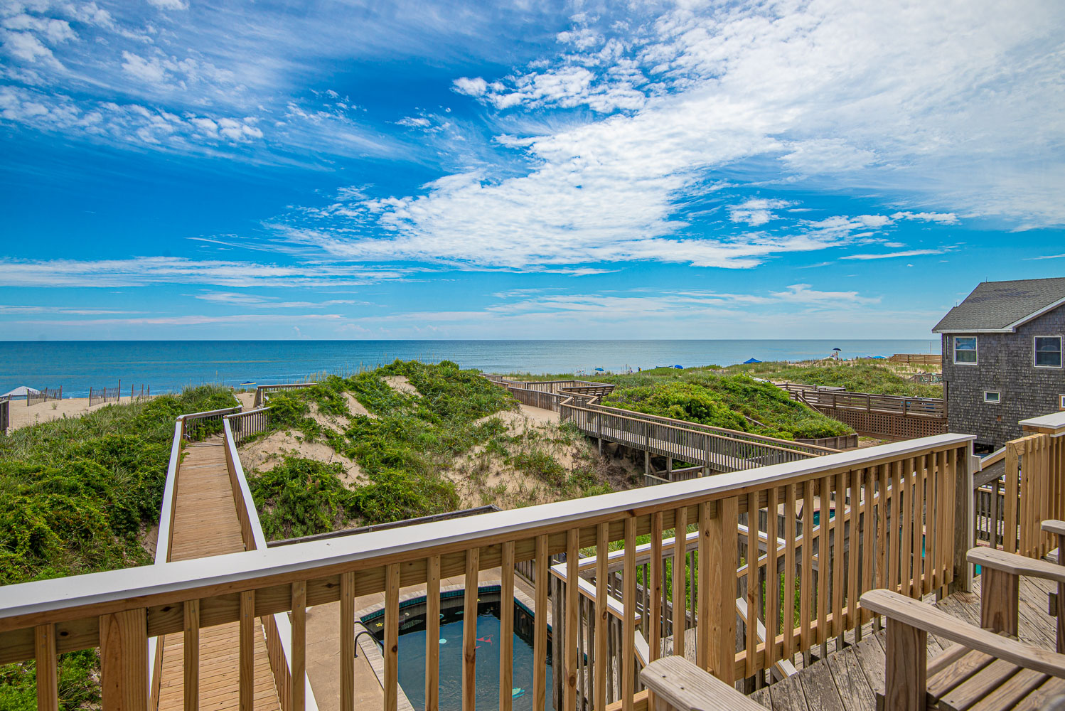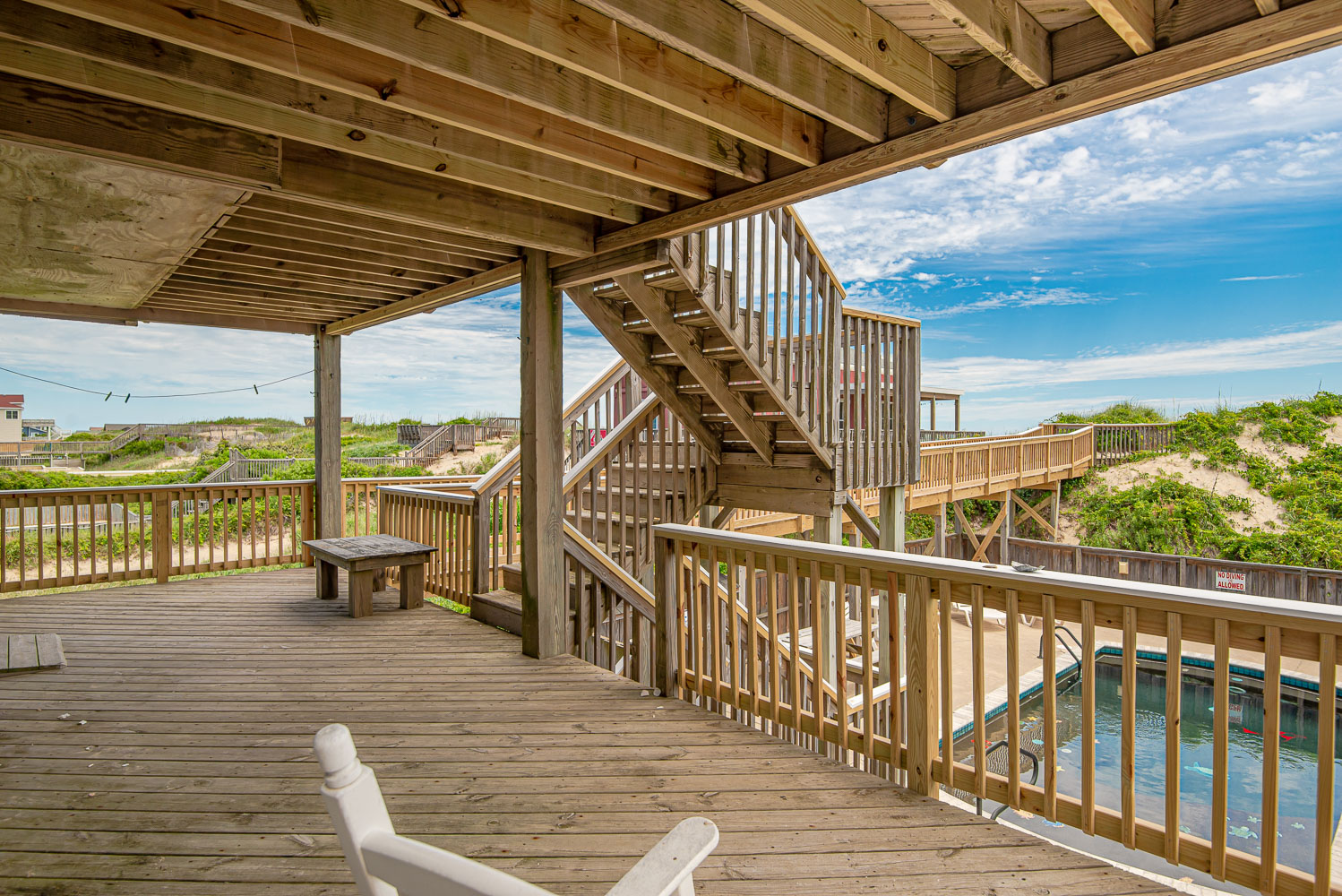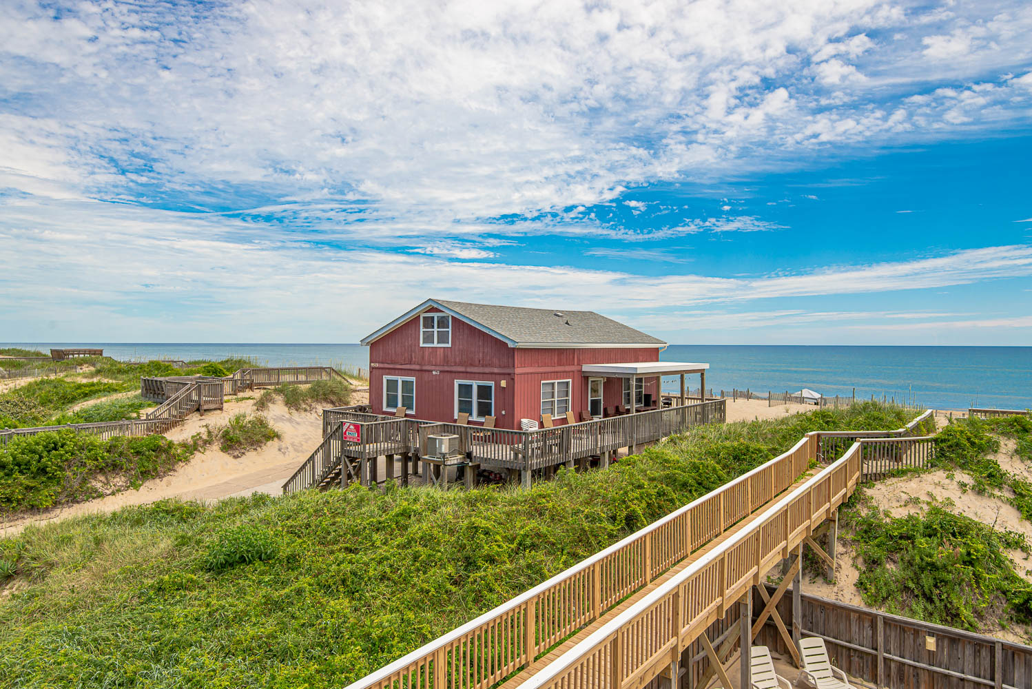 Mid Level: 4 Bedrooms (2 Private Suites w/King, Smart TVs, Full Baths; 2 w/Kings, Smart TVs), Shared Bath, Laundry Area, Covered Deck, and Access to Oceanfront Dune Top Deck that is Wheelchair Accessible.
