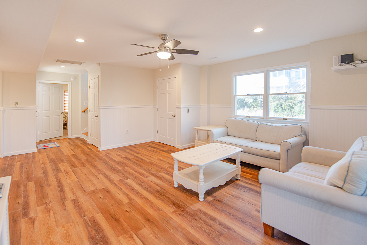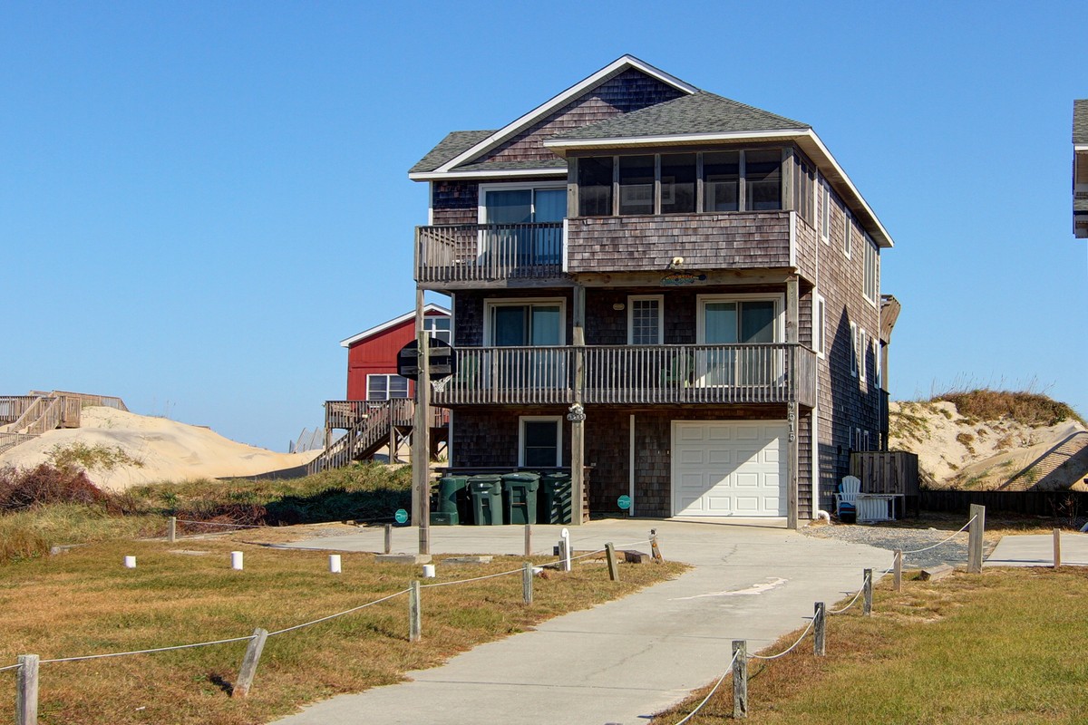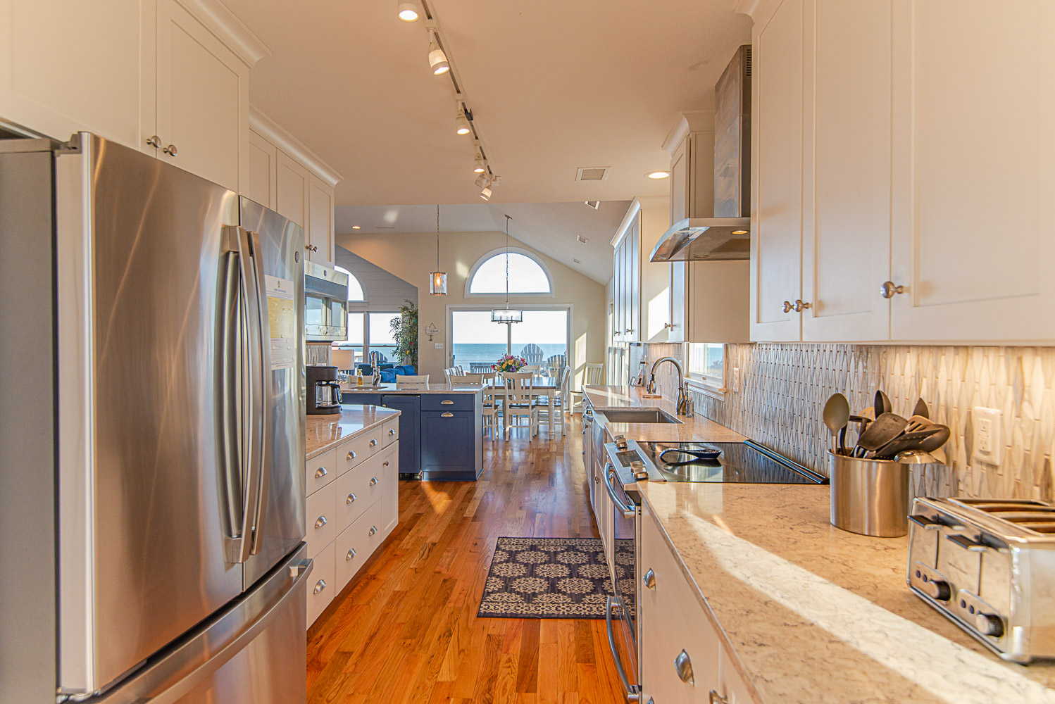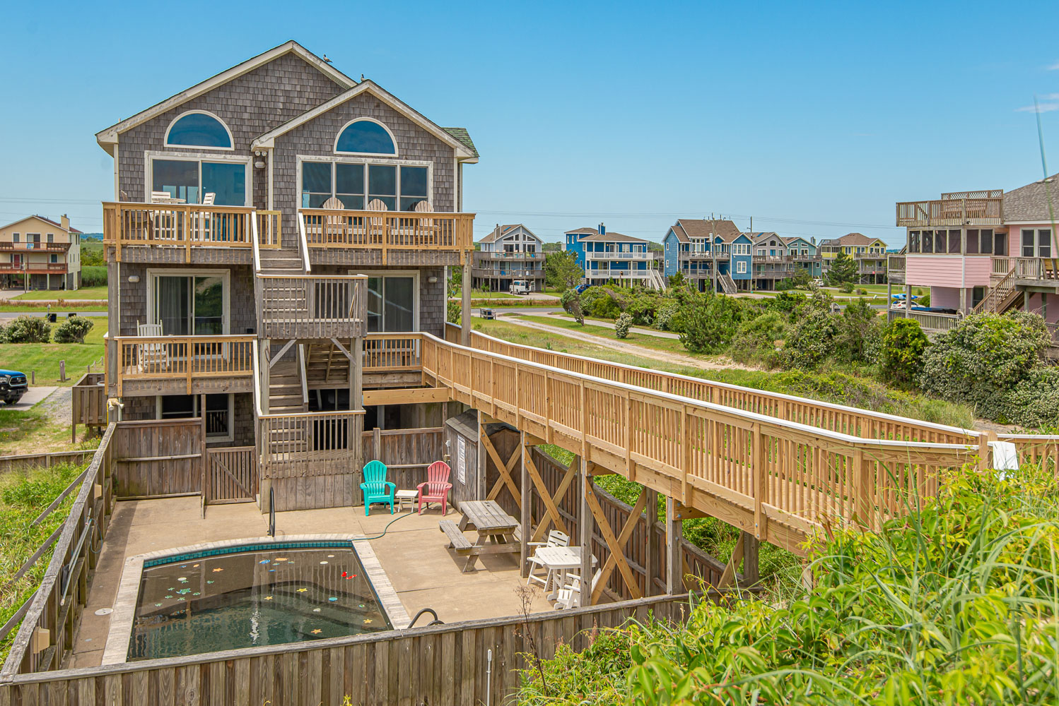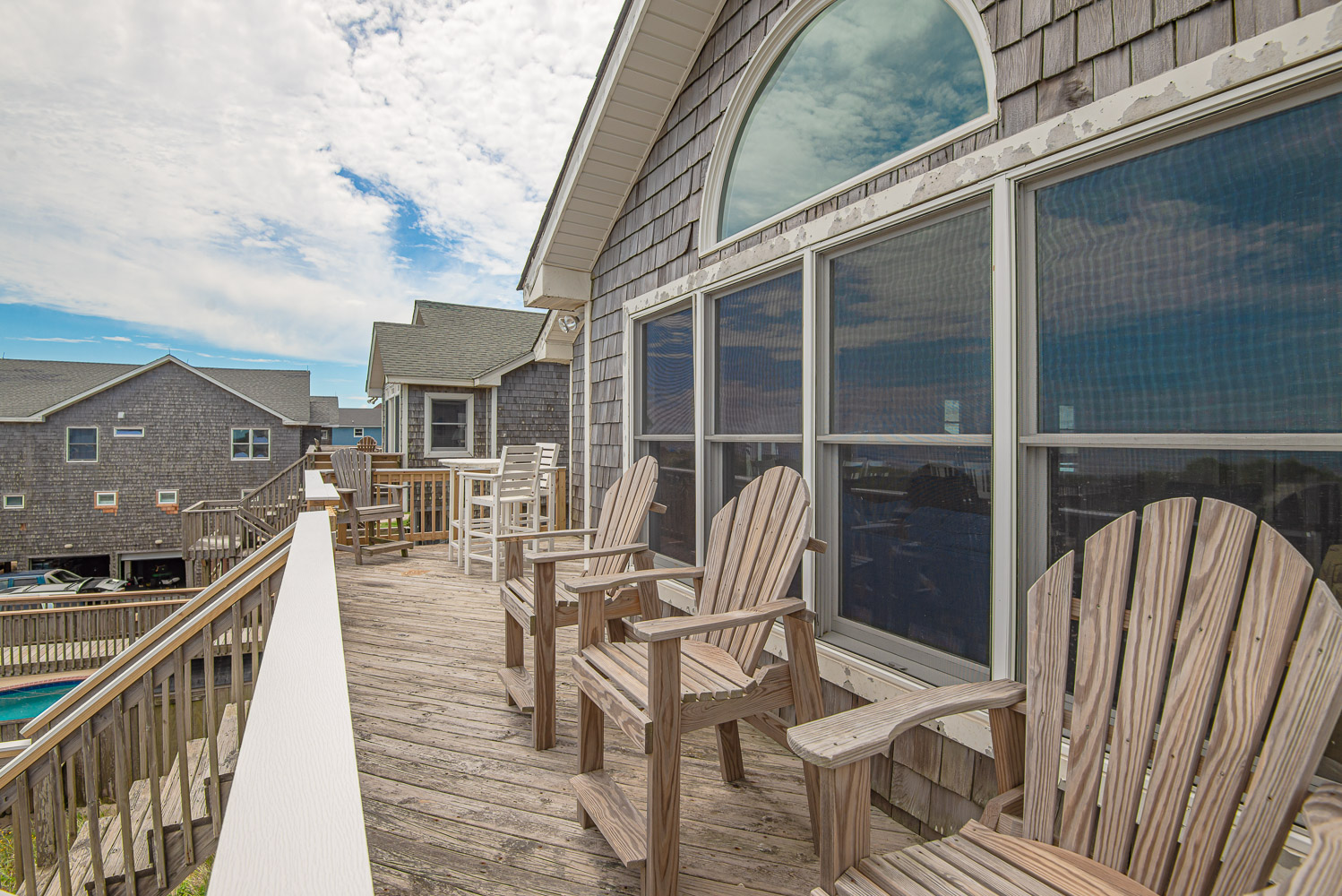 Mid Level: 4 Bedrooms (2 Private Suites w/King, Smart TVs, Full Baths; 2 w/Kings, Smart TVs), Shared Bath, Laundry Area, Covered Deck, and Access to Oceanfront Dune Top Deck that is Wheelchair Accessible.