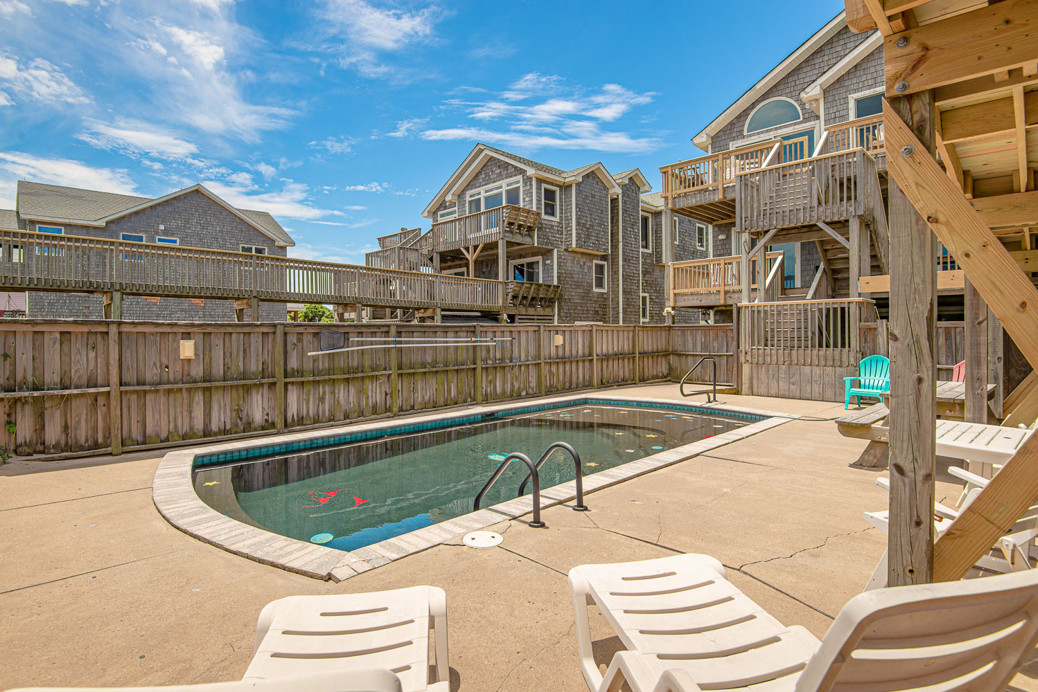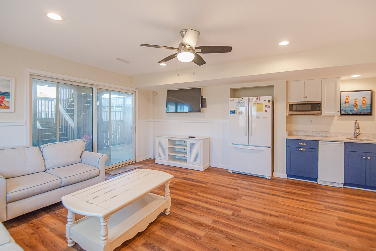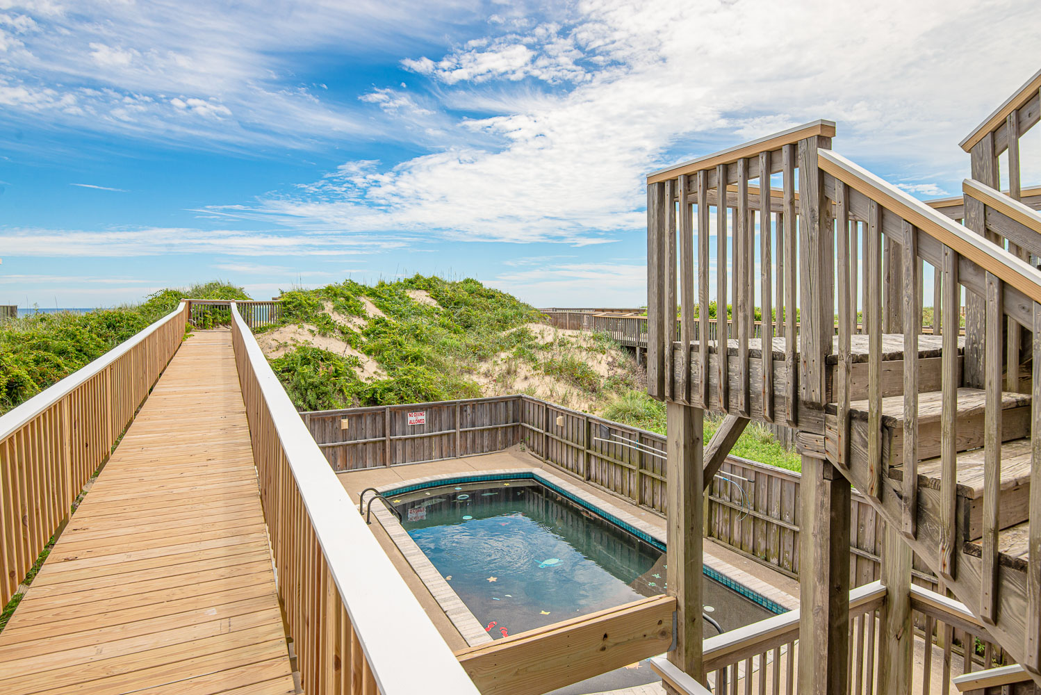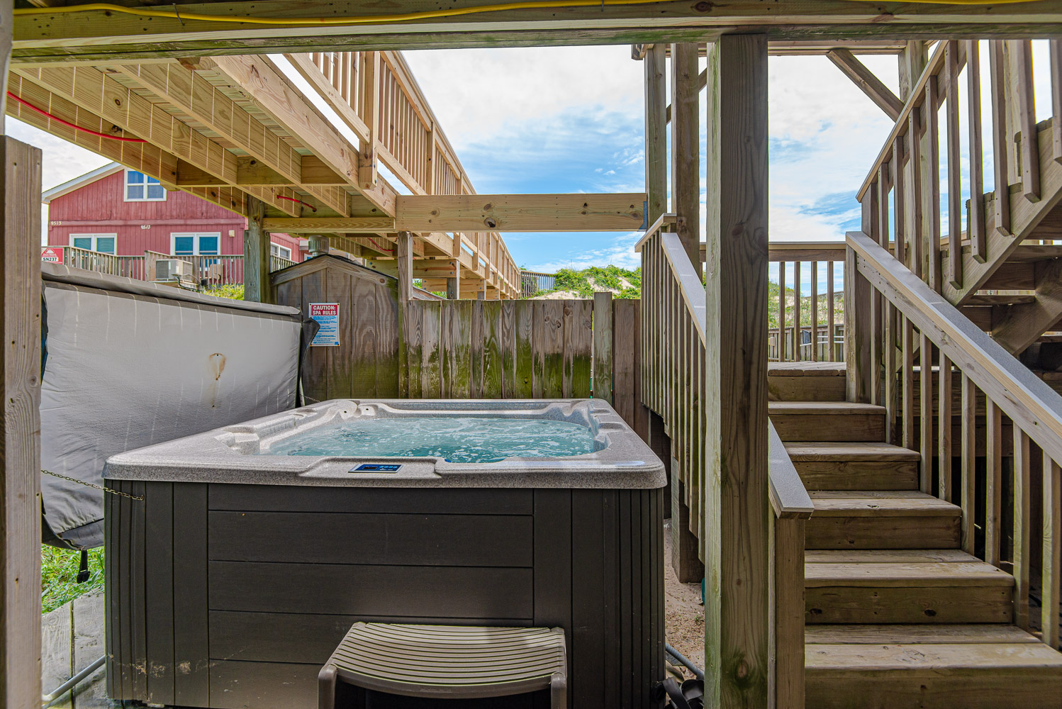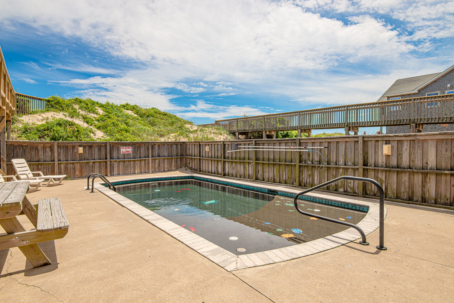 Ground Level: Parking for 8 Cars, Garage, Covered Entry, Den, TV, Wet Bar, Full Size Refrigerator, Stand Alone Ice Maker, 2 Bedrooms (1 w/2 Singles, TV, 1 w/2 Duo Bunks), Full Bath, Access to Covered Area with Hot Tub, a Heated Saltwater Swimming Pool - Open Seasonally - Can be Heated for $300.00 Per Week, Plus Tax. Bear in Mind That Pool Temperature is Subject to Outside Temperatures and Conditions), Enclosed Outside Shower, Picnic Table, Gas Grill, and Basketball Goal.