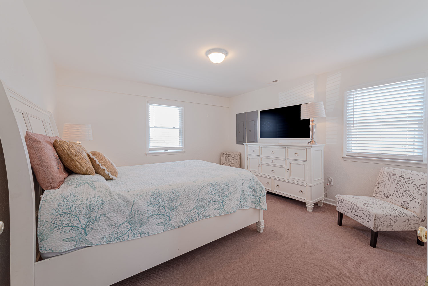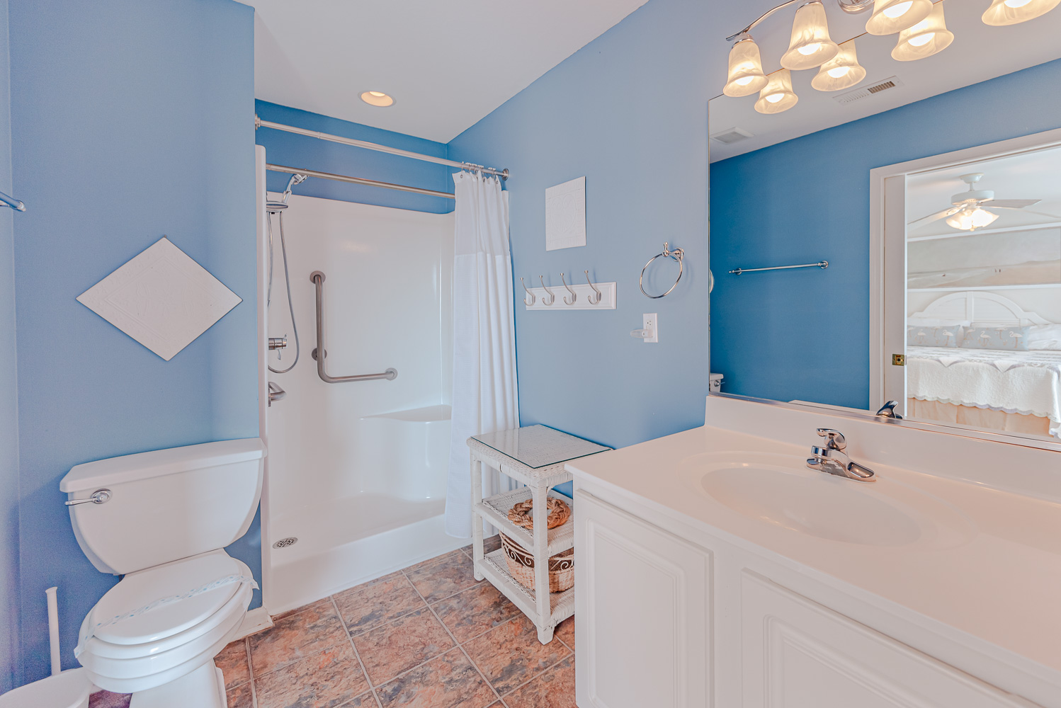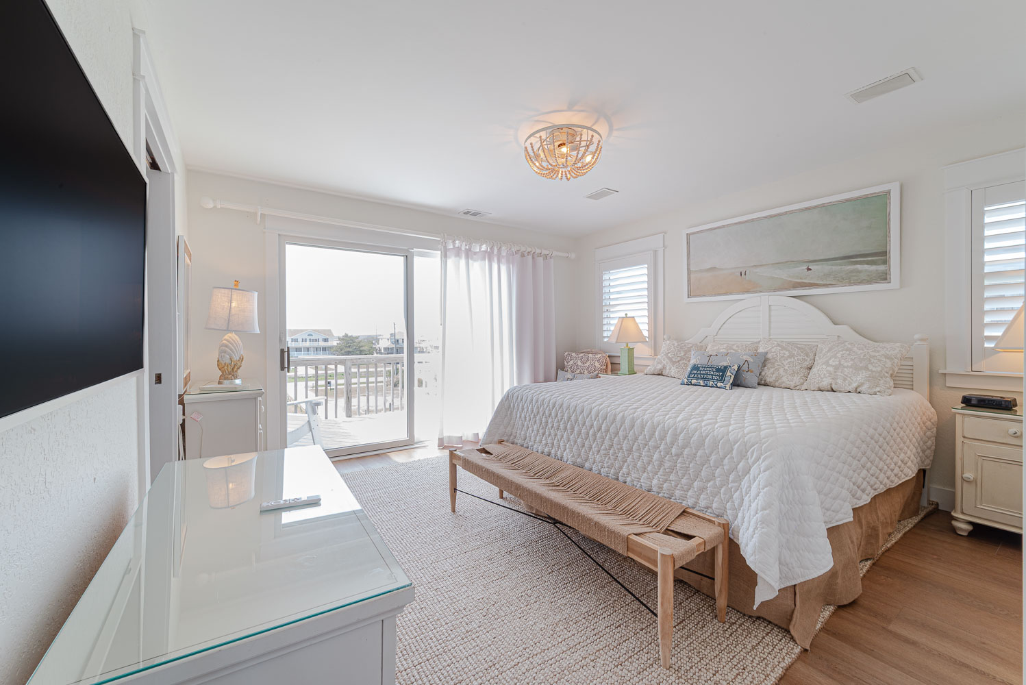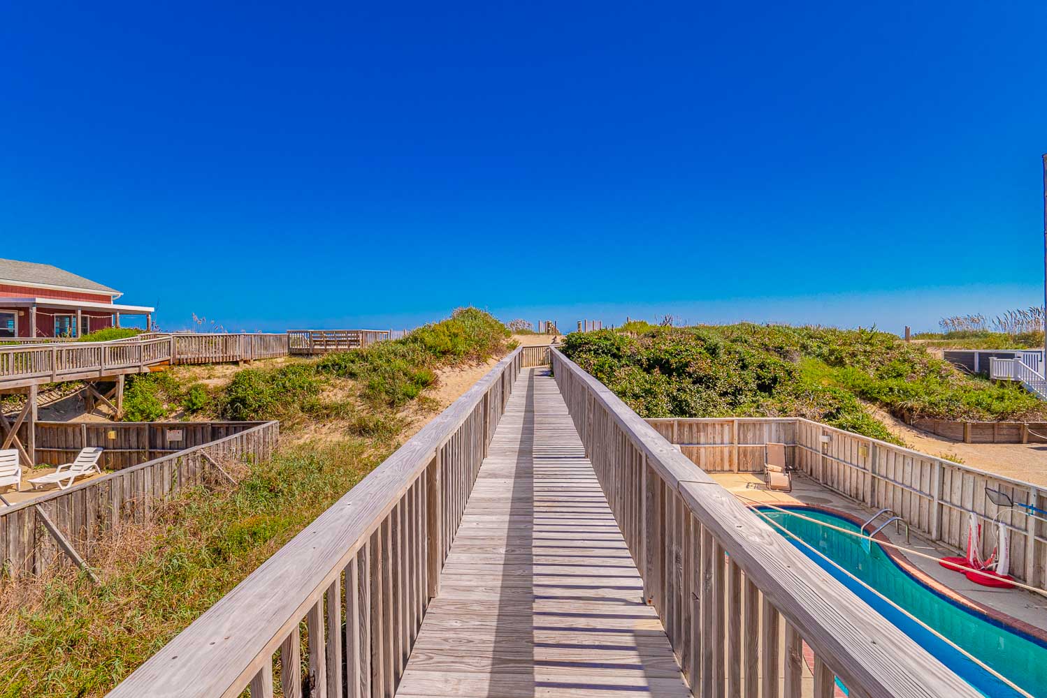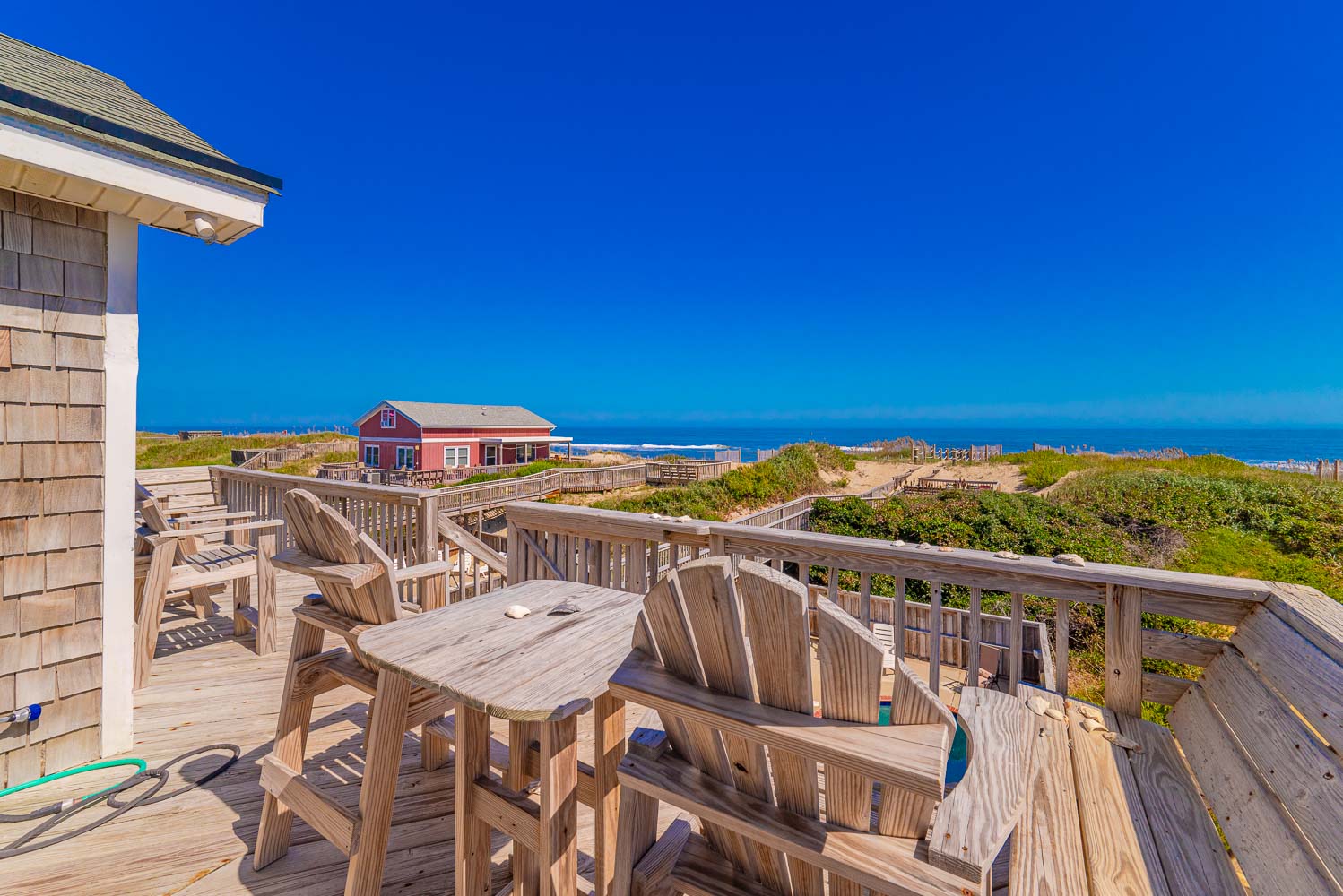 Mid Level: 4 Bedrooms (Private Suite w/King, Full Bath w/Walk-In Shower; Private Suite w/Queen, Full Bath w/Walk-In Shower; 1 w/King; 1 w/2 Singles and a Shared Full Bath), Covered Deck, Porch Swing, Sun Deck w/Hot Tub, and Handicap Accessible Elevated Beach Walkway w/LED Lighting.