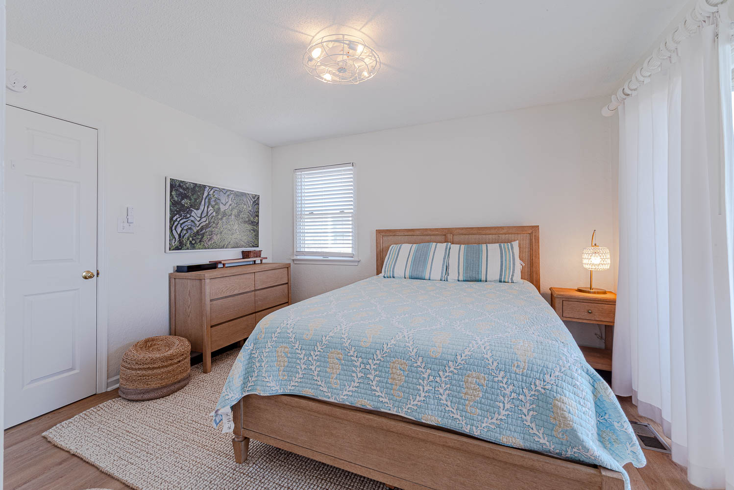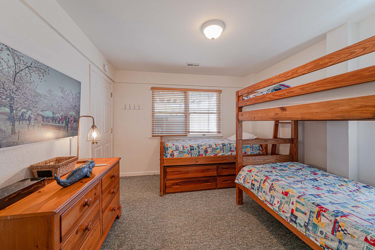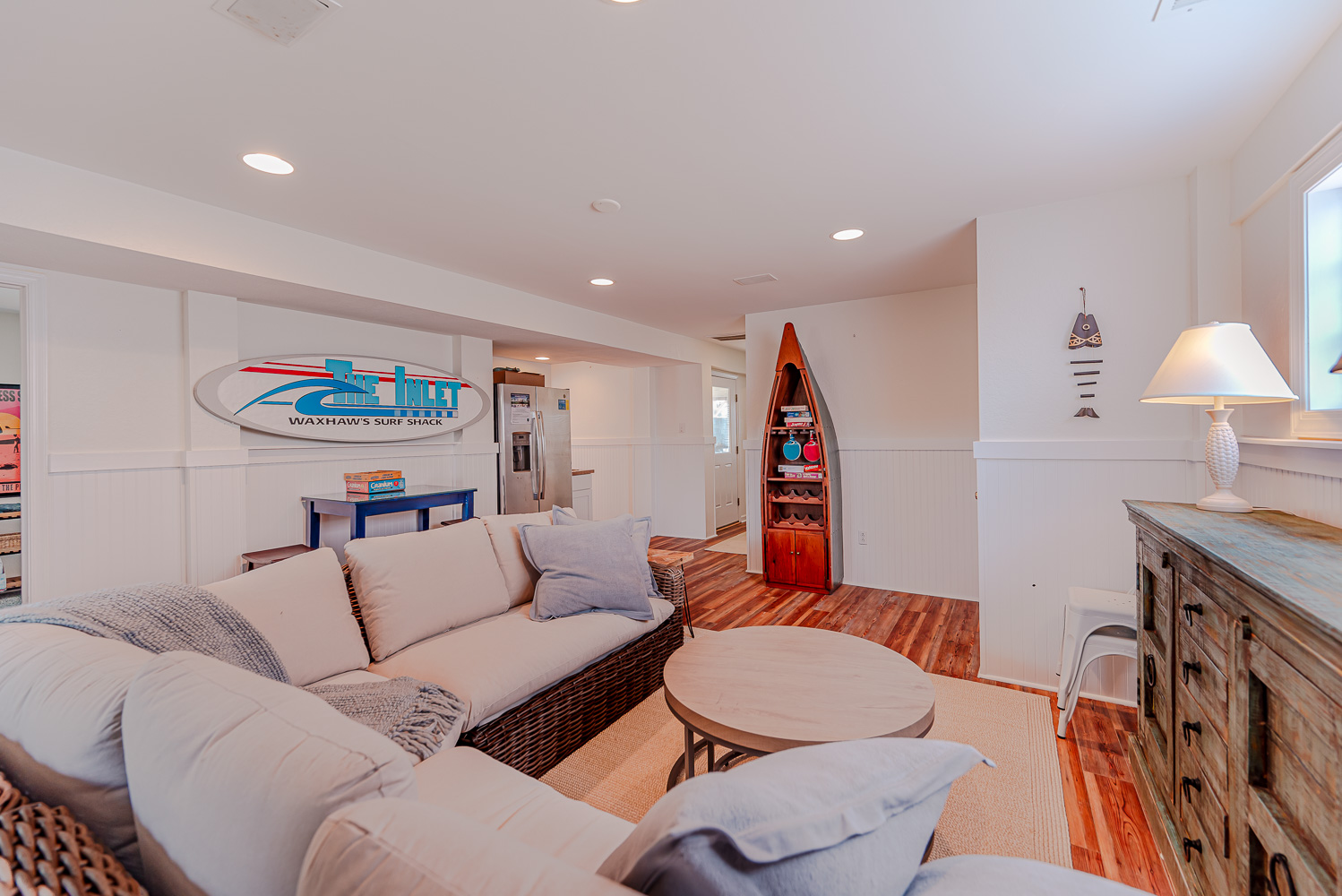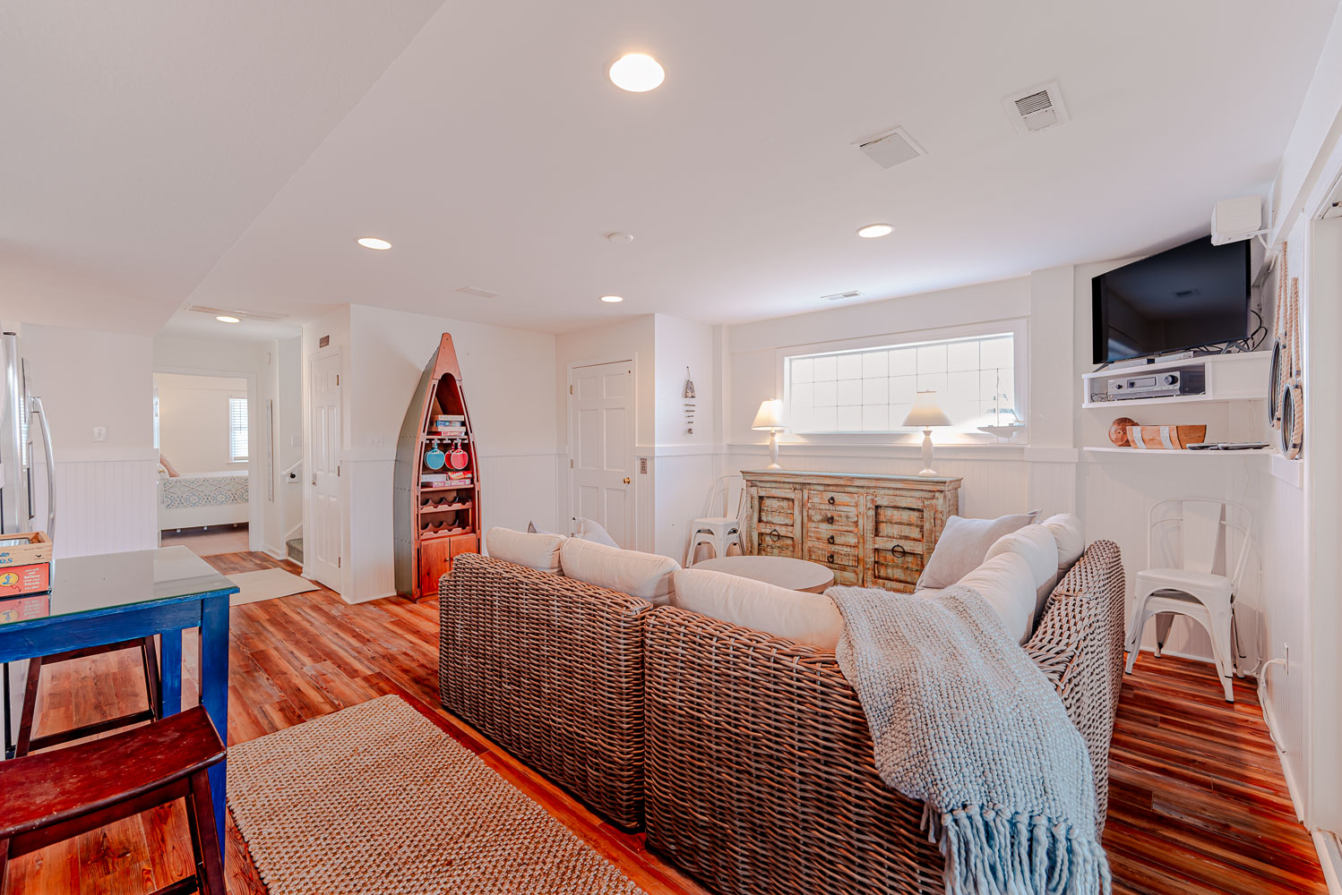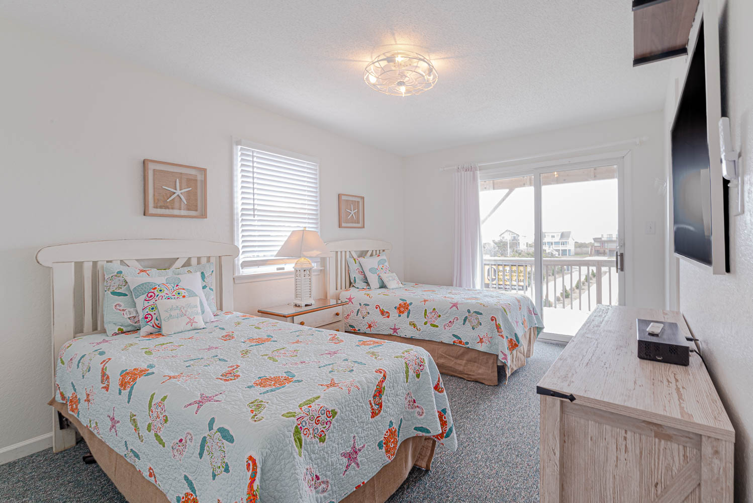 Mid Level: 4 Bedrooms (Private Suite w/King, Full Bath w/Walk-In Shower; Private Suite w/Queen, Full Bath w/Walk-In Shower; 1 w/King; 1 w/2 Singles and a Shared Full Bath), Covered Deck, Porch Swing, Sun Deck w/Hot Tub, and Handicap Accessible Elevated Beach Walkway w/LED Lighting.