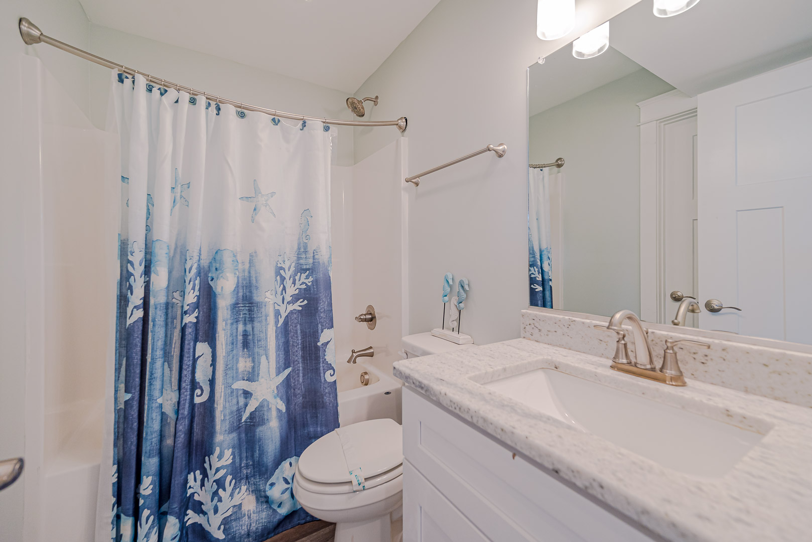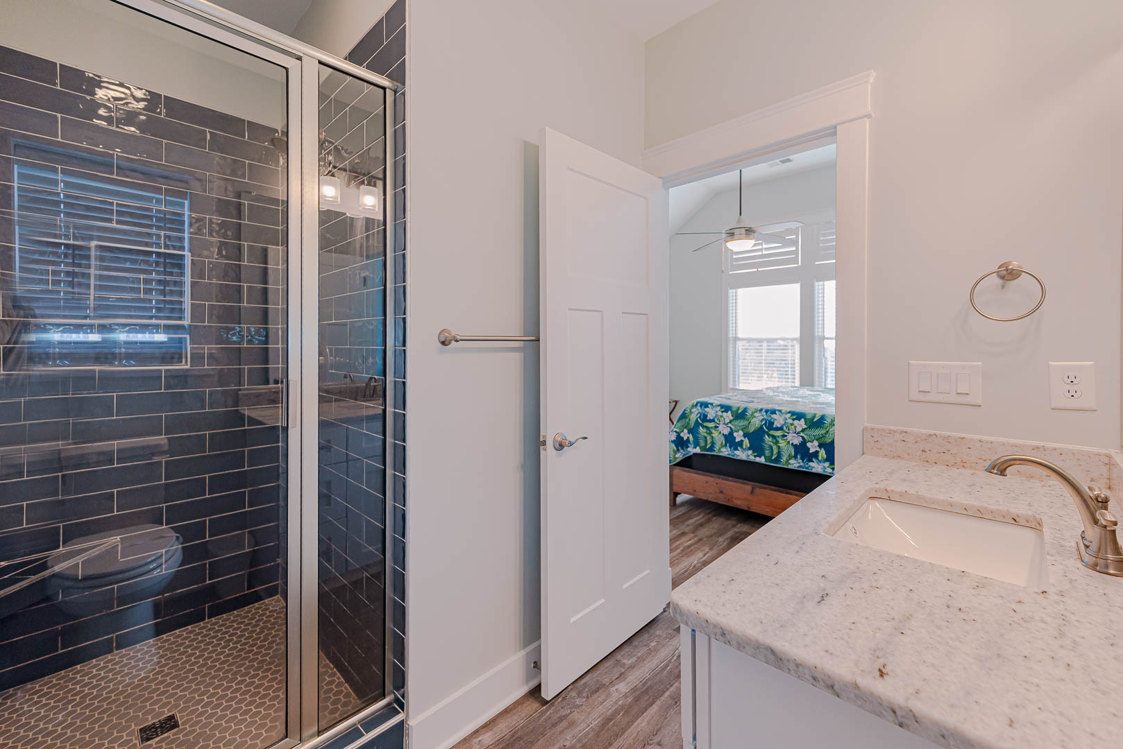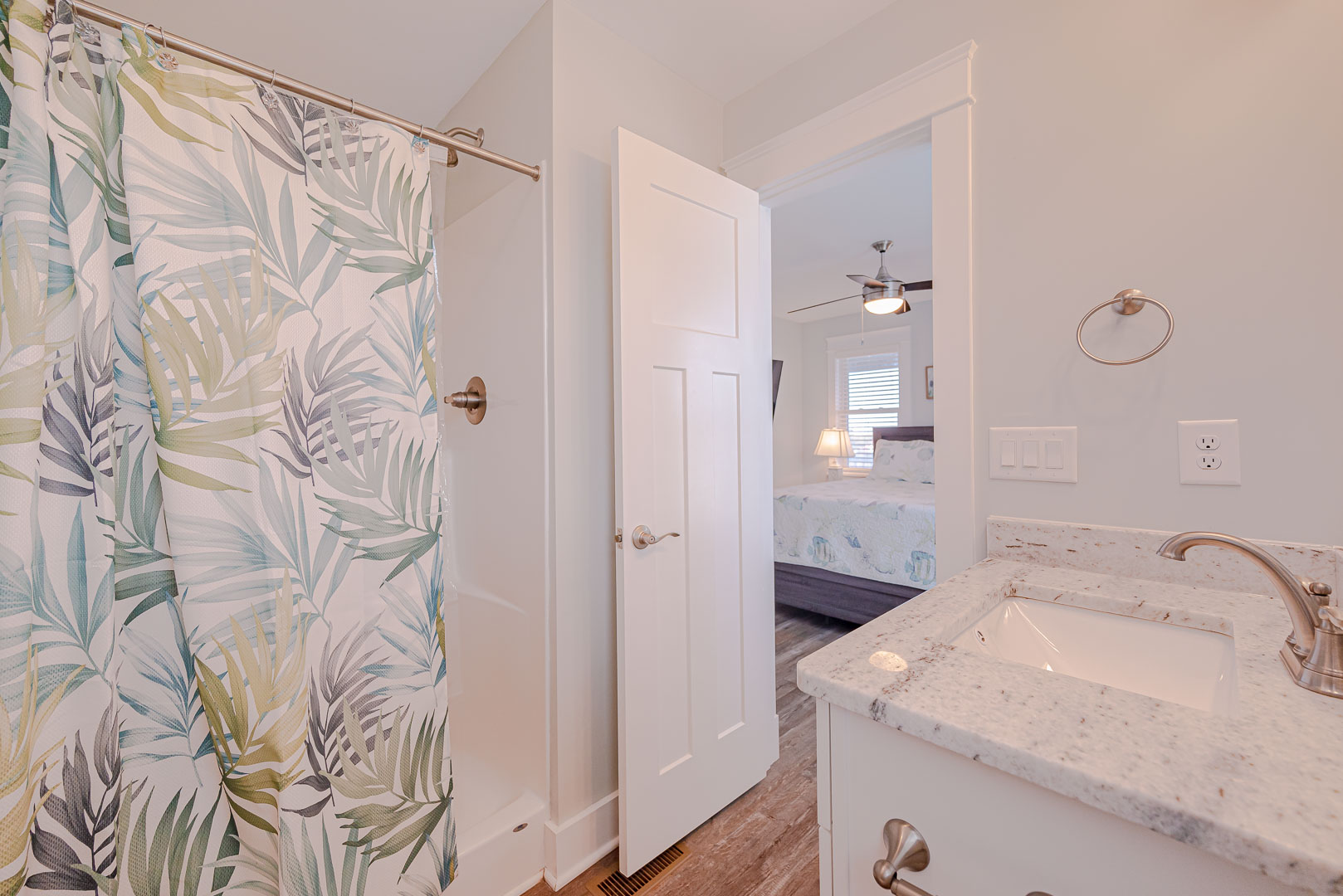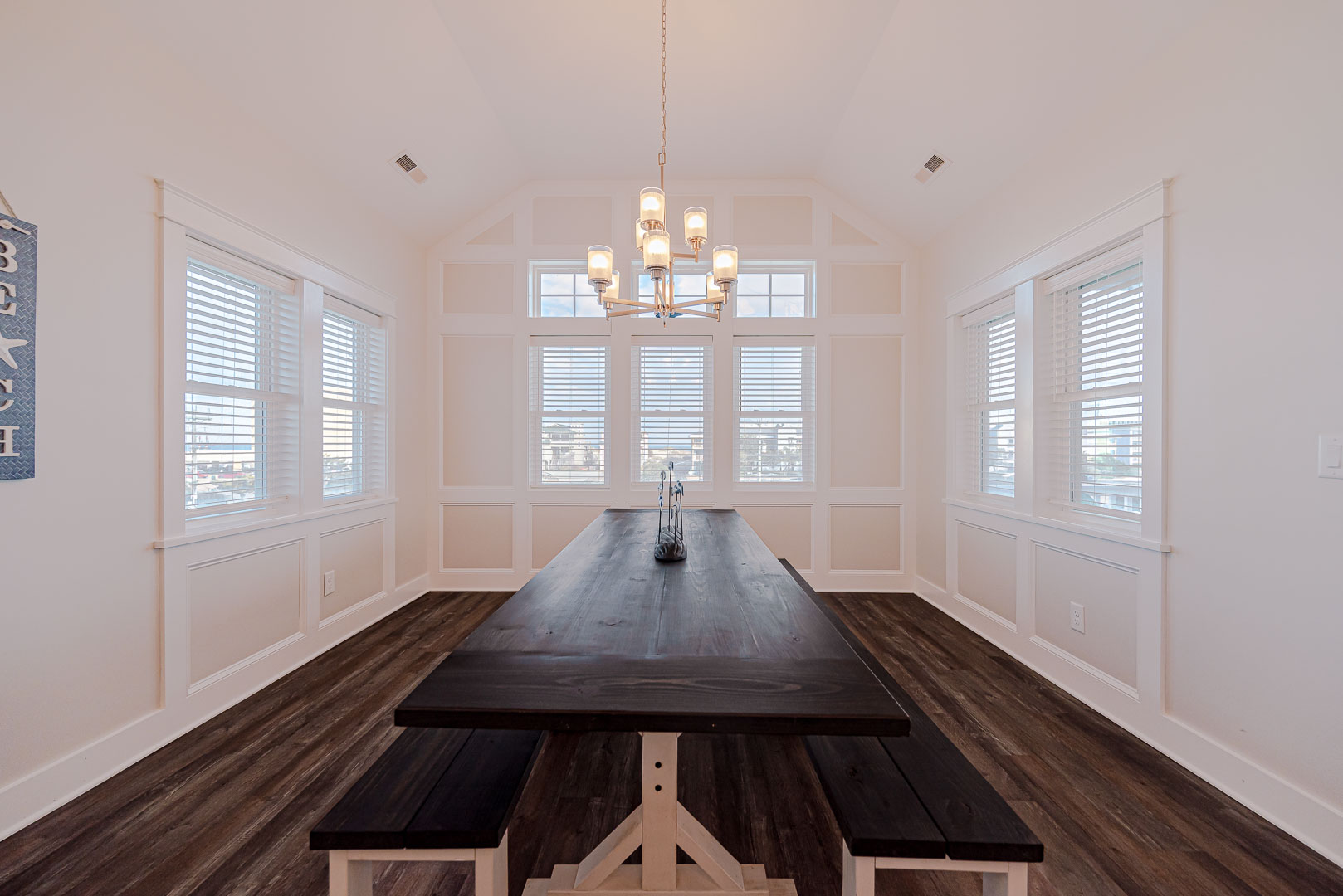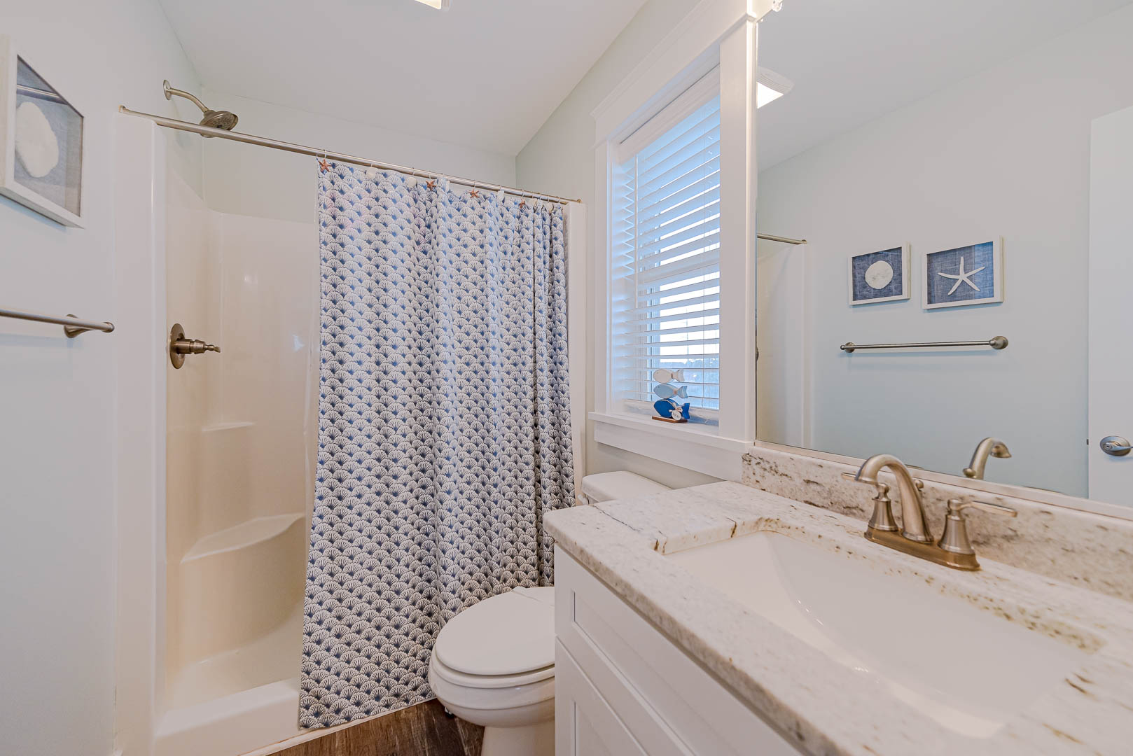 The top floor features the Living/Dining/Kitchen area that is open and speciaous, has cathedral ceilings, gourmet kitchen w/island bar, stainless steel appliances and quartz counters. With plenty of room to gather, your family will find this to be the focal point for gathering while preparing meals, or spending quality time together after a day spent on the beach or in the pool. Their is a sun deck and covered porche on this level, a private suite, and excellent views! The middle level provides 4 bedrooms, and two a covered porches. The first level features the rec. room w/pool table, private suite and access to the pool patio area where your family will enjoy swimming and plenty of room to run and play in the completely fenced rear yard.