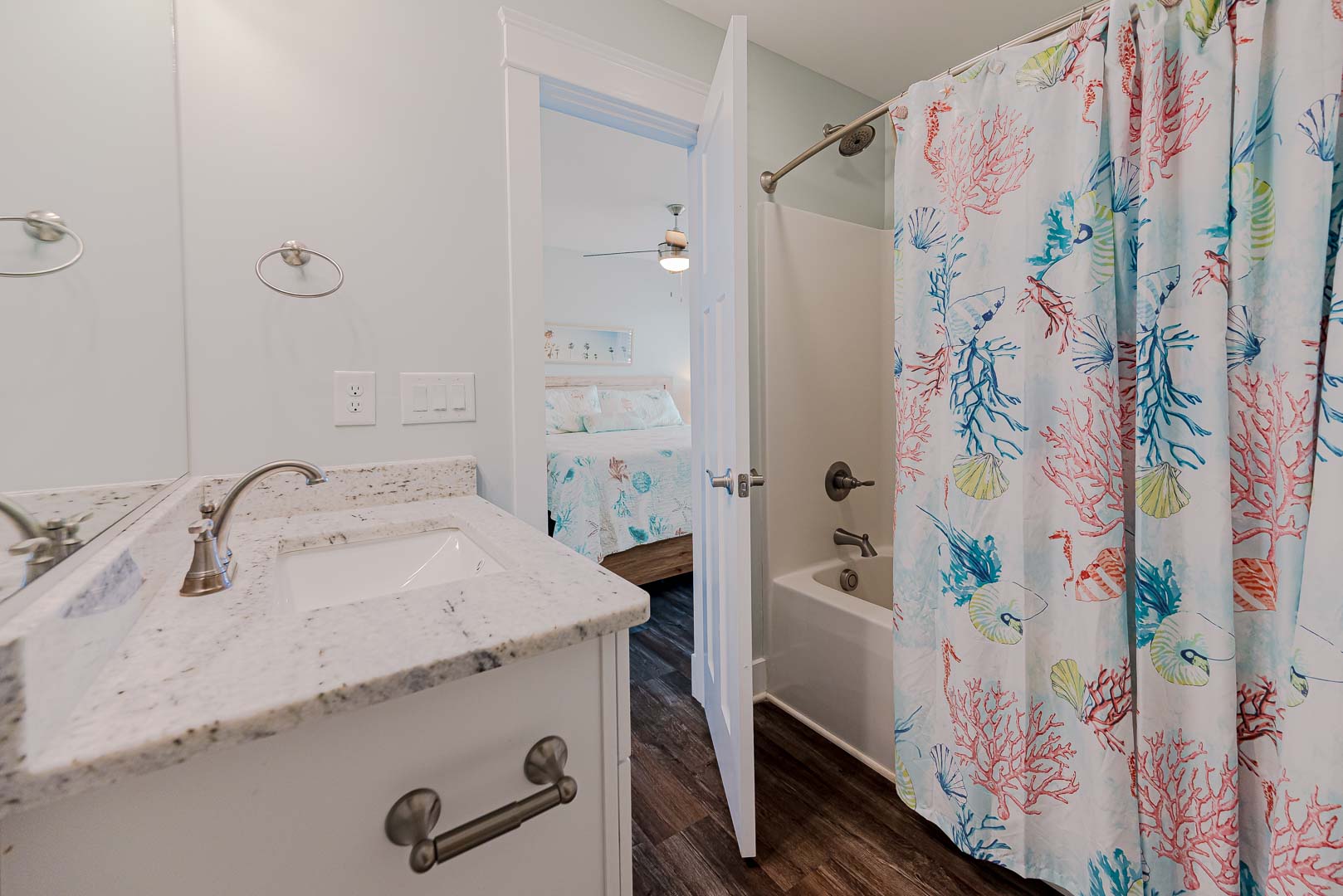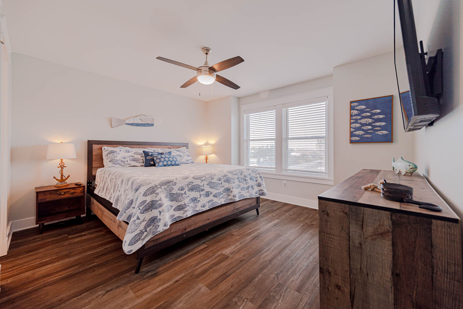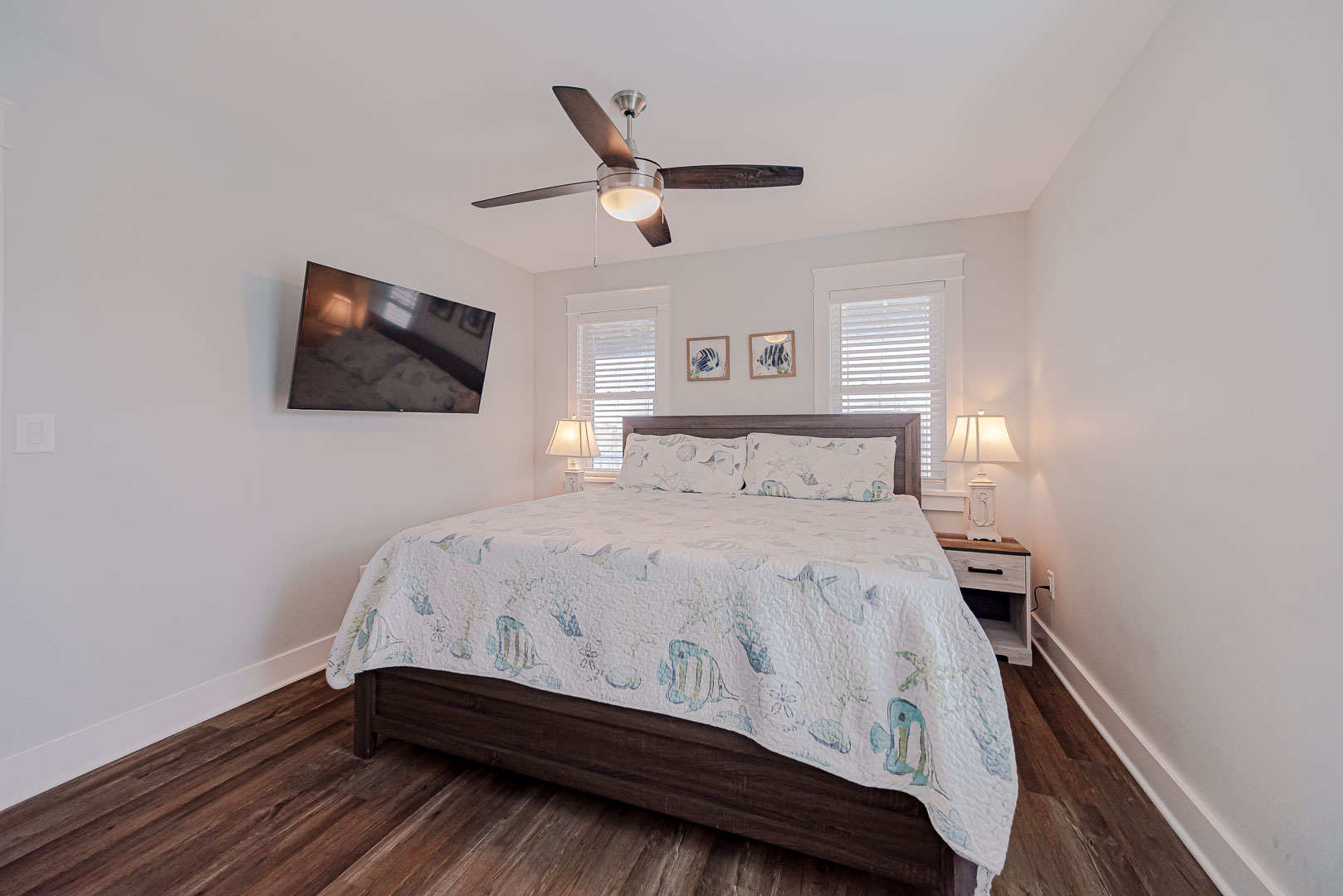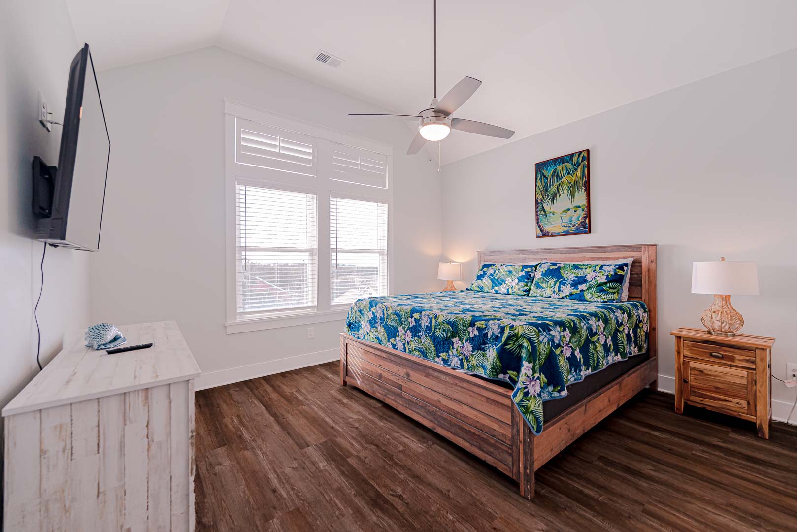 The top floor features the Living/Dining/Kitchen area that is open and speciaous, has cathedral ceilings, gourmet kitchen w/island bar, stainless steel appliances and quartz counters. With plenty of room to gather, your family will find this to be the focal point for gathering while preparing meals, or spending quality time together after a day spent on the beach or in the pool. Their is a sun deck and covered porche on this level, a private suite, and excellent views! The middle level provides 4 bedrooms, and two a covered porches. The first level features the rec. room w/pool table, private suite and access to the pool patio area where your family will enjoy swimming and plenty of room to run and play in the completely fenced rear yard.
