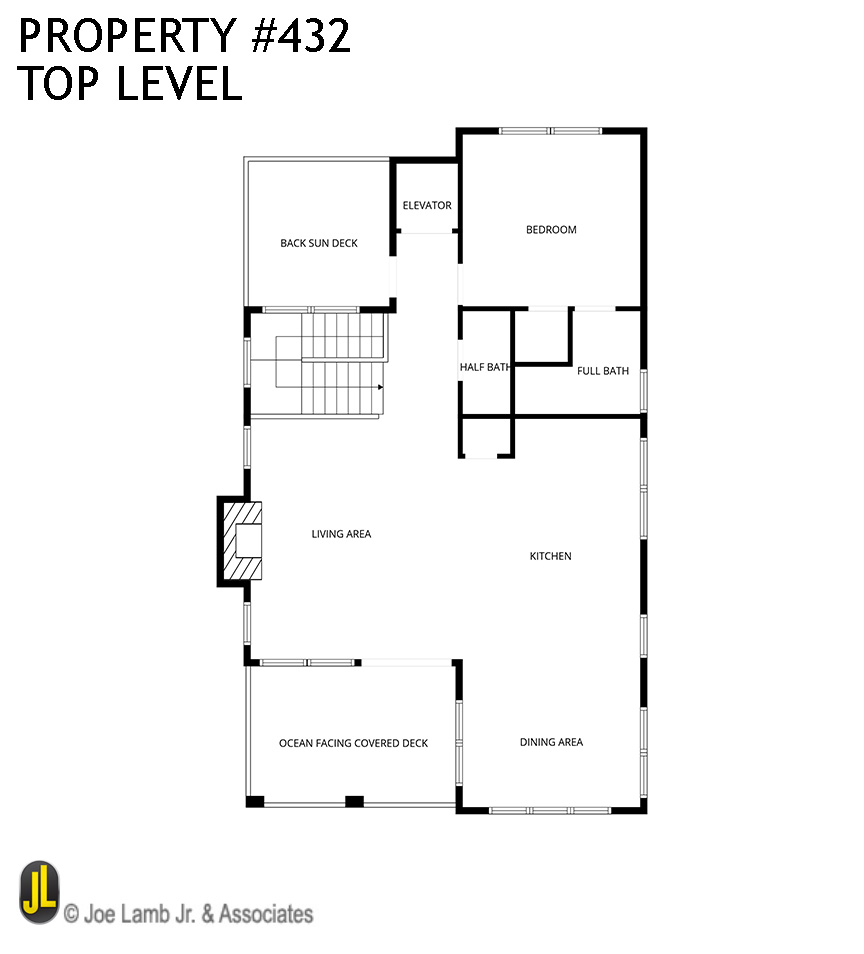 Top Level: Spacious Living/Dining/Kitchen Area, Ocean Views, TV, Stainless Steel Appliances, Island Bar w/Seating for Four (4), 2 Dishwashers, Free-Standing Icemaker, Beverage/Wine Cooler, Hall Half Bath, Private Suite w/King, TV, & Full Bath w/Walk-In Shower, Ocean Facing Covered Deck w/Deck Furniture & Ocean Views, & Back Sun Deck Overlooking Pool Area & Deck Furniture.