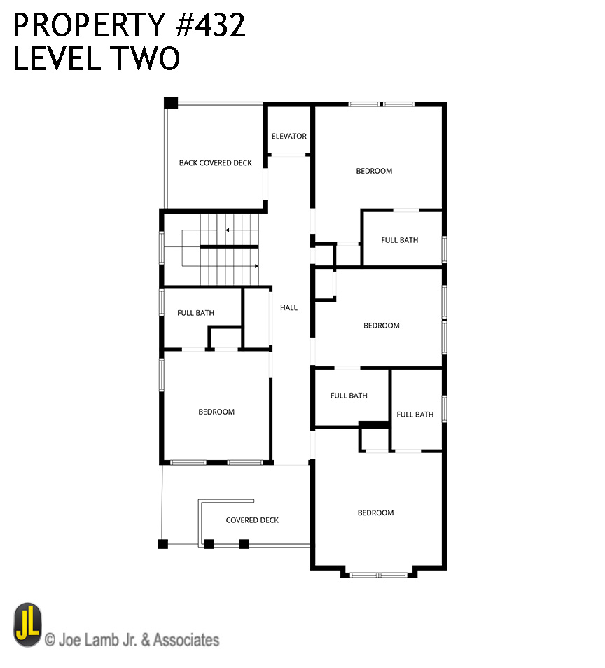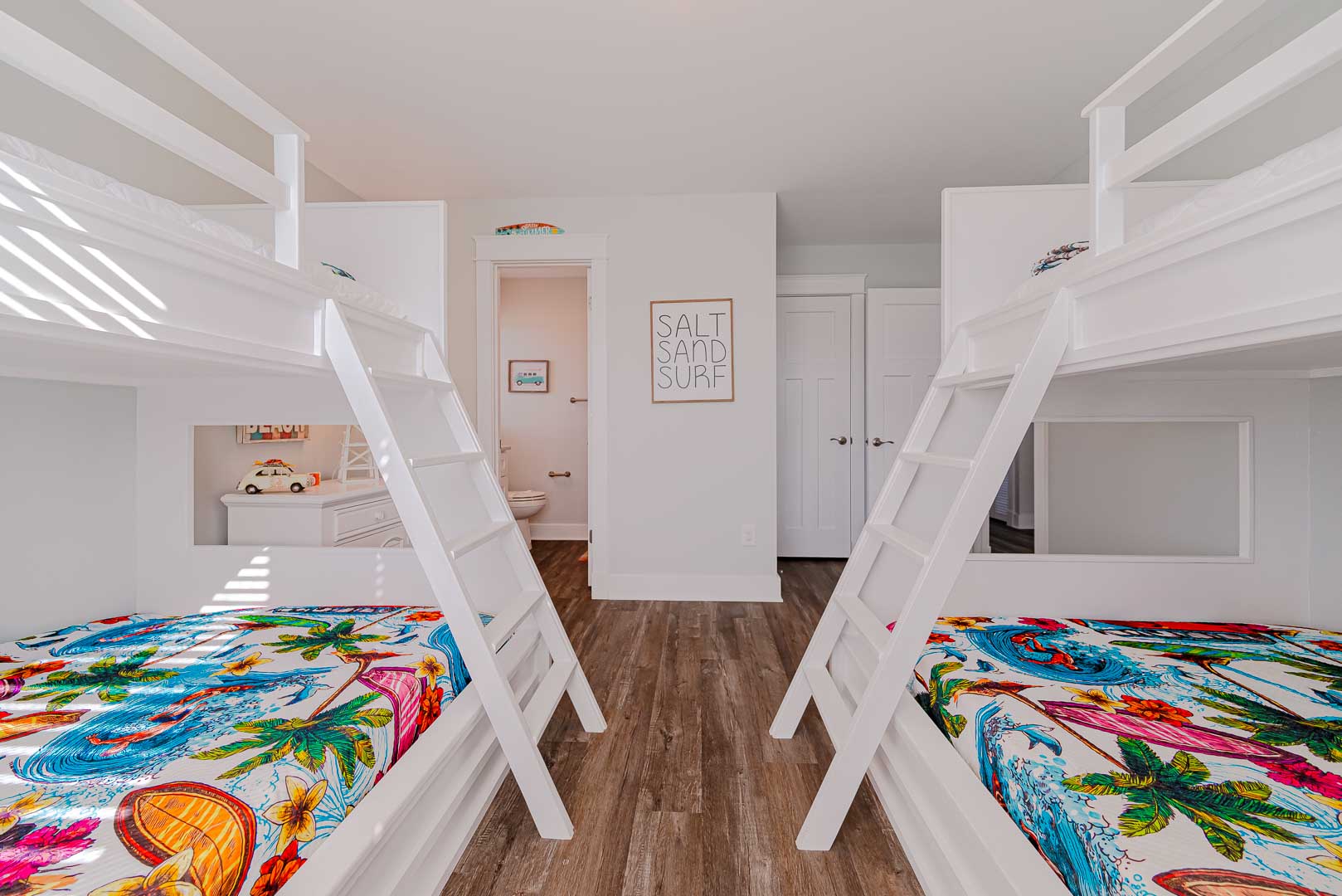 Level Two: 4 Bedrooms (2 Private Suites w/Kings, TVs, & Full Baths w/Shower; Private Suite w/King, TV, & Full Bath w/Tub/Shower, Private Suite w/2 Duo Bunks & Full Bath w/Tub/Shower), Laundry Area, Ocean Facing Covered Deck w/Deck Furniture & Horizon Ocean Views, & Back Covered Deck Overlooking Pool Area w/Deck Furniture.