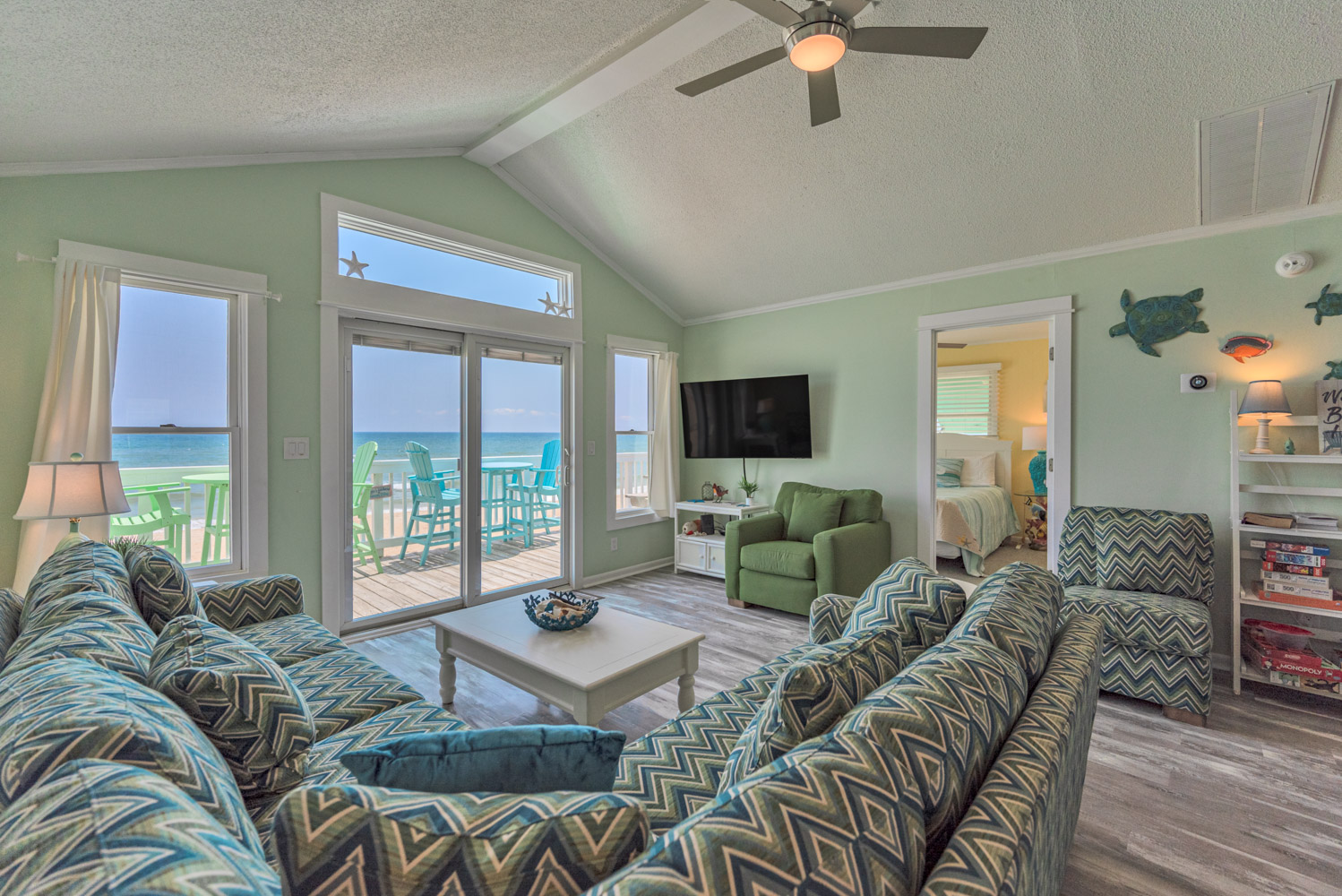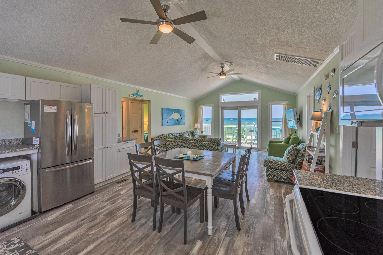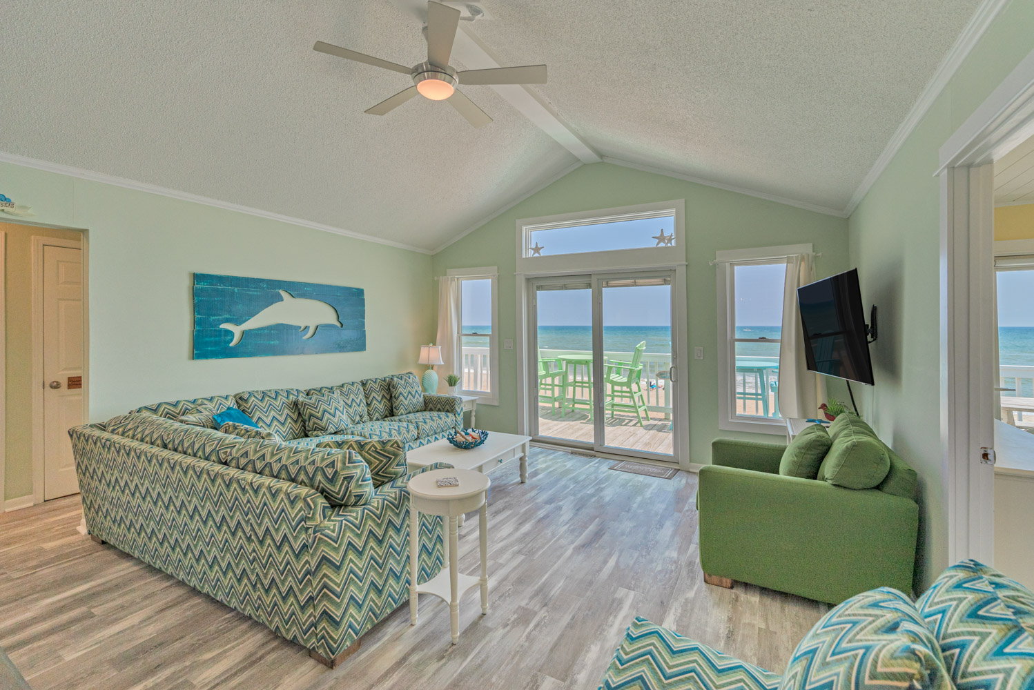 Main Level: Living/Dining/Kitchen Area, TV, 4 Bedrooms (2 w/Queens, TVs, 1 w/Duo Bunk, TV, 1 w/2 Singles), 2 Full Baths, Laundry Area, and Access to Oceanfront Sun Deck w/Deck Furniture and Fantastic Beach and Ocean Views.
