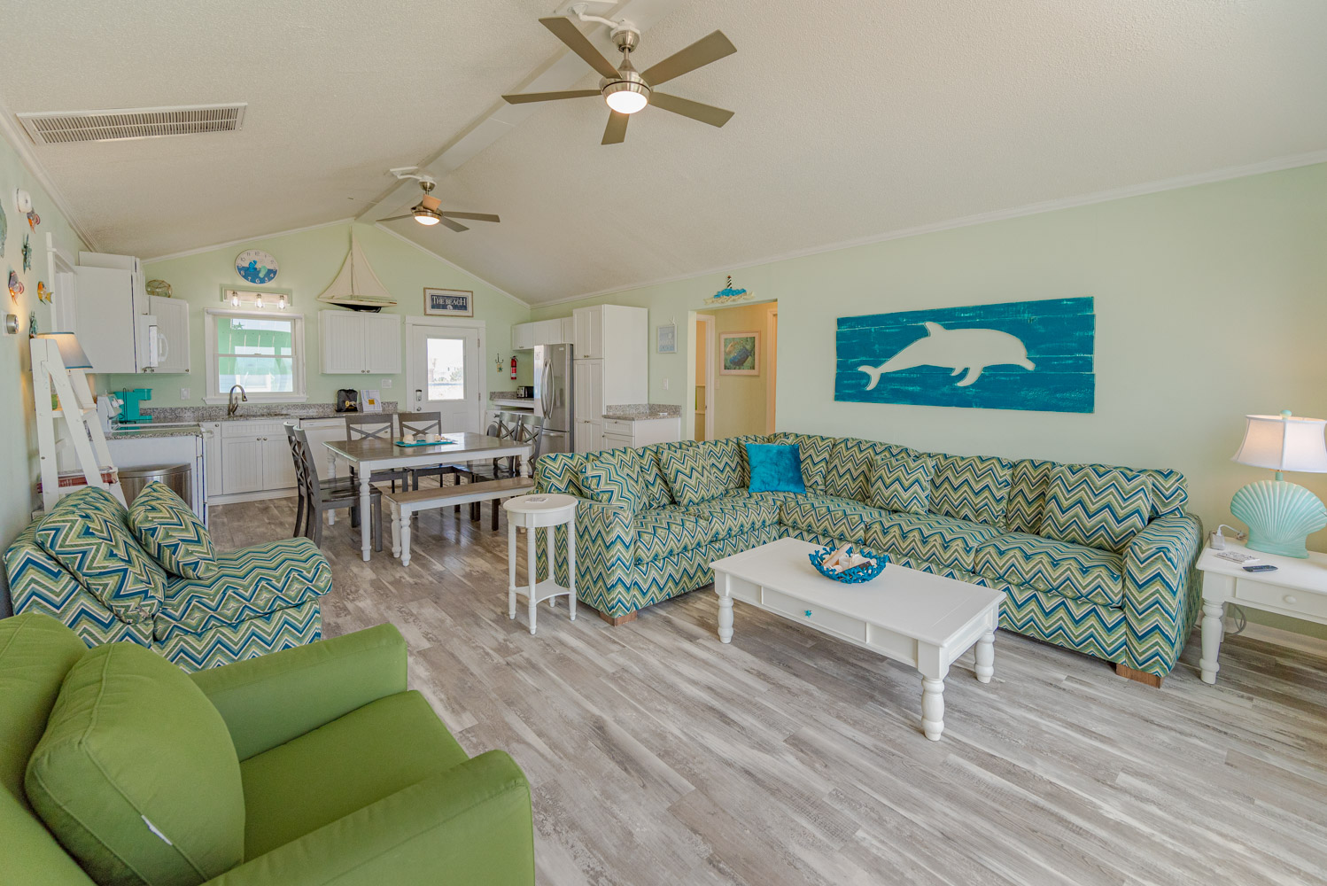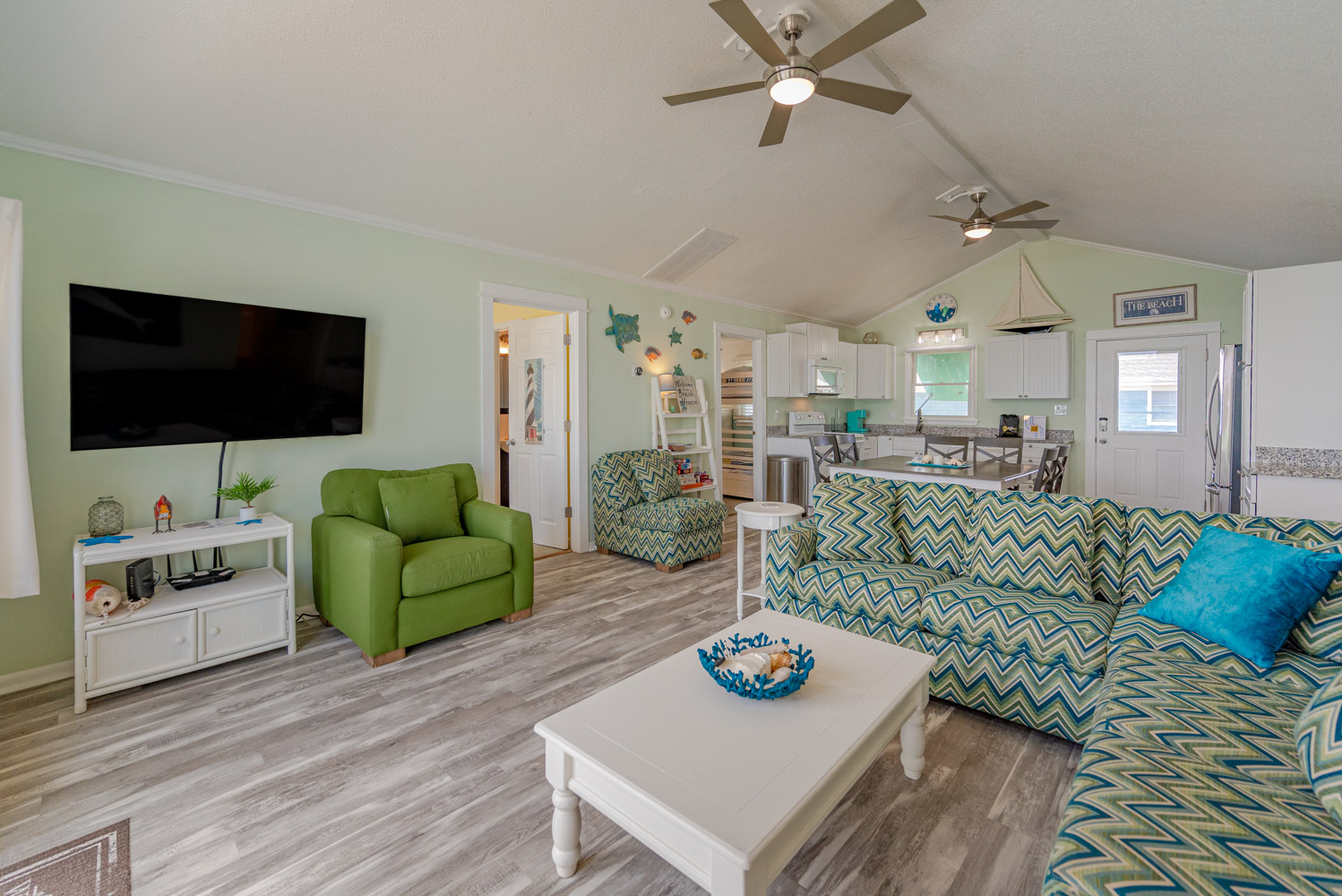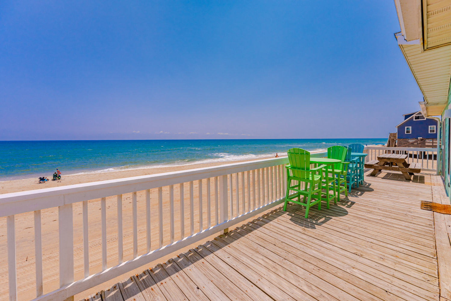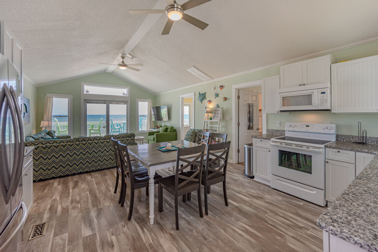 Main Level: Living/Dining/Kitchen Area, TV, 4 Bedrooms (2 w/Queens, TVs, 1 w/Duo Bunk, TV, 1 w/2 Singles), 2 Full Baths, Laundry Area, and Access to Oceanfront Sun Deck w/Deck Furniture and Fantastic Beach and Ocean Views.
