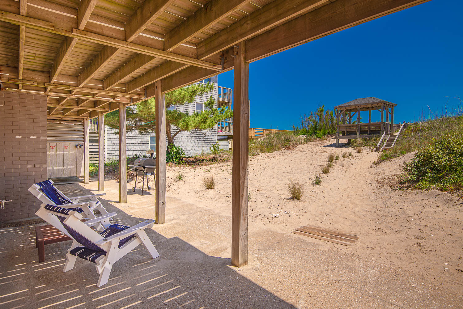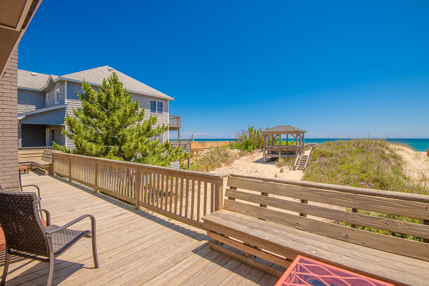 Tucked away on the Oceanfront in South Nags Head, you will enjoy direct beach access from the private walkway and endless Ocean Views from the dune-top gazebo. Located far enough away from the hustle and bustle to truly relax but convenient to local favorites like Sam and Omies, Dune Burger, Fatboys Ice Cream, Cahoon’s Market & Jennette's Fishing Pier. Take a short drive to iconic Manteo on Roanoke Island, check the daily catch at Oregon Inlet Fishing Center, or find just the right outfit at the Nags Head Outlets. Carolina Girls...it's the best of both worlds!