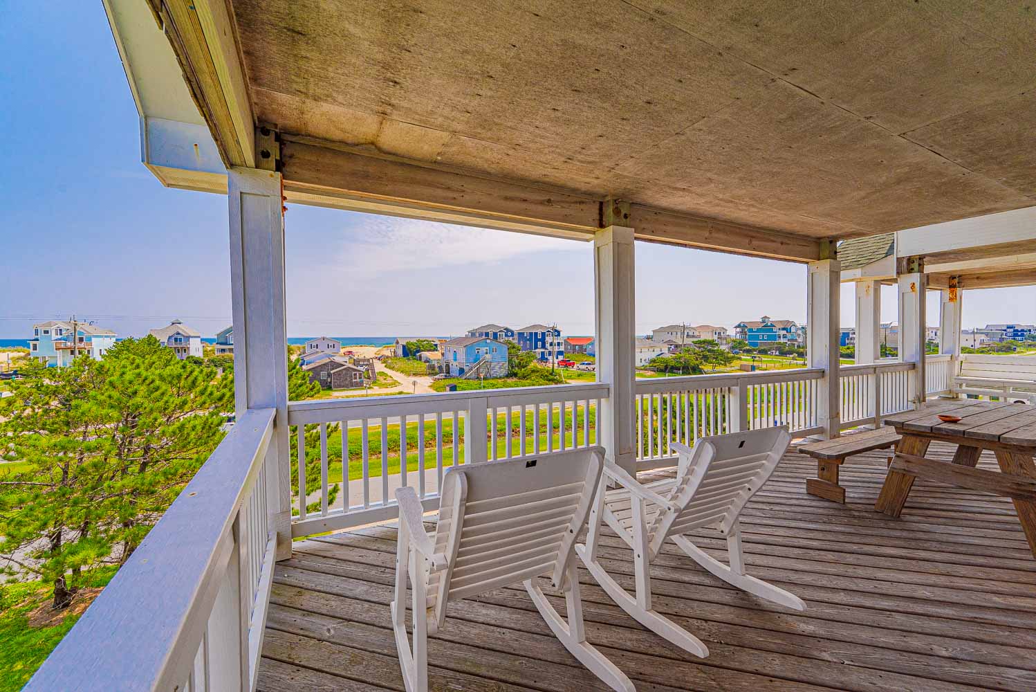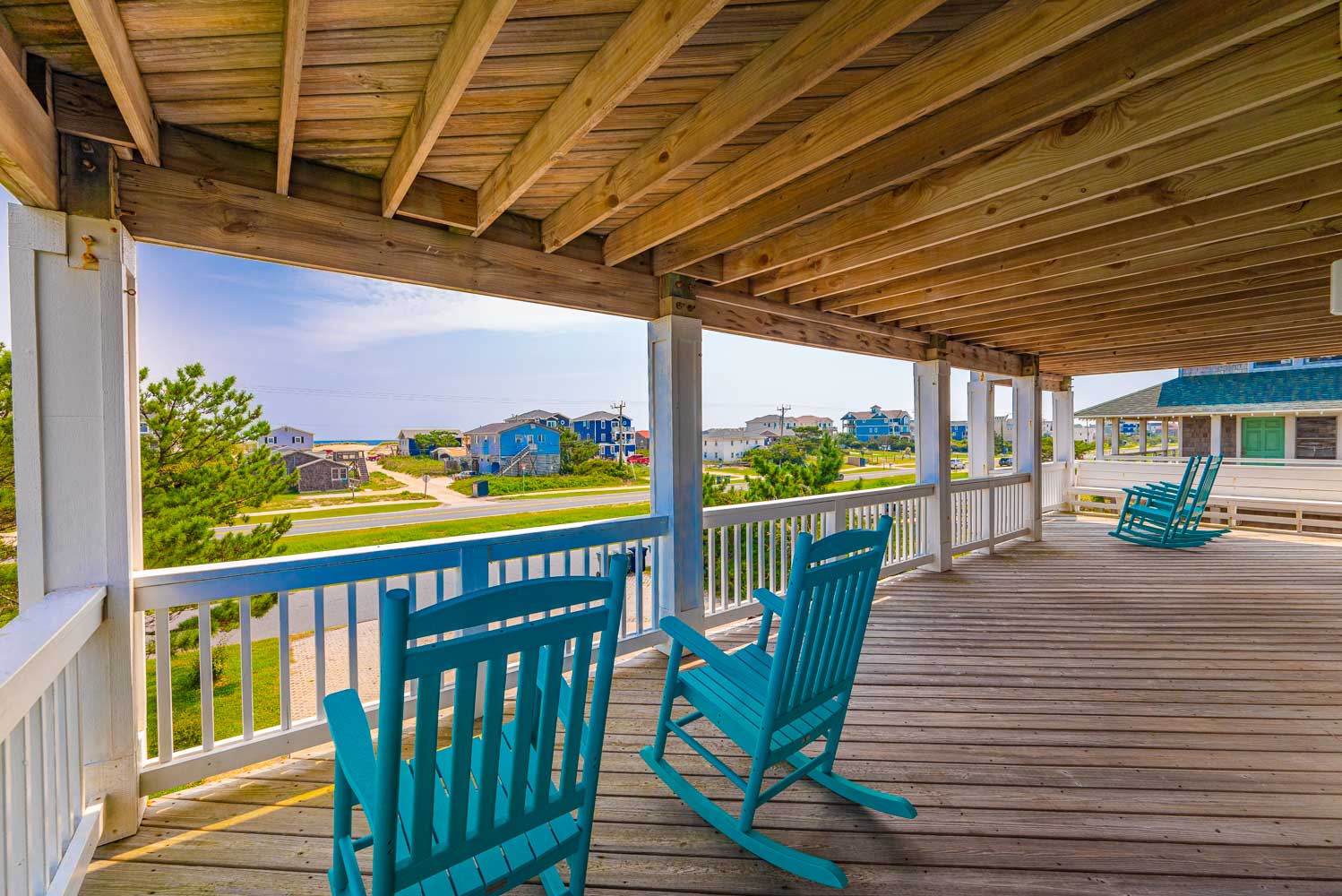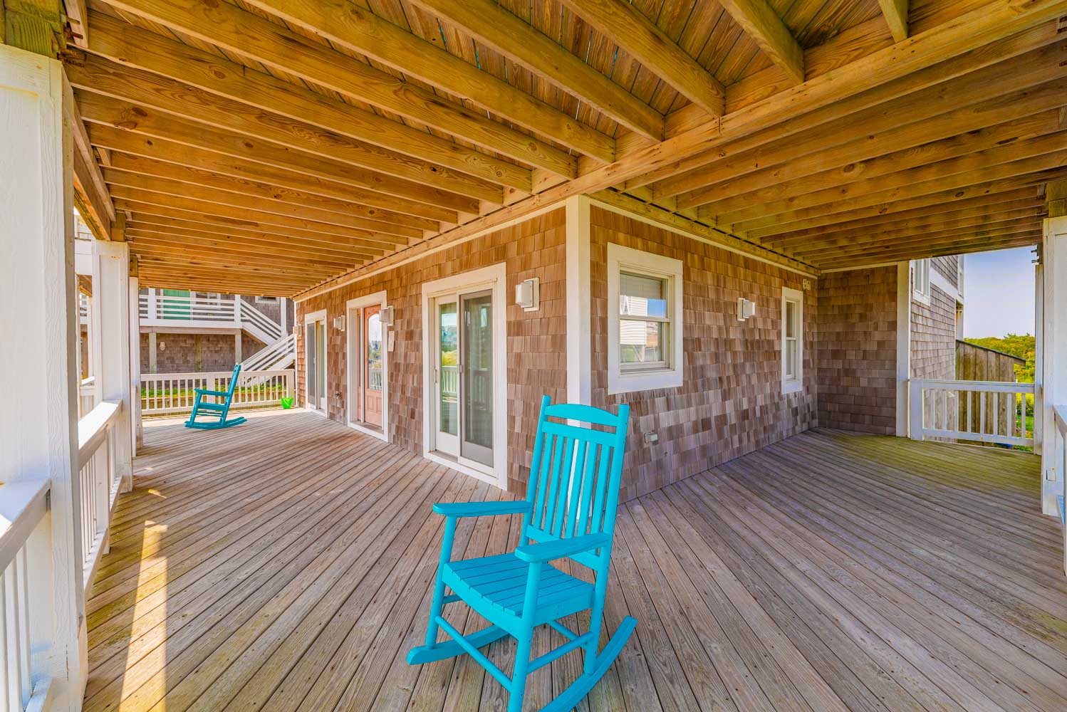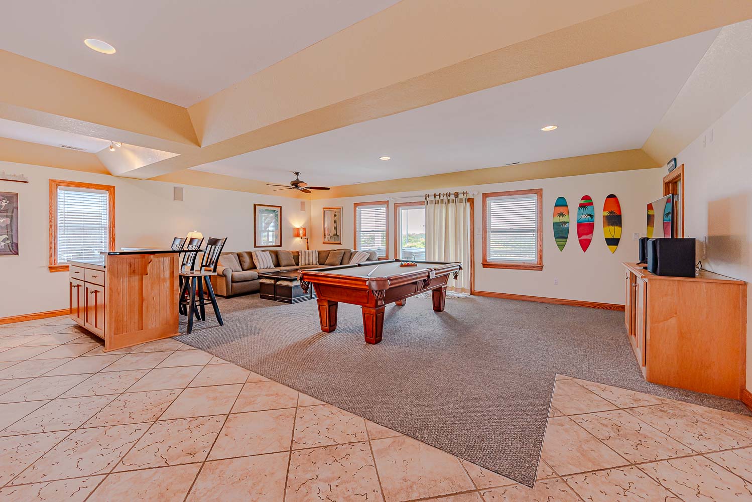 Top Level: Magnificent Great Room, Hardwood Floors, 14 Ft. Vaulted Ceilings, Ceiling Fans, Sliding Glass Door Access to Wrap Around Decking, Picnic Table, Benches, Rocking Chairs, and Ocean and Pier Views, 50 Inch Plasma HDTV, Blu-Ray/DVD, Well Stocked Kitchen, Custom Cabinetry, Granite Countertops, Pantry, Two Sink Areas, Stainless Steel Appliances, 2 Dishwashers, Range/Oven, Microwave, Refrigerator w/Ice Maker; Dining Area Seats 16 People; Half Bath, 2 Private Suites w/Queens, HDTVs, Blu-Ray/DVDs, Full Baths (One w/Completely Tiled Shower), Sliding Glass Doors to Back Deck; and Separate Hall Door to Back Deck w/Views of Cape Hatteras National Seashore and Wildlife.