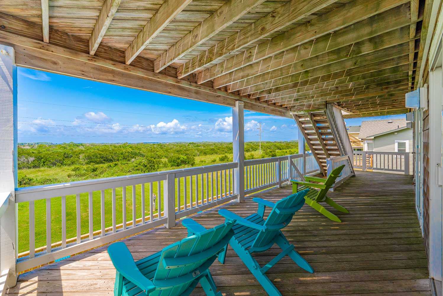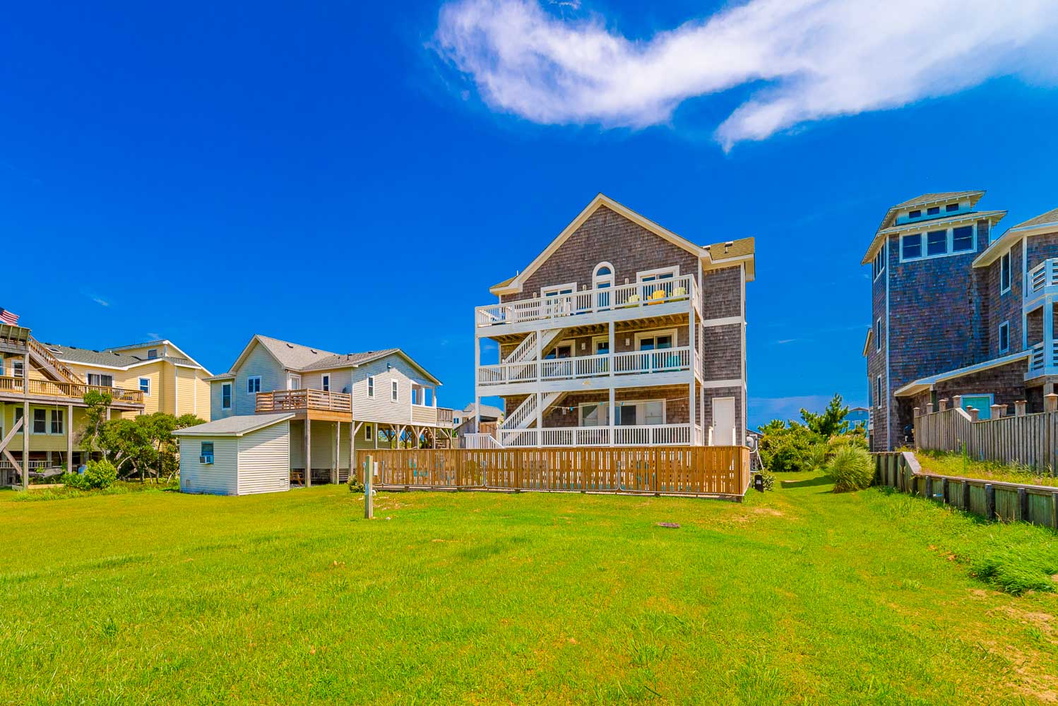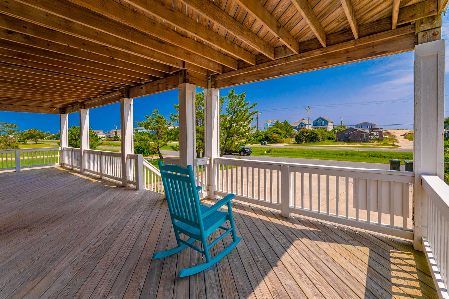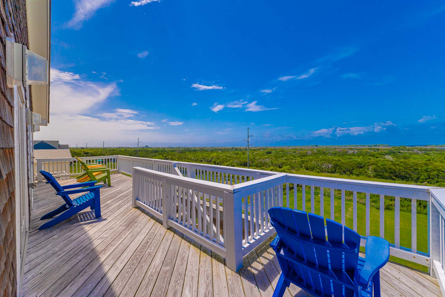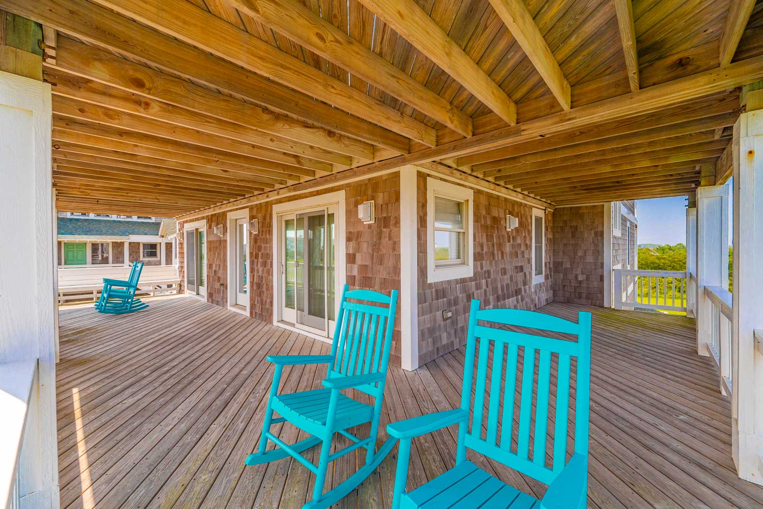 Top Level: Magnificent Great Room, Hardwood Floors, 14 Ft. Vaulted Ceilings, Ceiling Fans, Sliding Glass Door Access to Wrap Around Decking, Picnic Table, Benches, Rocking Chairs, and Ocean and Pier Views, 50 Inch Plasma HDTV, Blu-Ray/DVD, Well Stocked Kitchen, Custom Cabinetry, Granite Countertops, Pantry, Two Sink Areas, Stainless Steel Appliances, 2 Dishwashers, Range/Oven, Microwave, Refrigerator w/Ice Maker; Dining Area Seats 16 People; Half Bath, 2 Private Suites w/Queens, HDTVs, Blu-Ray/DVDs, Full Baths (One w/Completely Tiled Shower), Sliding Glass Doors to Back Deck; and Separate Hall Door to Back Deck w/Views of Cape Hatteras National Seashore and Wildlife.