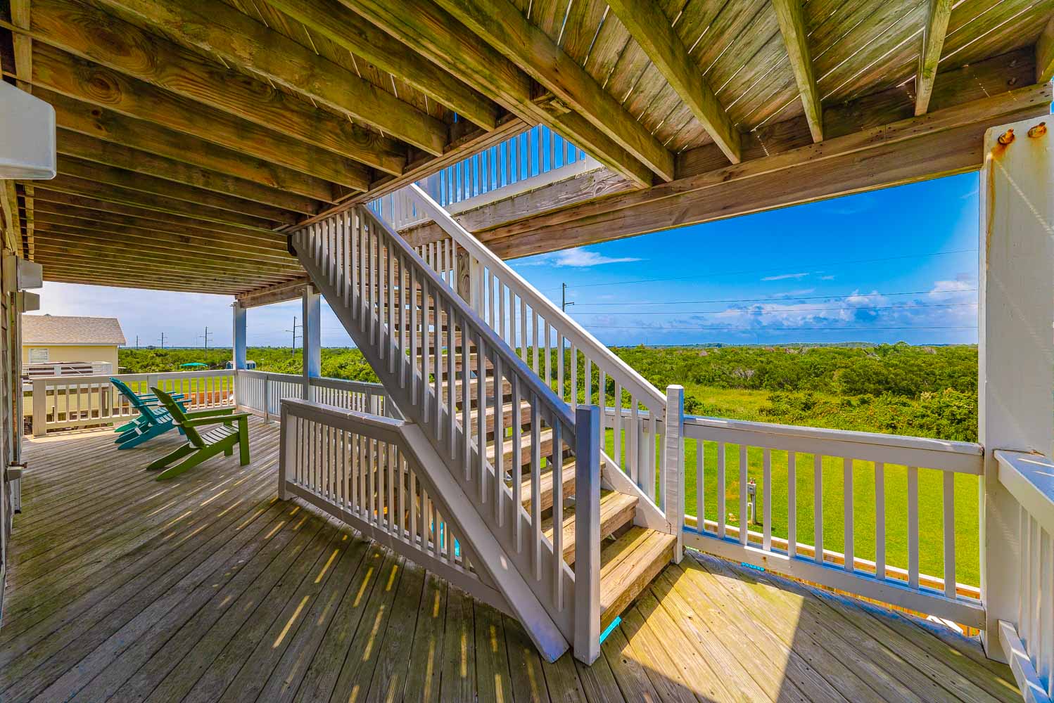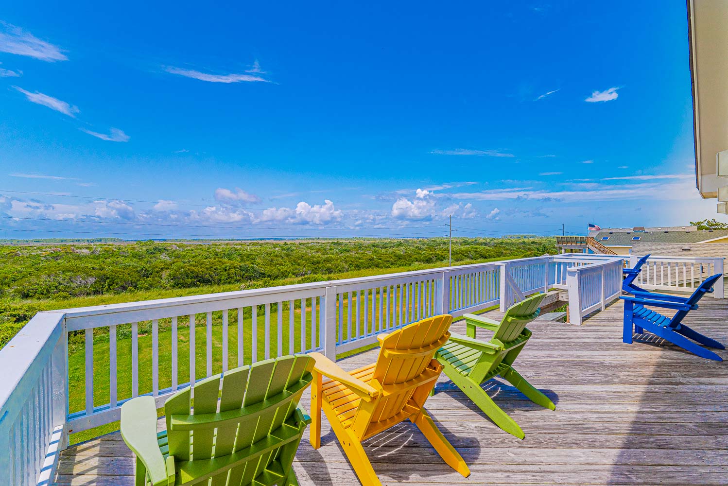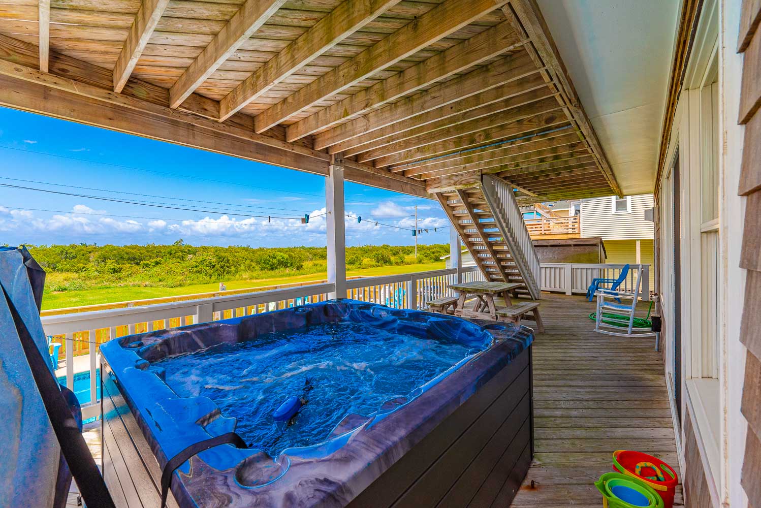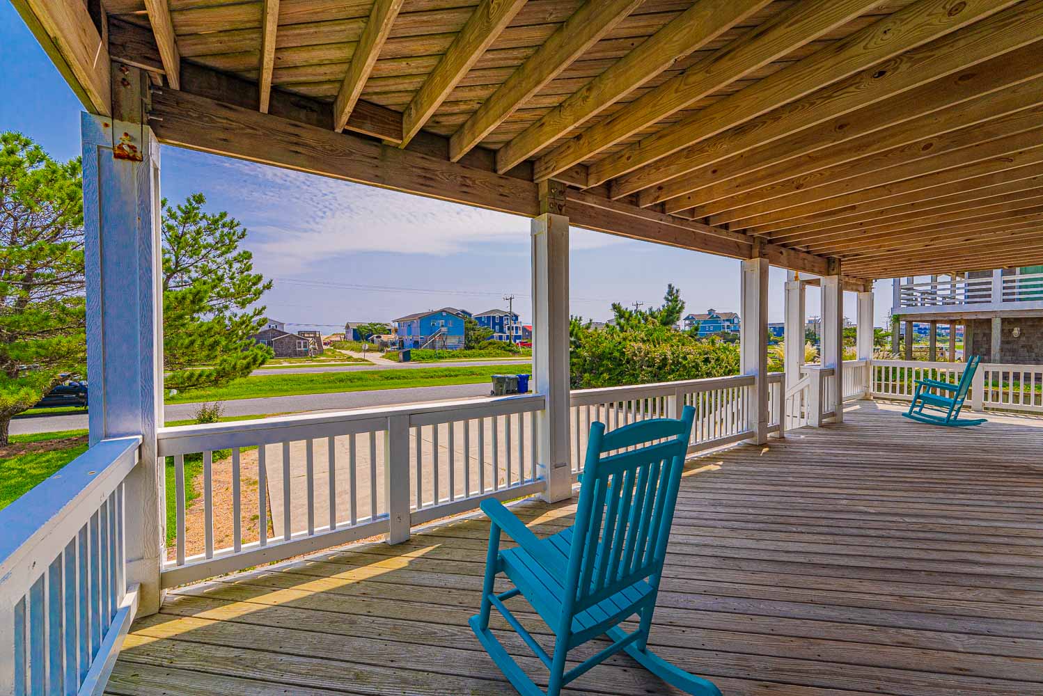 Top Level: Magnificent Great Room, Hardwood Floors, 14 Ft. Vaulted Ceilings, Ceiling Fans, Sliding Glass Door Access to Wrap Around Decking, Picnic Table, Benches, Rocking Chairs, and Ocean and Pier Views, 50 Inch Plasma HDTV, Blu-Ray/DVD, Well Stocked Kitchen, Custom Cabinetry, Granite Countertops, Pantry, Two Sink Areas, Stainless Steel Appliances, 2 Dishwashers, Range/Oven, Microwave, Refrigerator w/Ice Maker; Dining Area Seats 16 People; Half Bath, 2 Private Suites w/Queens, HDTVs, Blu-Ray/DVDs, Full Baths (One w/Completely Tiled Shower), Sliding Glass Doors to Back Deck; and Separate Hall Door to Back Deck w/Views of Cape Hatteras National Seashore and Wildlife.
