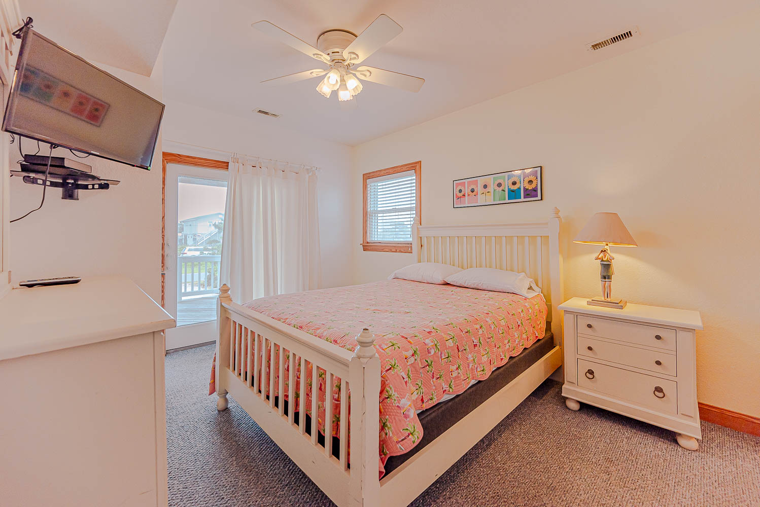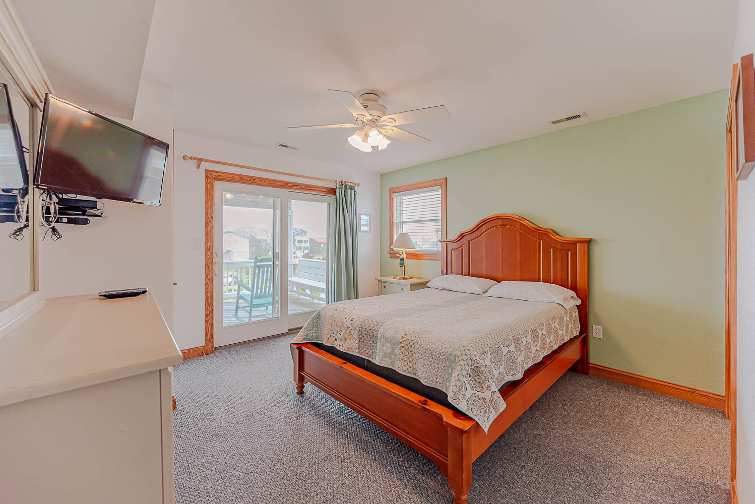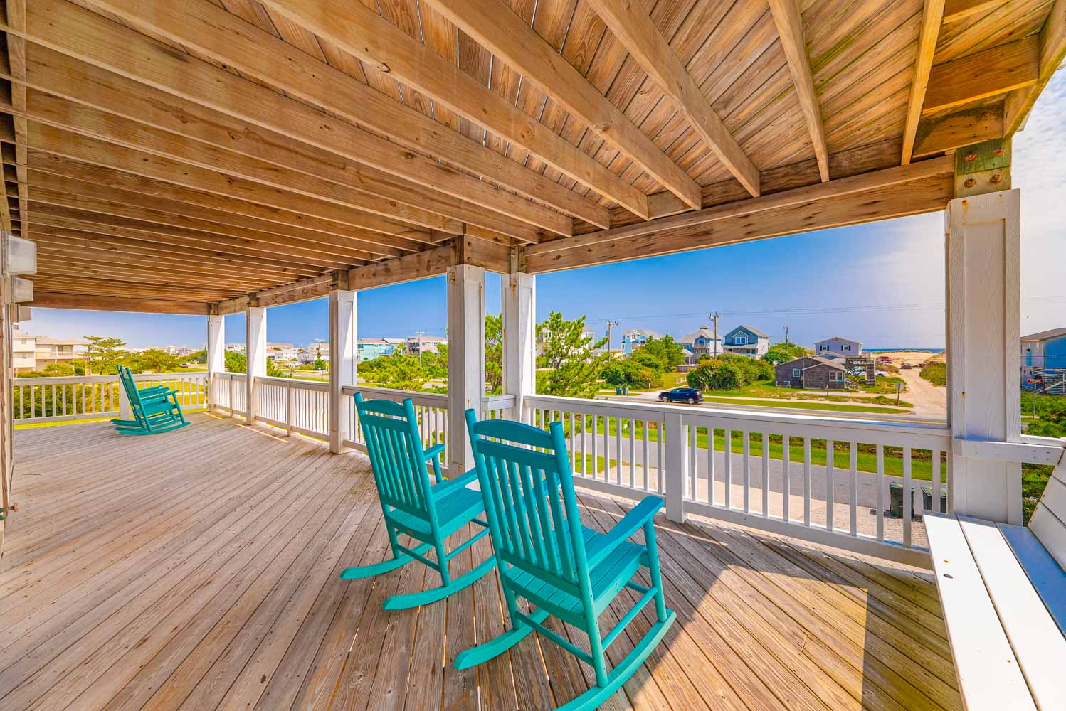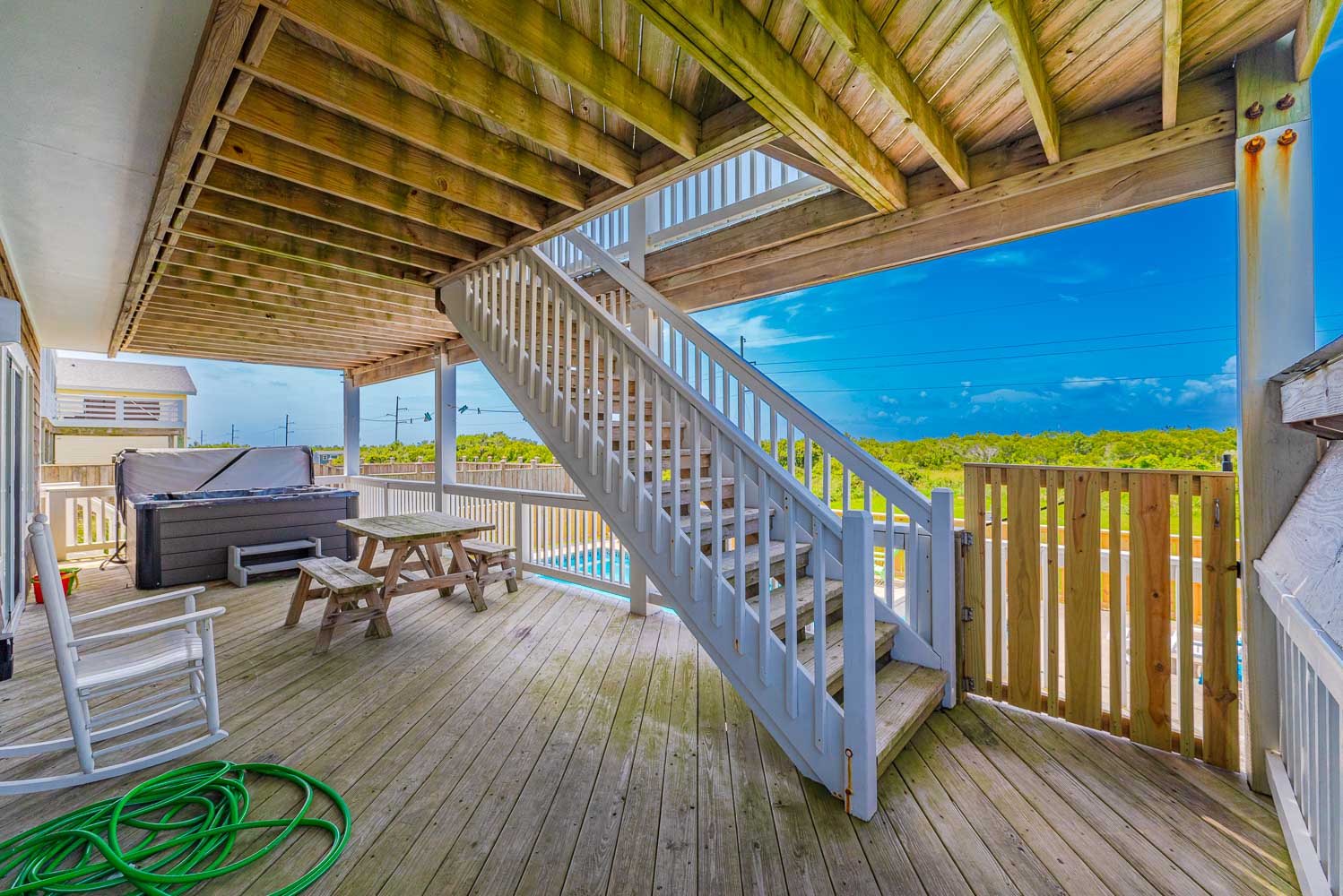 Top Level: Magnificent Great Room, Hardwood Floors, 14 Ft. Vaulted Ceilings, Ceiling Fans, Sliding Glass Door Access to Wrap Around Decking, Picnic Table, Benches, Rocking Chairs, and Ocean and Pier Views, 50 Inch Plasma HDTV, Blu-Ray/DVD, Well Stocked Kitchen, Custom Cabinetry, Granite Countertops, Pantry, Two Sink Areas, Stainless Steel Appliances, 2 Dishwashers, Range/Oven, Microwave, Refrigerator w/Ice Maker; Dining Area Seats 16 People; Half Bath, 2 Private Suites w/Queens, HDTVs, Blu-Ray/DVDs, Full Baths (One w/Completely Tiled Shower), Sliding Glass Doors to Back Deck; and Separate Hall Door to Back Deck w/Views of Cape Hatteras National Seashore and Wildlife.