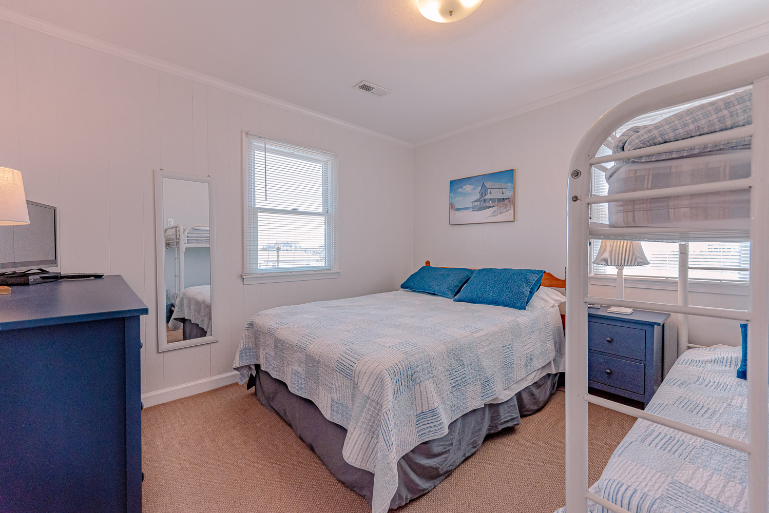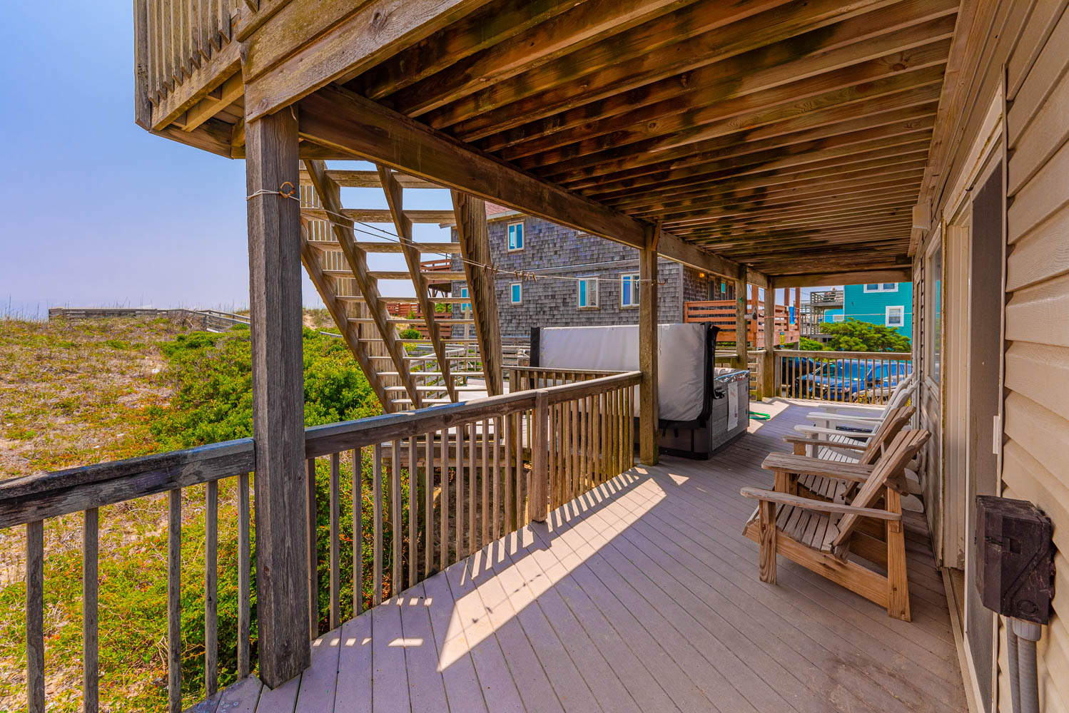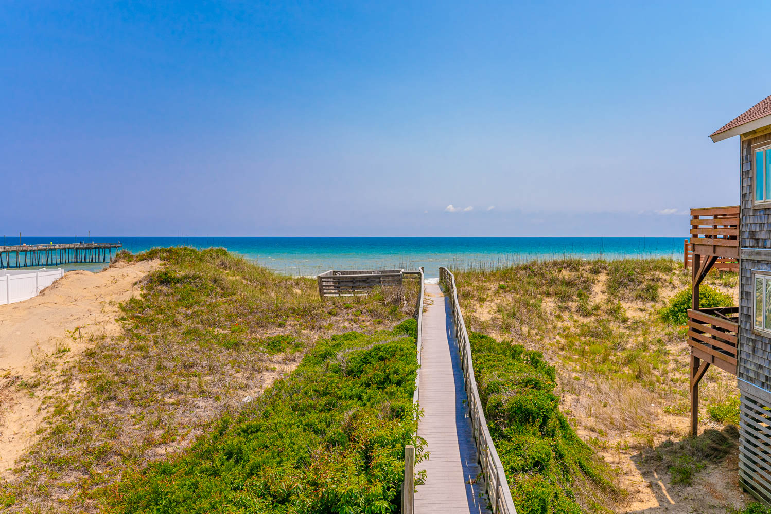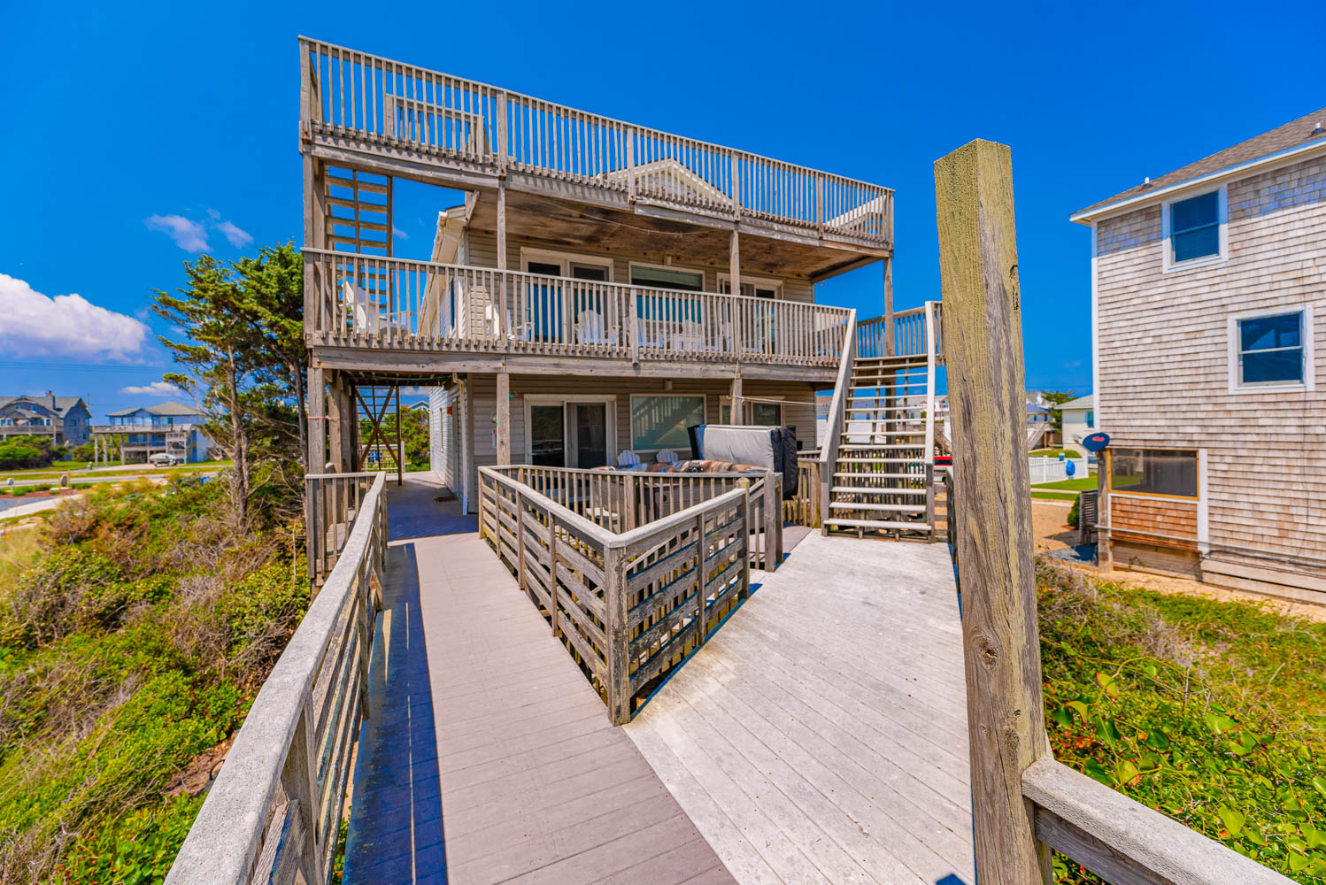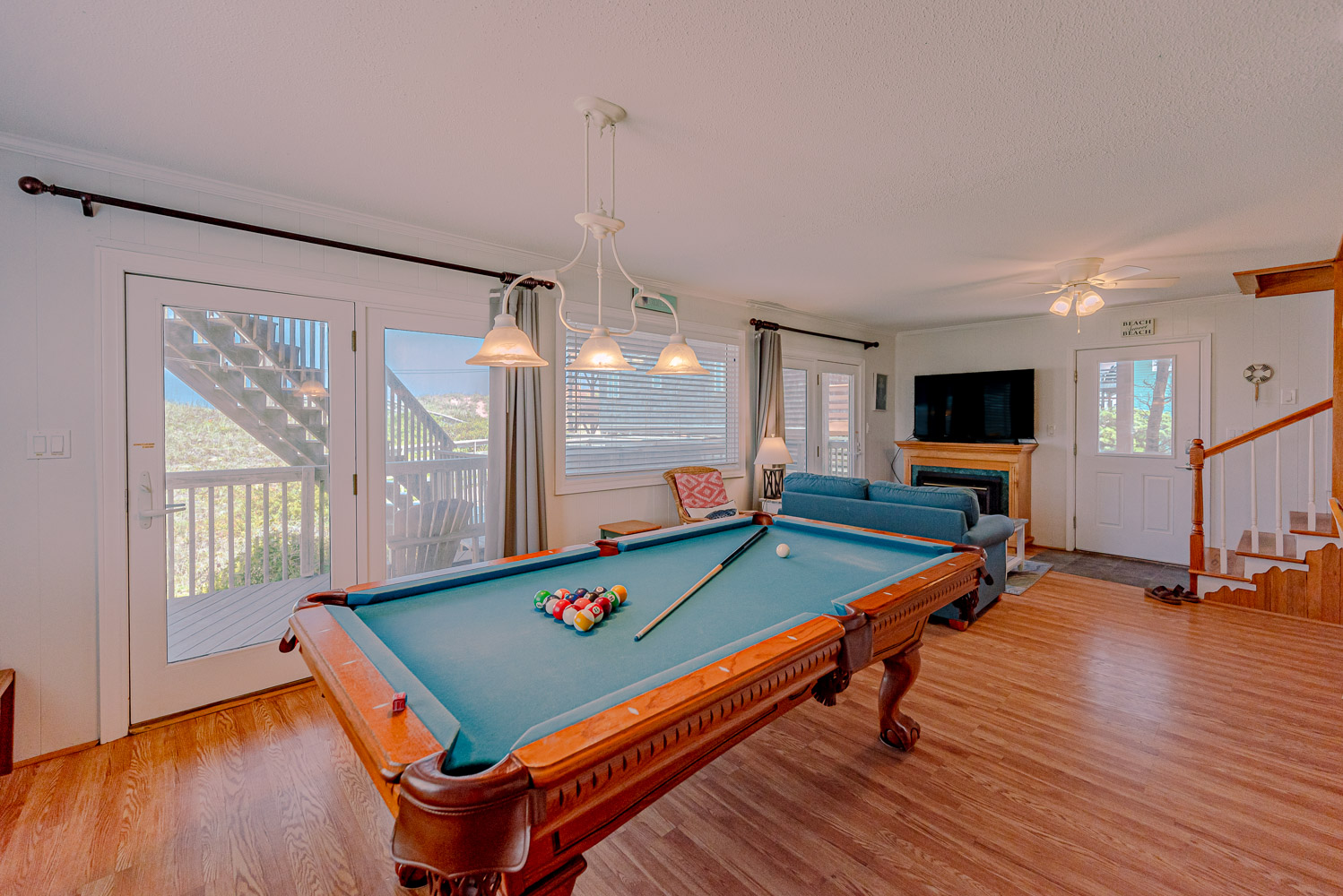 Mid Level: Rec. Room w/Pool Table, Wet Bar, Full Size Refrigerator, 50 Inch Roku TV, Netflix, Amazon Video, MLB Full Season Package; 3 Bedrooms (Private Suite w/Queen, Roku TV, Full Bath w/Shower; 1 w/Queen, Roku TV; 1 w/Queen, Bunk Set, Roku TV), Shared Full Bath, Wider Doors, Tub/Shower, Half Bath, Laundry Area, Covered Deck, Access to Hot Tub, and Walkway to Beach w/Foot Shower, Dune Top Deck, Steps to Beach, and Ocean Views.