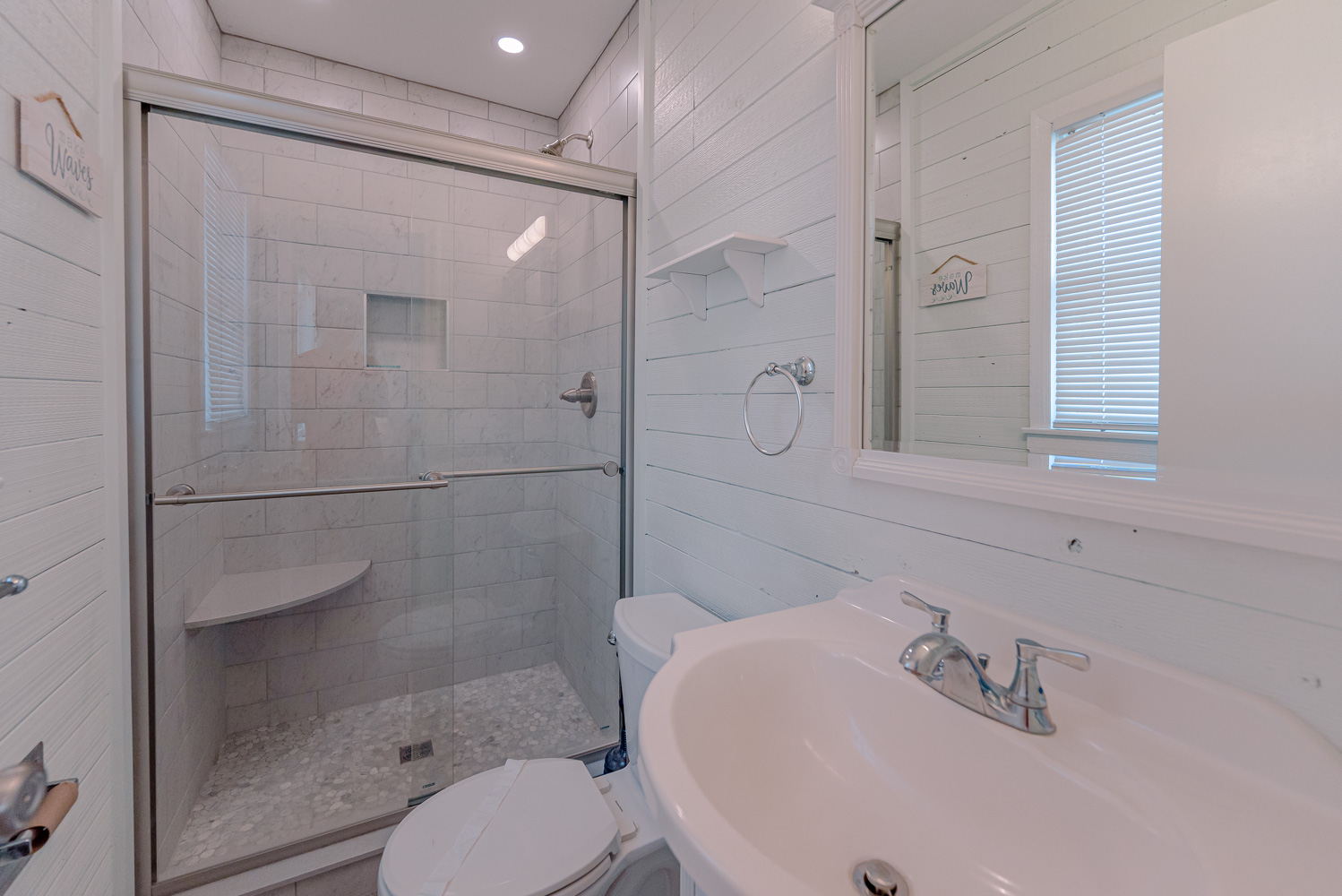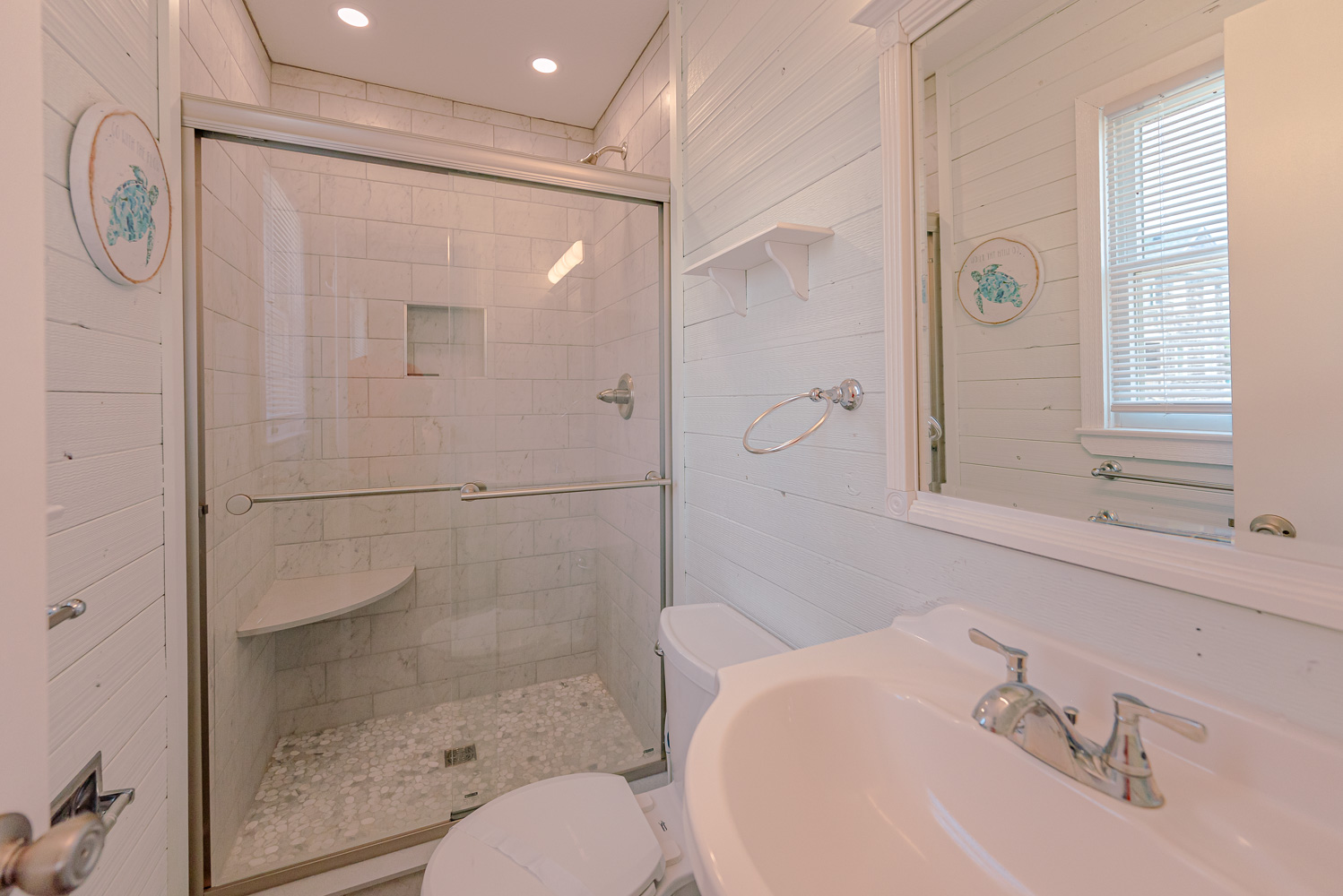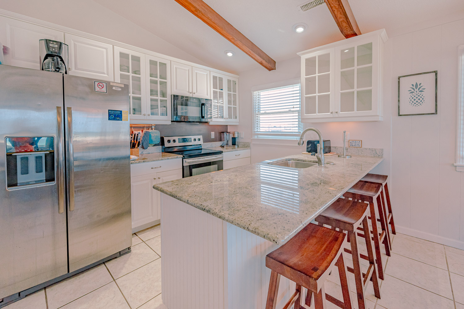 Top Level: Expanded Living Area, 50 Inch Roku TV, Netflix, Amazon Video, MLB Full Season Package; New, Well Equipped Kitchen, New Appliances; Dining Area; 3 Bedrooms (Private Suite w/Queen, Full Bath w/Shower, Roku TV; 1 w/Queen, Roku TV; 1 w/Queen, Roku TV), Shared Full Bath w/Tub/Shower, Covered Deck w/Deck Furniture and Ocean Views, and Steps to Tower/Crow’s Nest.