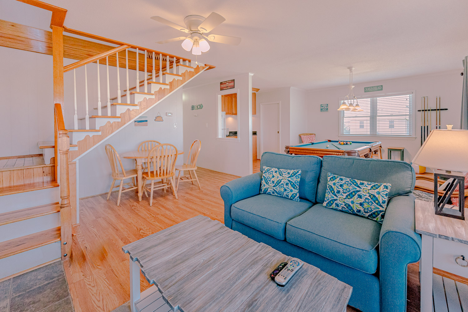 You will love vacationing By The Shore when you choose this terrific home for your Outer Banks vacation. Stroll the uncrowded beaches of South Nags Head to find your treasures or head to the Outer Banks Fishing Pier and Fish Heads Grill, which is only 300 yards away for some fun times and food with your friends. Perfectly situated in South Nags Head, a quiet and relaxing area that offers spacious beaches and a laid back atmosphere that is only a short drive away to some of the area’s most outstanding restaurants including Blue Moon Beach Grill, Mulligans, Basnight's Lone Cedar Cafe, Tale of the Whale, Sam and Omie's, Miller's Waterfront and many more. Shopping abounds with the Nags Head Outlet close by and the waterfront shops of Manteo only a few miles away. For the fishing enthusiast, the Oregon Inlet Fishing Center is located approximately 6 miles to the south and beyond that are the undeveloped beaches of the Cape Hatteras National Seashore, a can't miss sightseeing opportunity.