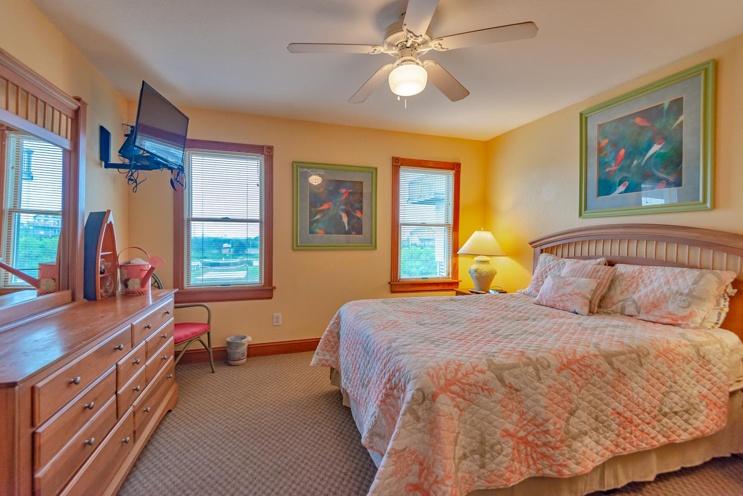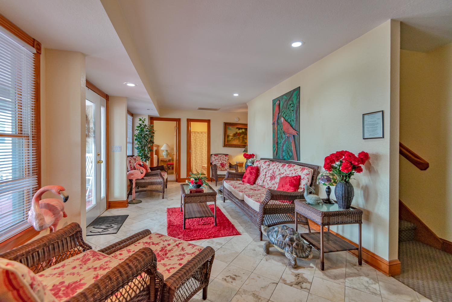 Mid Level: Lovely Tiled Foyer Entry Area w/Seating, Covered Deck w/Rockers, Ocean Views, 6 Bedrooms (3 Private Suites w/Queens, TVs, & Full Baths, 1 w/Queen & TV, & 2 w/2 Singles & TVs, & Shared Full Bath) Full Hall Bath, & Oceanfront Covered Deck.