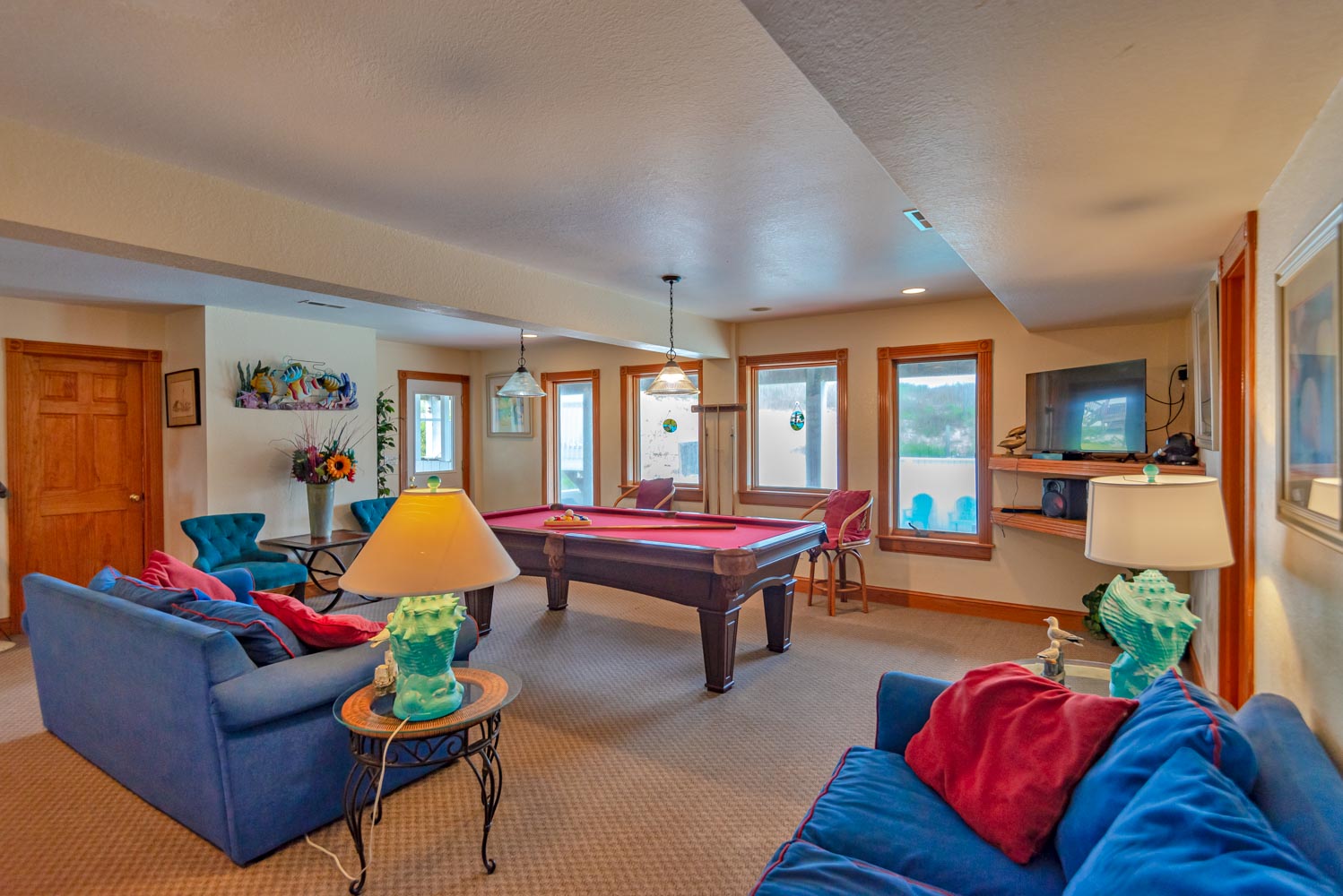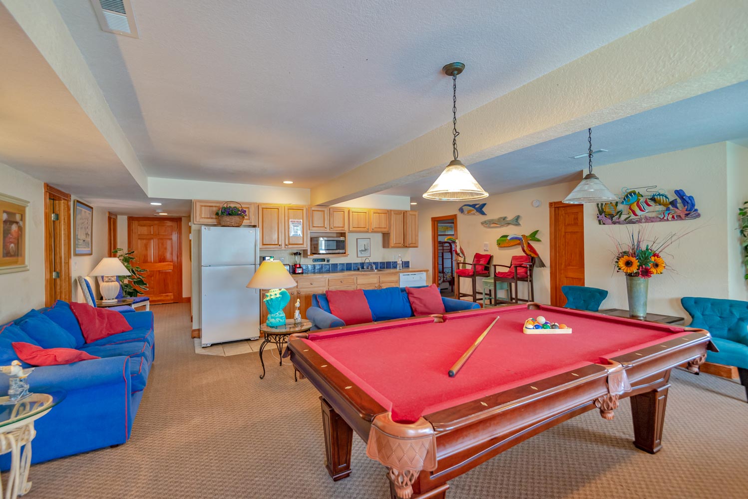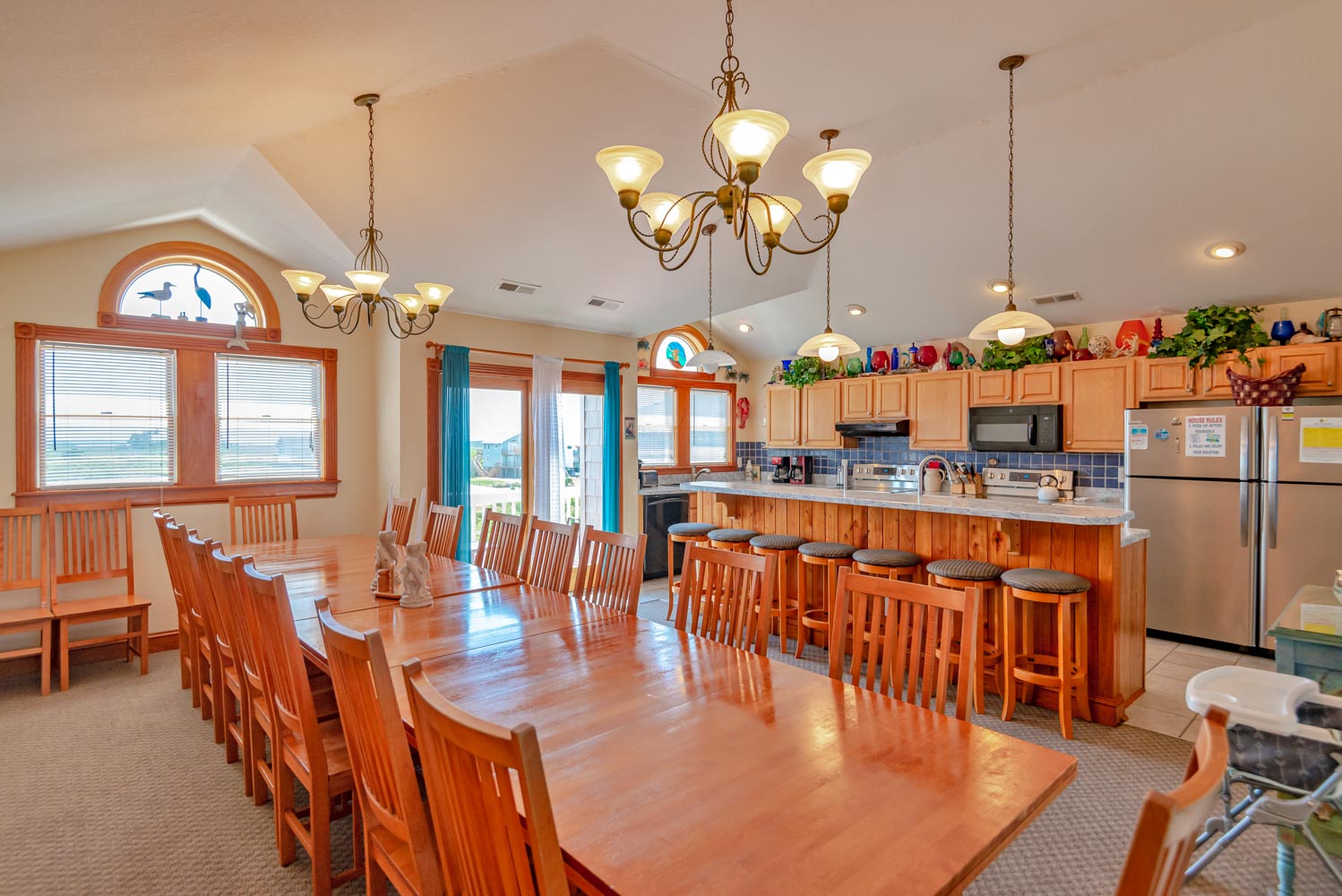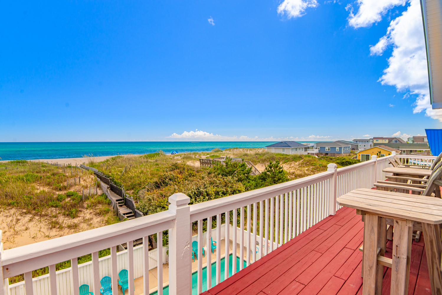 Ground Level: Parking for 9+ Cars, Six Steps to First Level Covered Entry, Foyer, Large Rec. Room w/Pool Table, Wet Bar w/Refrigerator, Microwave, Dishwasher, TV, Stereo, Half Bath (Accessible from Rec. Room & Pool Area), Laundry w/2 Washer/Dryer Sets, & Another Refrigerator, 4 Bedrooms (1 w/Queen & TV, 1 w/Duo Bunk w/Trundle & TV, 1 w/Queen & TV, 1 w/2 Bunk Sets & TV), 2 Shared Baths, Access to Landscaped Yard w/Volleyball Court, Private 16x32 Heated Swimming Pool - Open Seasonally (Can Be Heated for $475.00 Per Week, Plus Tax. Pool Temperature is Subject to Outside Temperatures and Conditions), 6 Person Hot Tub, Enclosed Outside Shower, Fish Cleaning Station, Charcoal Grill, & Walkway to Beach w/Dune Top Deck.