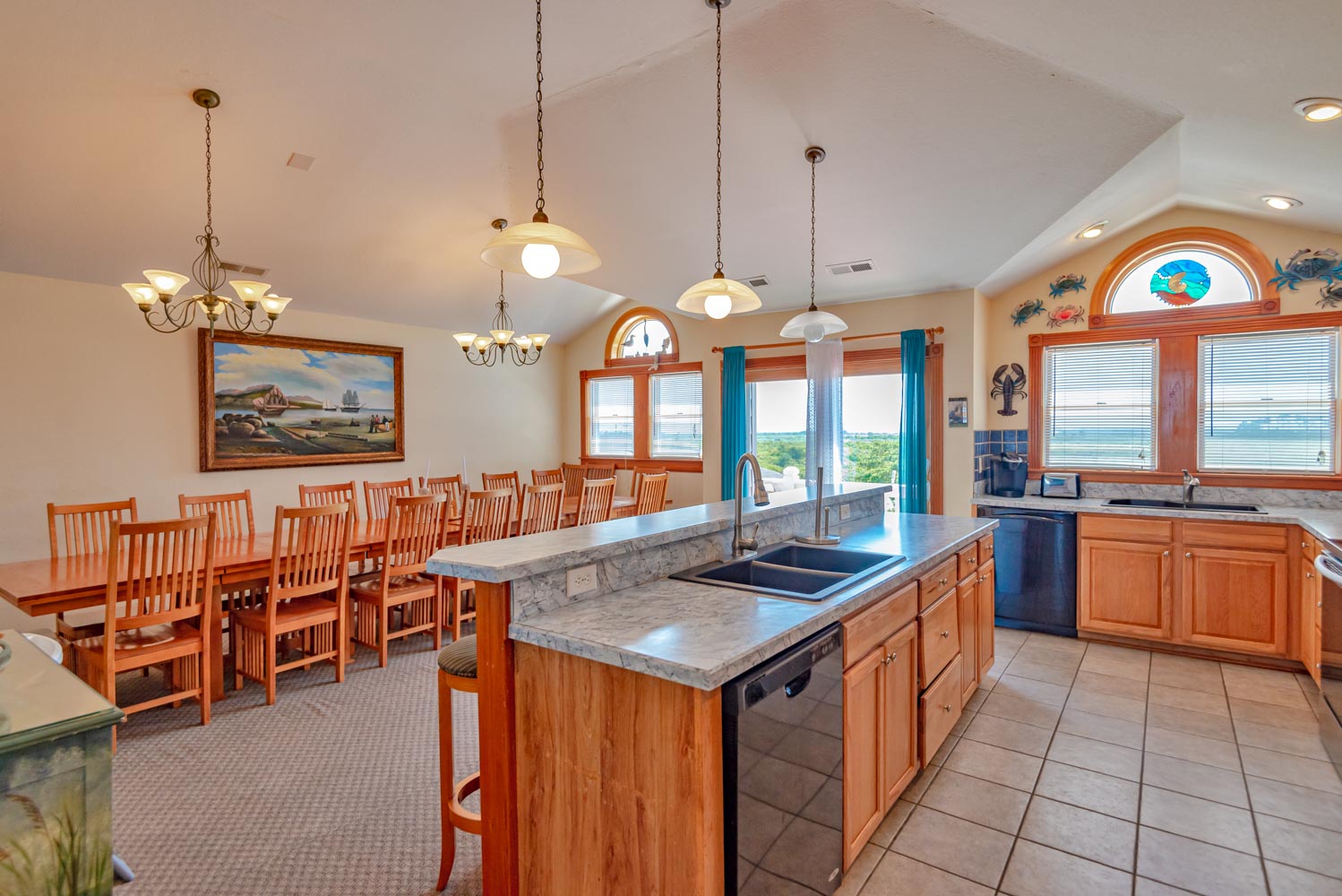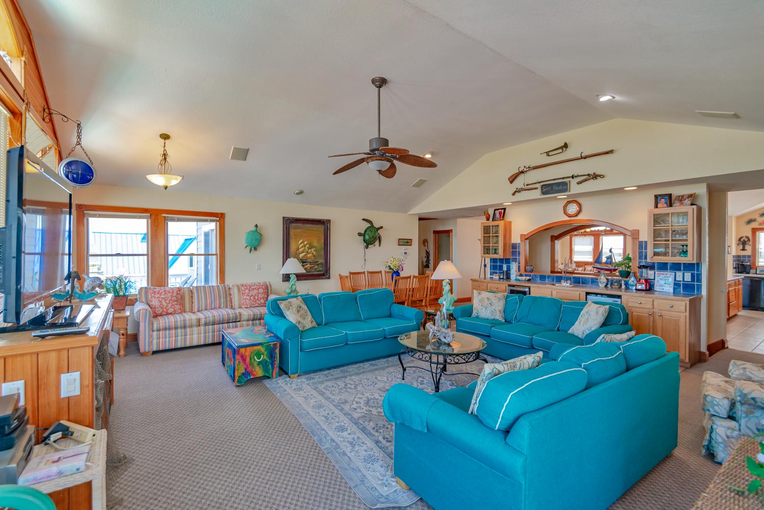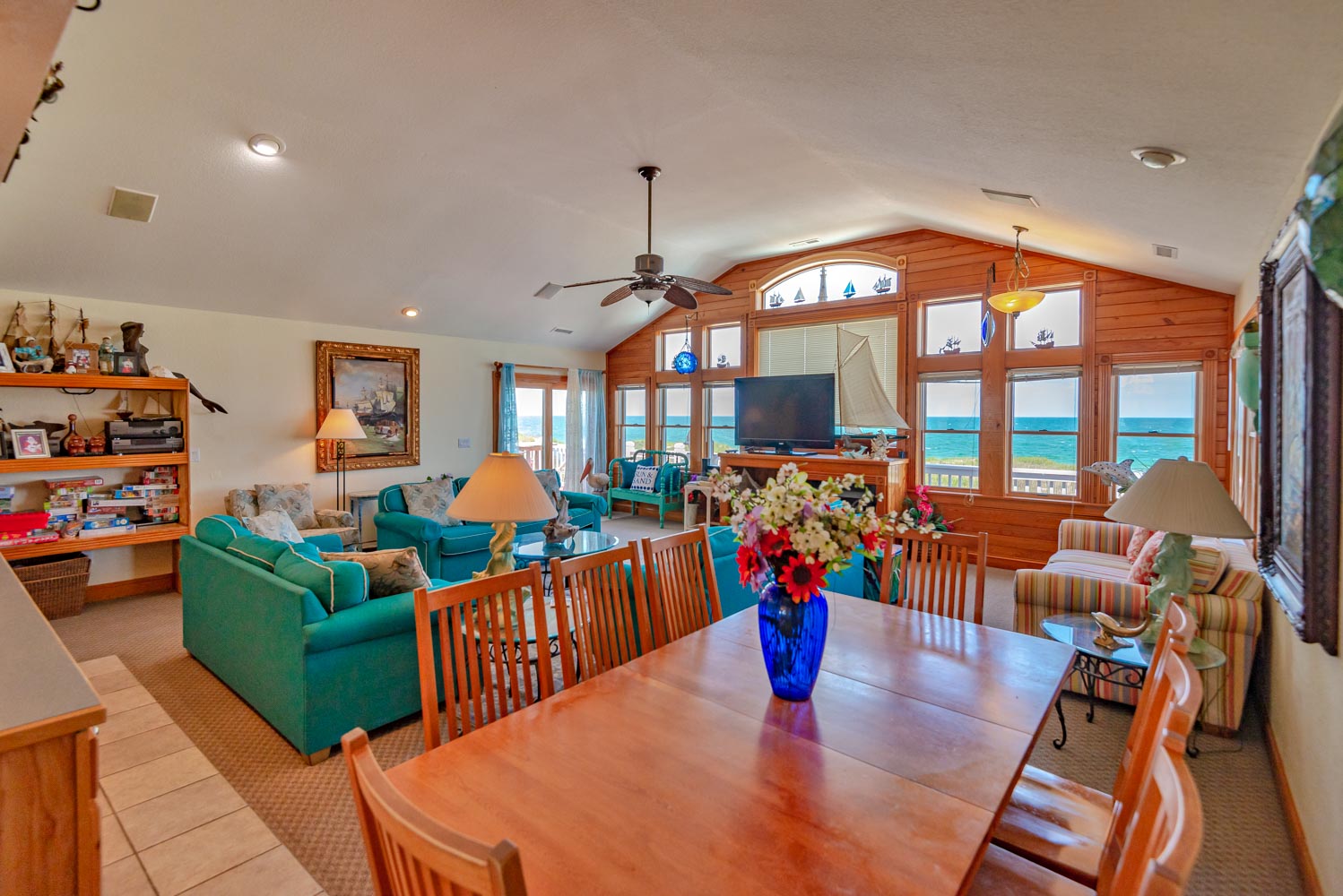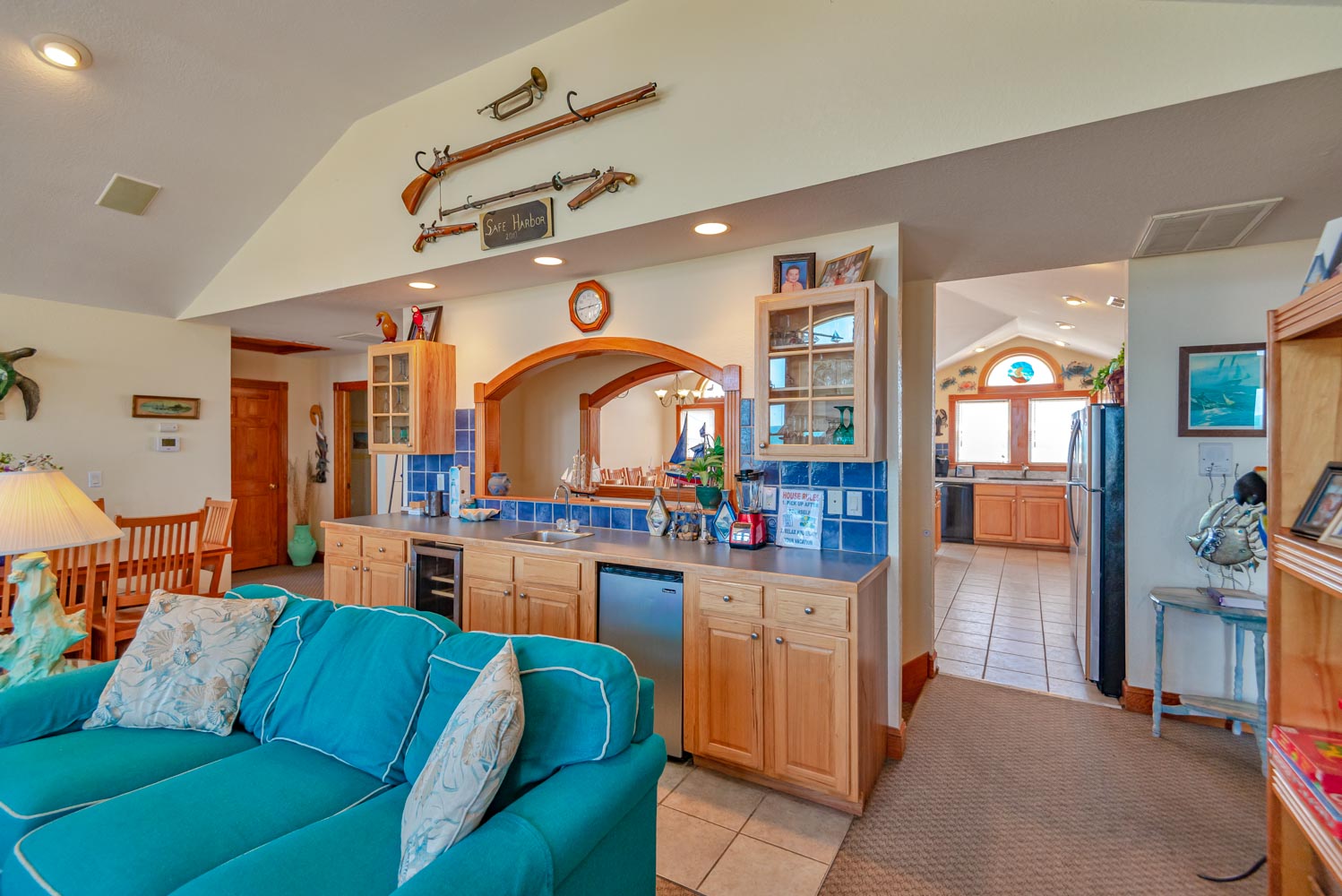 Top Level: Grand Living Area, TV, Stereo w/CD, Gas Fireplace, Wet Bar w/Mini-Refrigerator, Wine Cooler, Half Bath, Kitchen/Dining Area, w/2 Refrigerators, 2 Range Ovens, 2 Dishwashers, Microwave, Ample Seating, 2 Bedrooms (2 Private Suites w/Kings, CATVs, & Full Baths w/Jacuzzi's), & Oceanfront Sun Deck w/Deck Furniture & Outstanding Ocean Views.