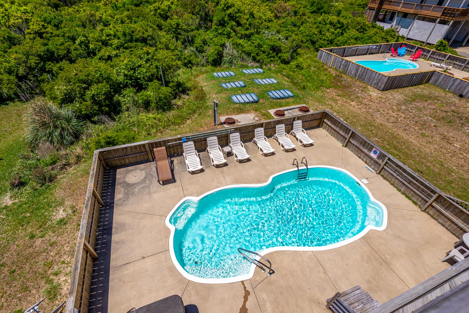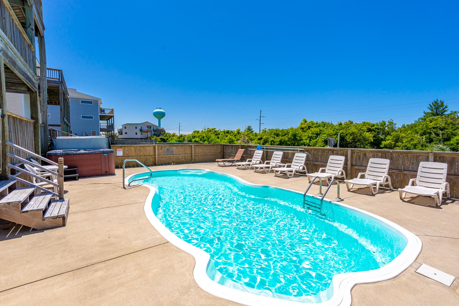 Ground Level: Ample Parking, Electric Car Charging Outlet, Covered Entry, Den, Large Smart TV, Teen Hangout Space, Wet Bar, Full Size Refrigerator, Microwave, Half Bath, Laundry Area, Private Suite w/King, Flat Screen TV, Full Bath, Access to Patio Area, Private Swimming Pool - Open Seasonally, Hot Tub, Enclosed Outside Shower, and Park Grill.