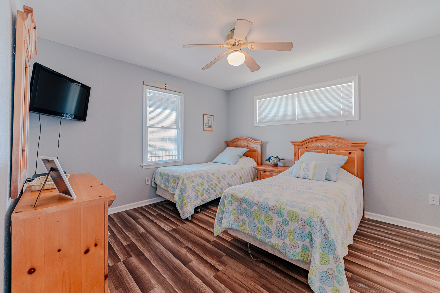 Mid Level: 4 Bedrooms (Private Suite w/King, Flat Screen TV, Full Bath; Private Suite w/Queen, Flat Screen TV, Full Bath, 1 w/Duo Bunk, Flat Screen TV; 1 w/2 Singles, Large Smart TV), Shared Full Bath, and 2 Covered Decks.