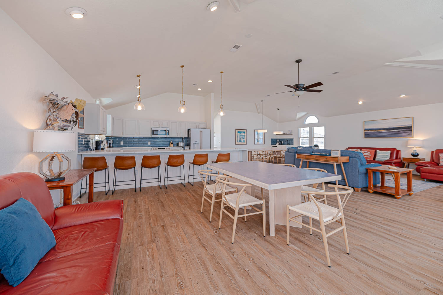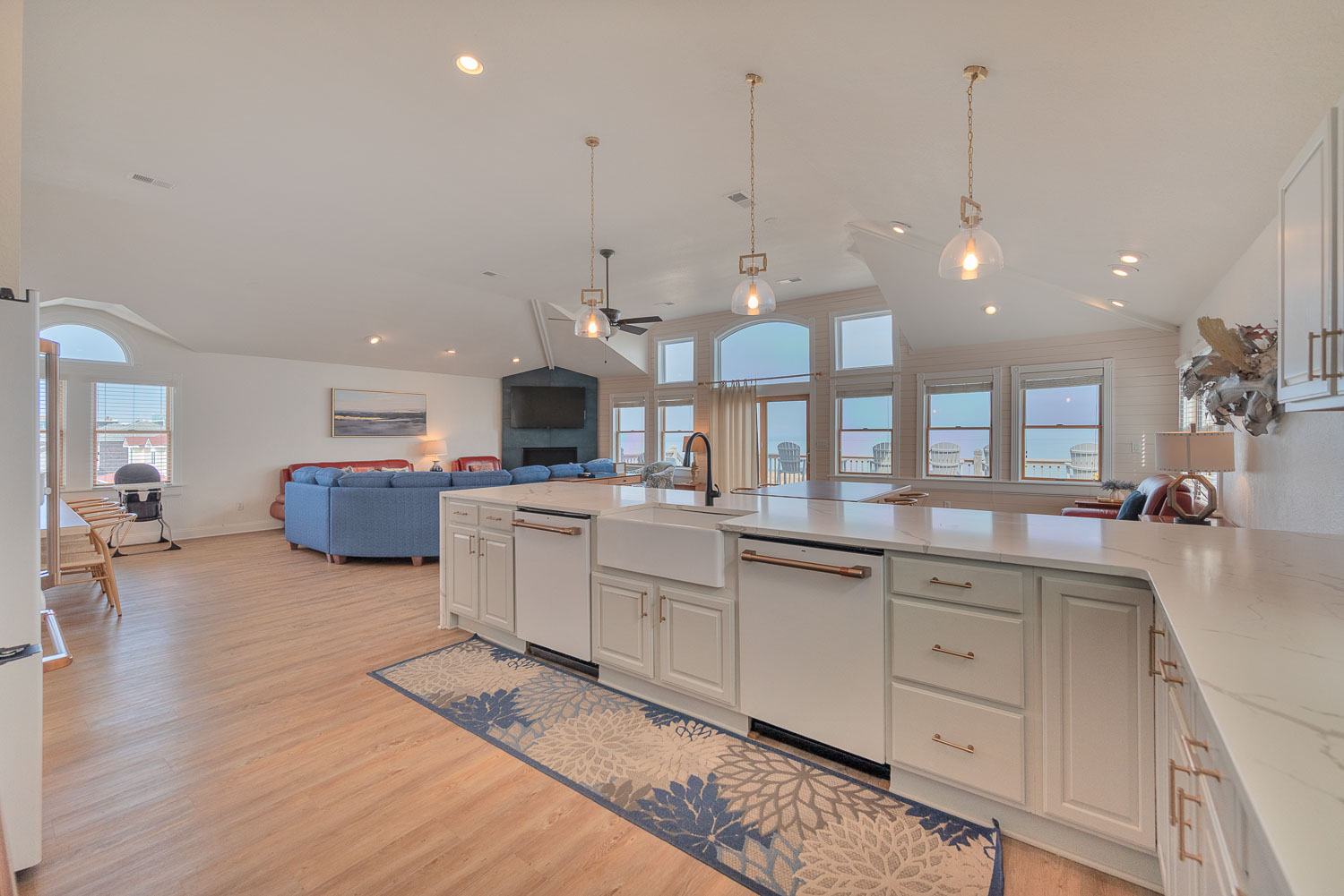 Top Level:Expansive Great Room, Jumbo Flat Screen HDTV, Gas Fireplace, Fantastic Ocean Views; Fully Equipped Kitchen, Granite Counter Tops, Breakfast Bar w/Seating for Six (6), Two (2) Dishwashers; Two (2) Dining Areas, Wet Bar w/Mini-Refrigerator, Powder Room, Access to Ships Watch; Grand Private Suite w/King, TV, Full Bath, Soaking Tub, Walk-In Shower; and Large Sun Deck w/Ample Seating.