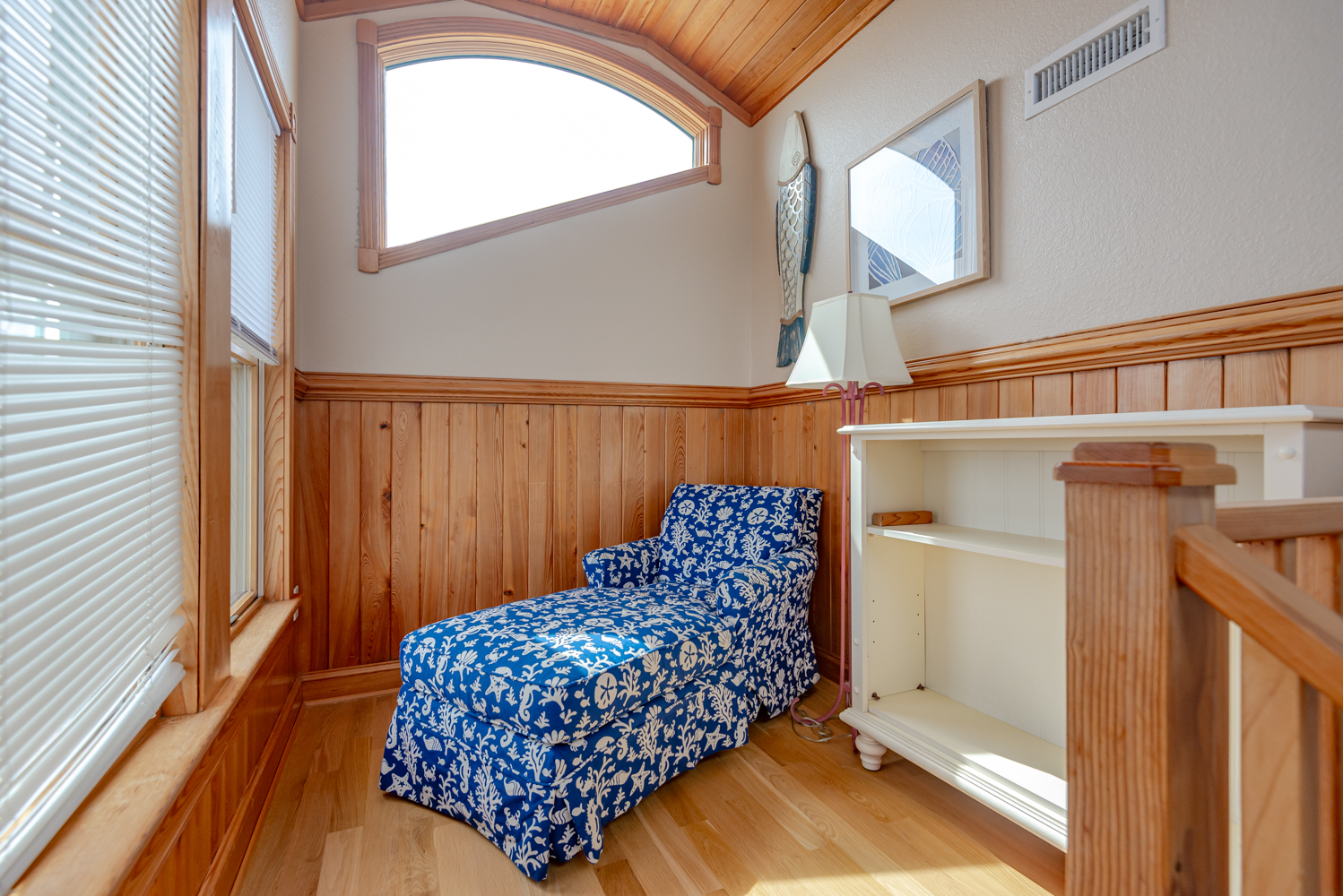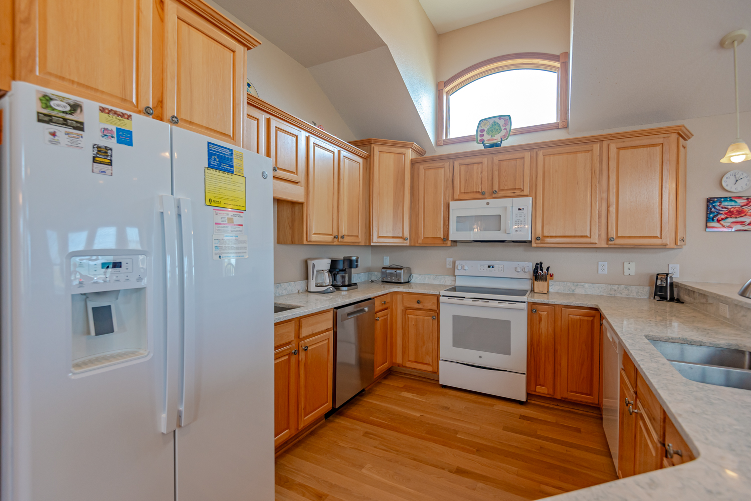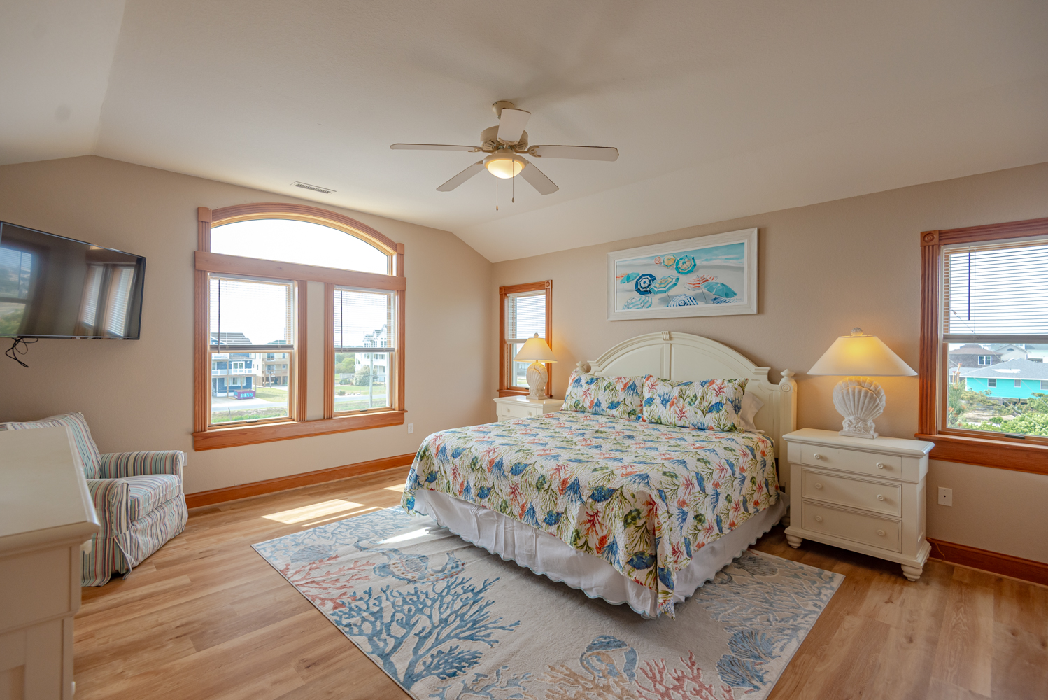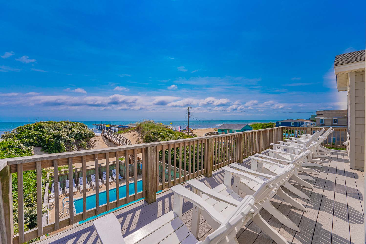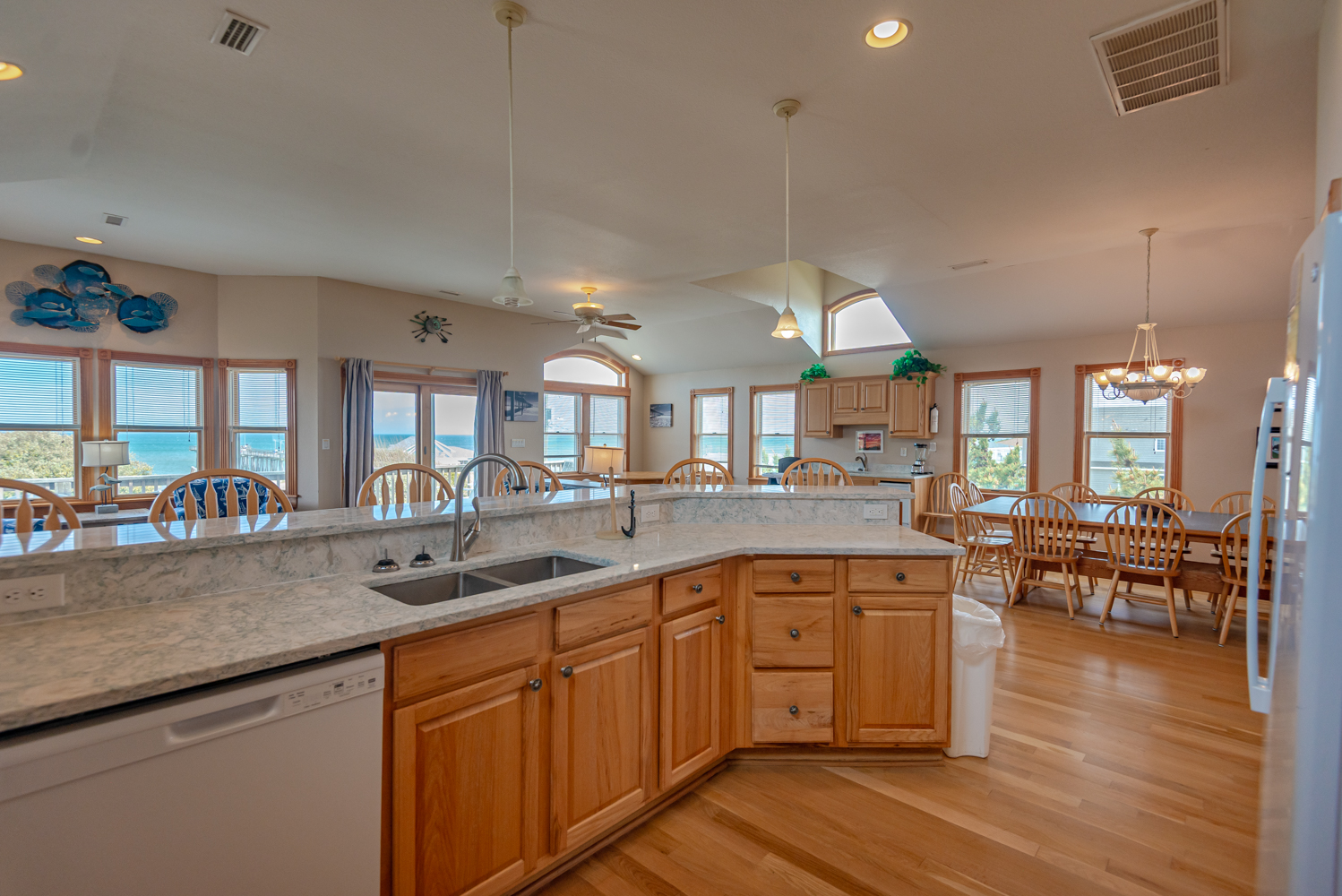 Top Level: Spacious Great Room w/Gas Fireplace, 32 Inch TV, DVD, Fully Equipped Kitchen, Dining Area that Seats 12, Half Bath, Wet Bar w/Ice Maker, Loft for Reading & Relaxing, Sound & Private Park View Suite w/King, TV, & Full Bath w/Garden Tub & Enclosed Shower, Oceanfront Sun Deck w/Fabulous Ocean Views, & Park View Screened Porch.