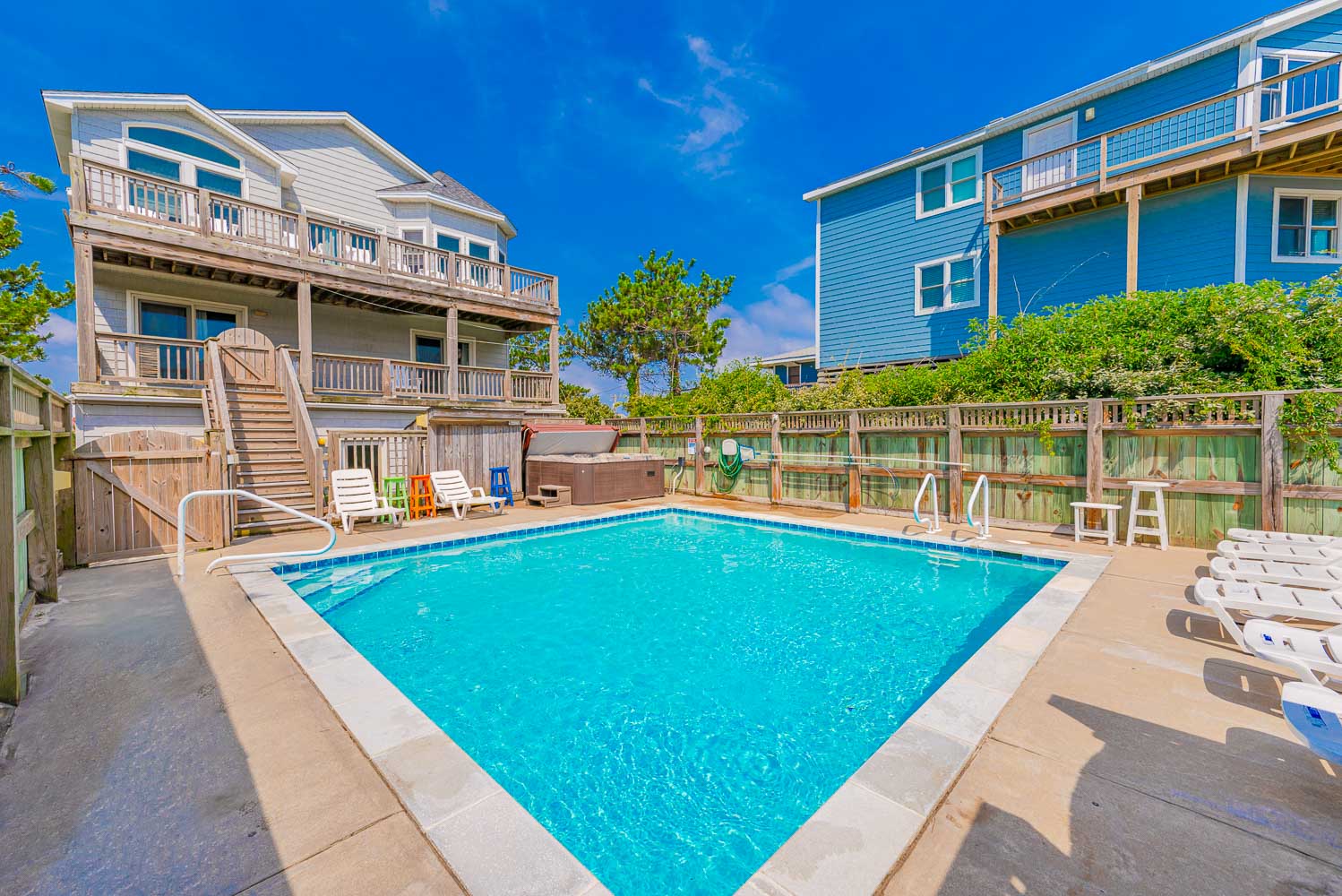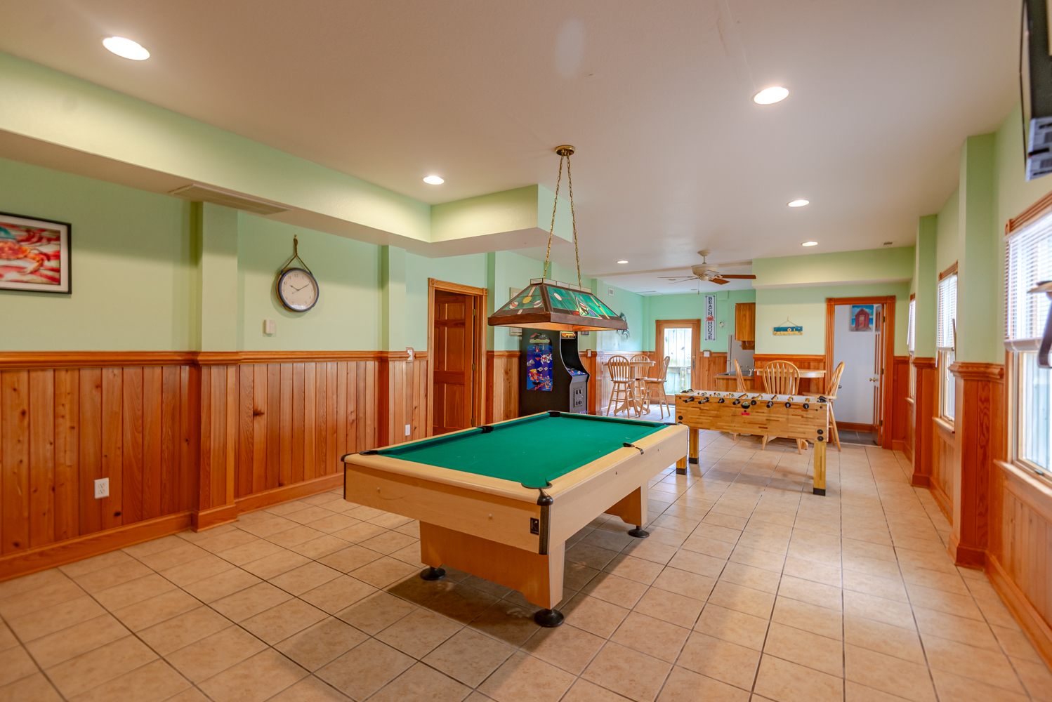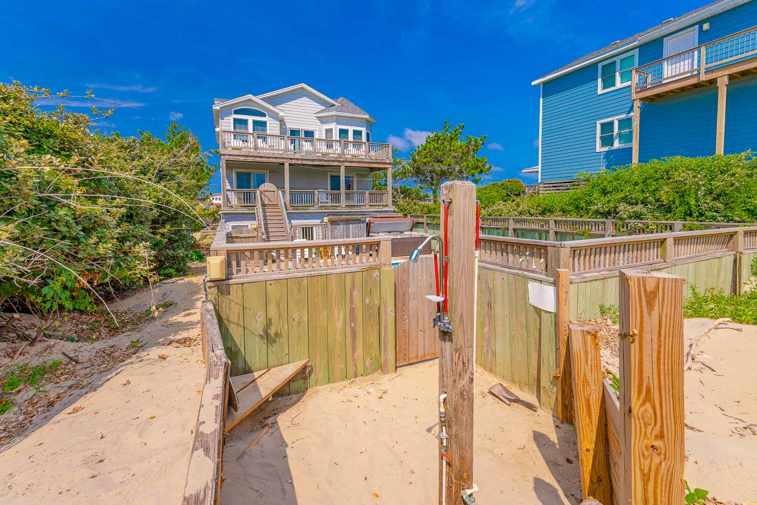 Ground Level: Parking for 6 Cars, Entry Door has a 3.5 Inch Lip to Access Home, Garage to Store Your Toys, Bikes, Kayaks, You Name It, Elevator to All Levels, Theater Room w/12 Recliners on 3 Tiers, Rec. Room w/Pool Table & Foosball Table, TV, Pub Style Seating, Bar Area, Half Bath, Private Poolside Suite w/Queen, TV, & Full Bath, Access to Pool Deck Area w/Gas Grill, Outside Half Bath, Private Heated Swimming Pool - Open Seasonally (Can Be Heated for $300.00 Per Week, Plus Tax. Please Bear in Mind That Pool Temperature is Subject to Outside Temperatures & Conditions), Hot Tub, Enclosed Outside Shower, Steps, & Walkway to Beach.