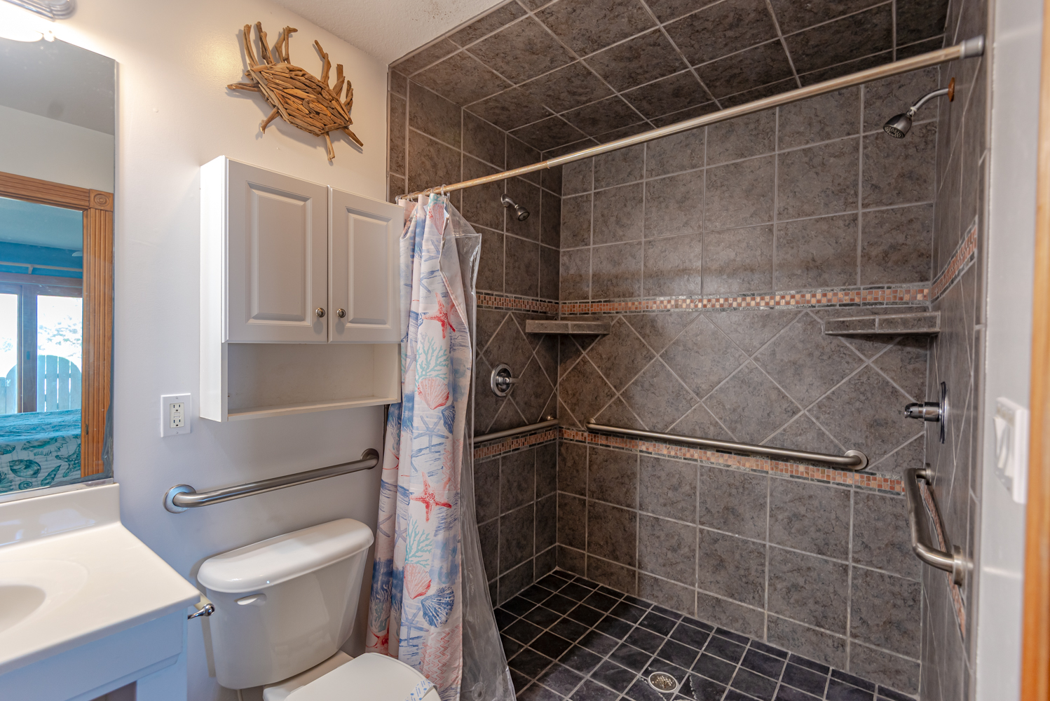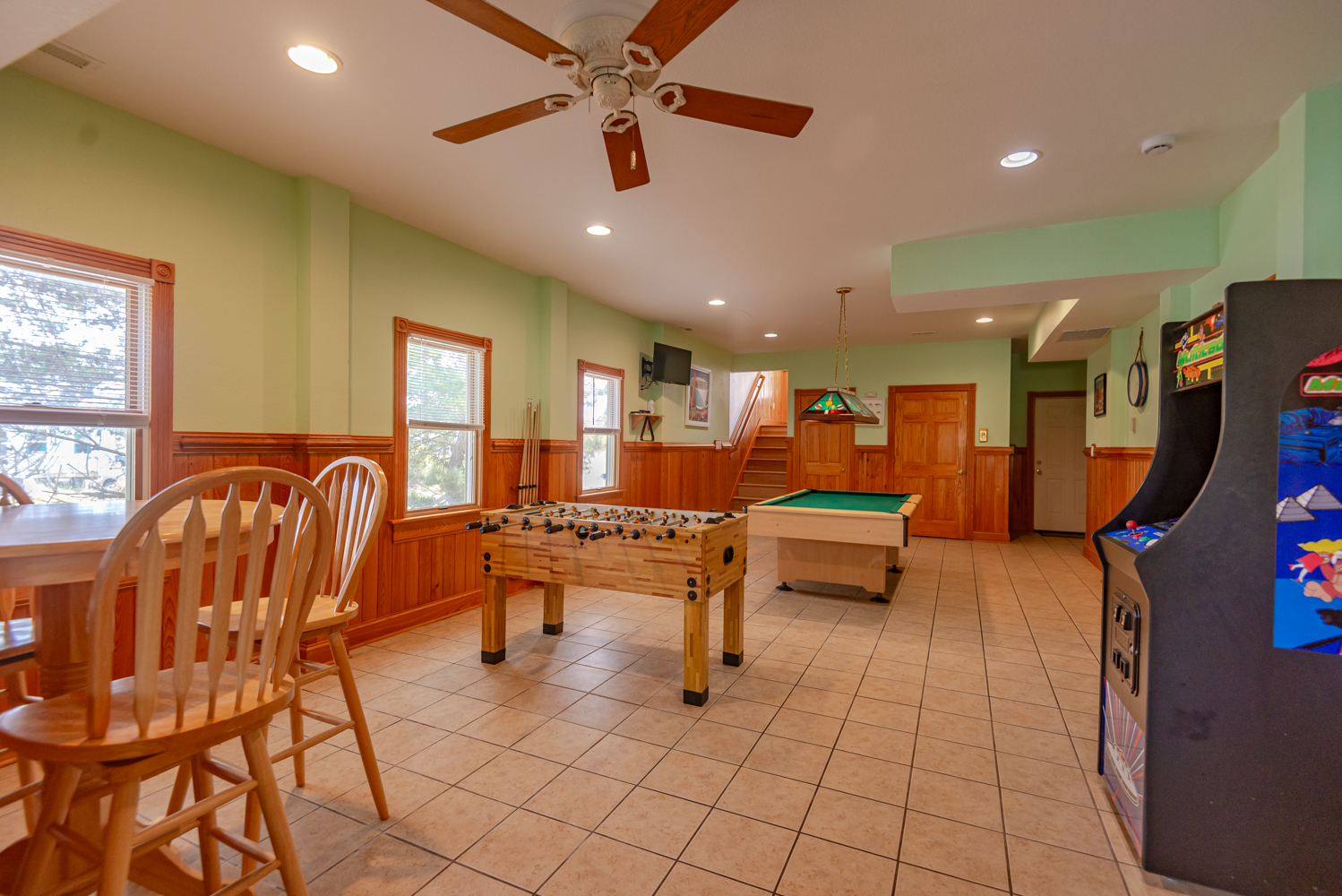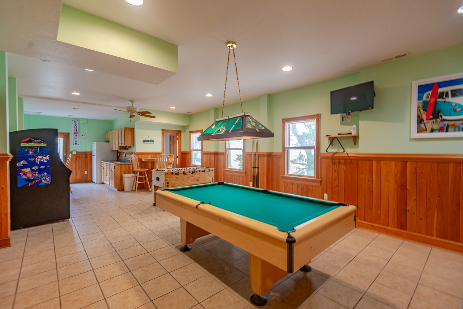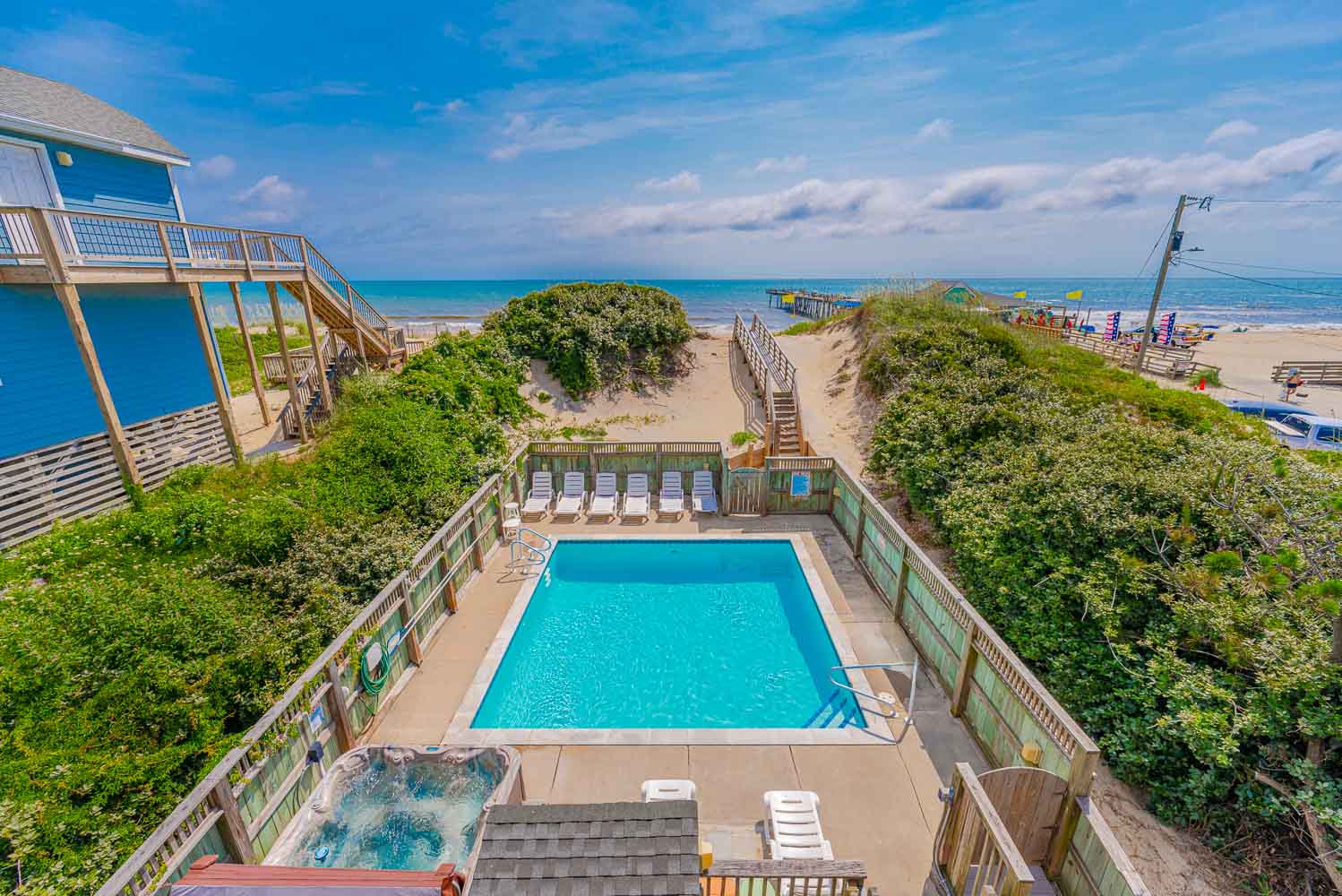 Ground Level: Parking for 6 Cars, Entry Door has a 3.5 Inch Lip to Access Home, Garage to Store Your Toys, Bikes, Kayaks, You Name It, Elevator to All Levels, Theater Room w/12 Recliners on 3 Tiers, Rec. Room w/Pool Table & Foosball Table, TV, Pub Style Seating, Bar Area, Half Bath, Private Poolside Suite w/Queen, TV, & Full Bath, Access to Pool Deck Area w/Gas Grill, Outside Half Bath, Private Heated Swimming Pool - Open Seasonally (Can Be Heated for $300.00 Per Week, Plus Tax. Please Bear in Mind That Pool Temperature is Subject to Outside Temperatures & Conditions), Hot Tub, Enclosed Outside Shower, Steps, & Walkway to Beach.