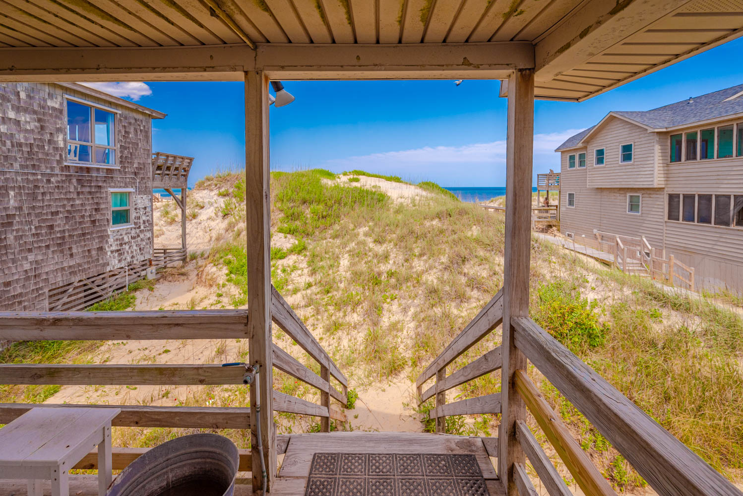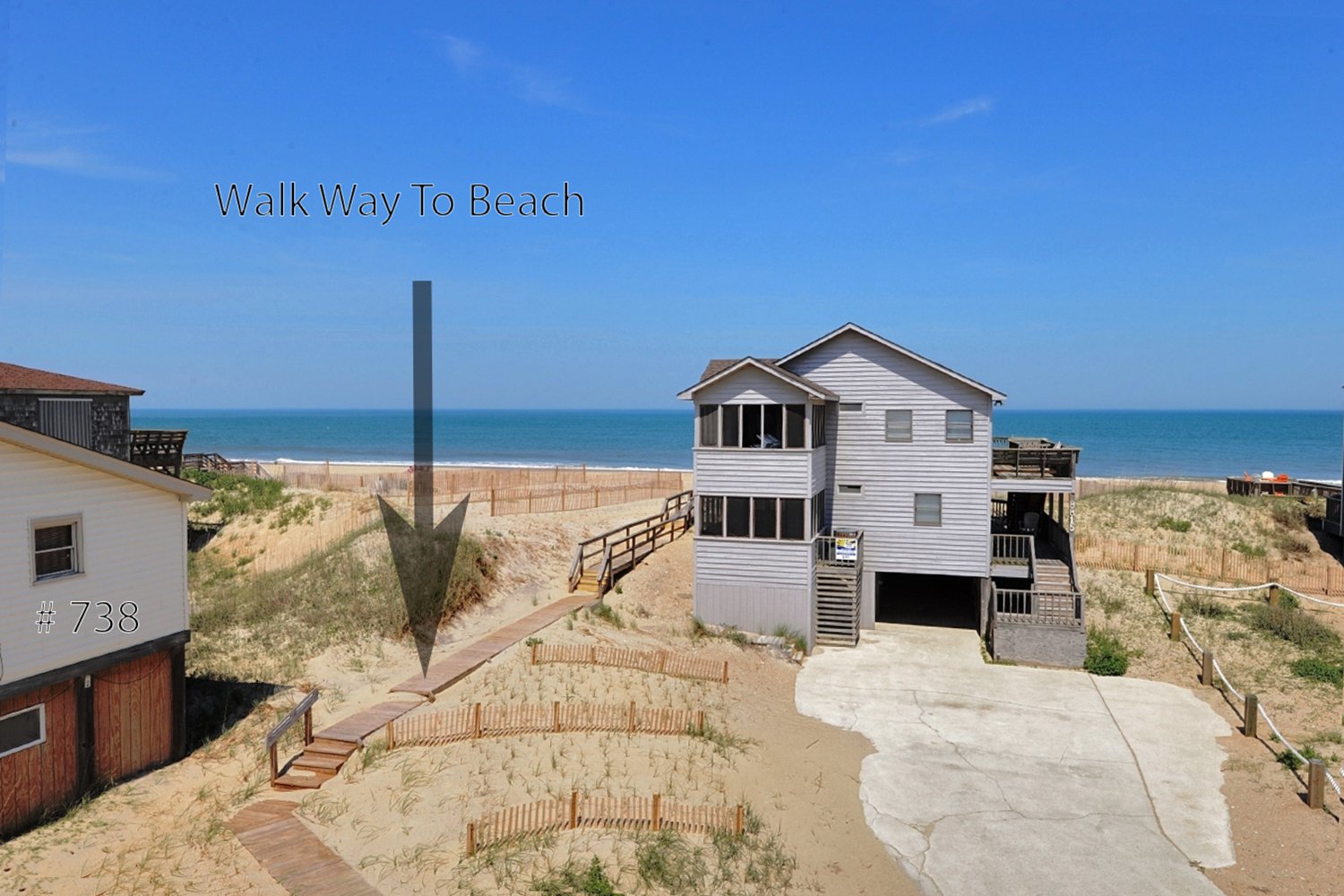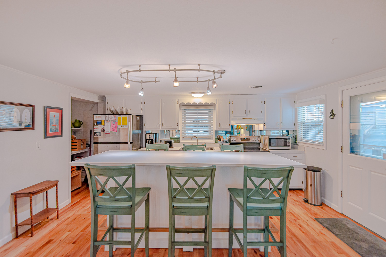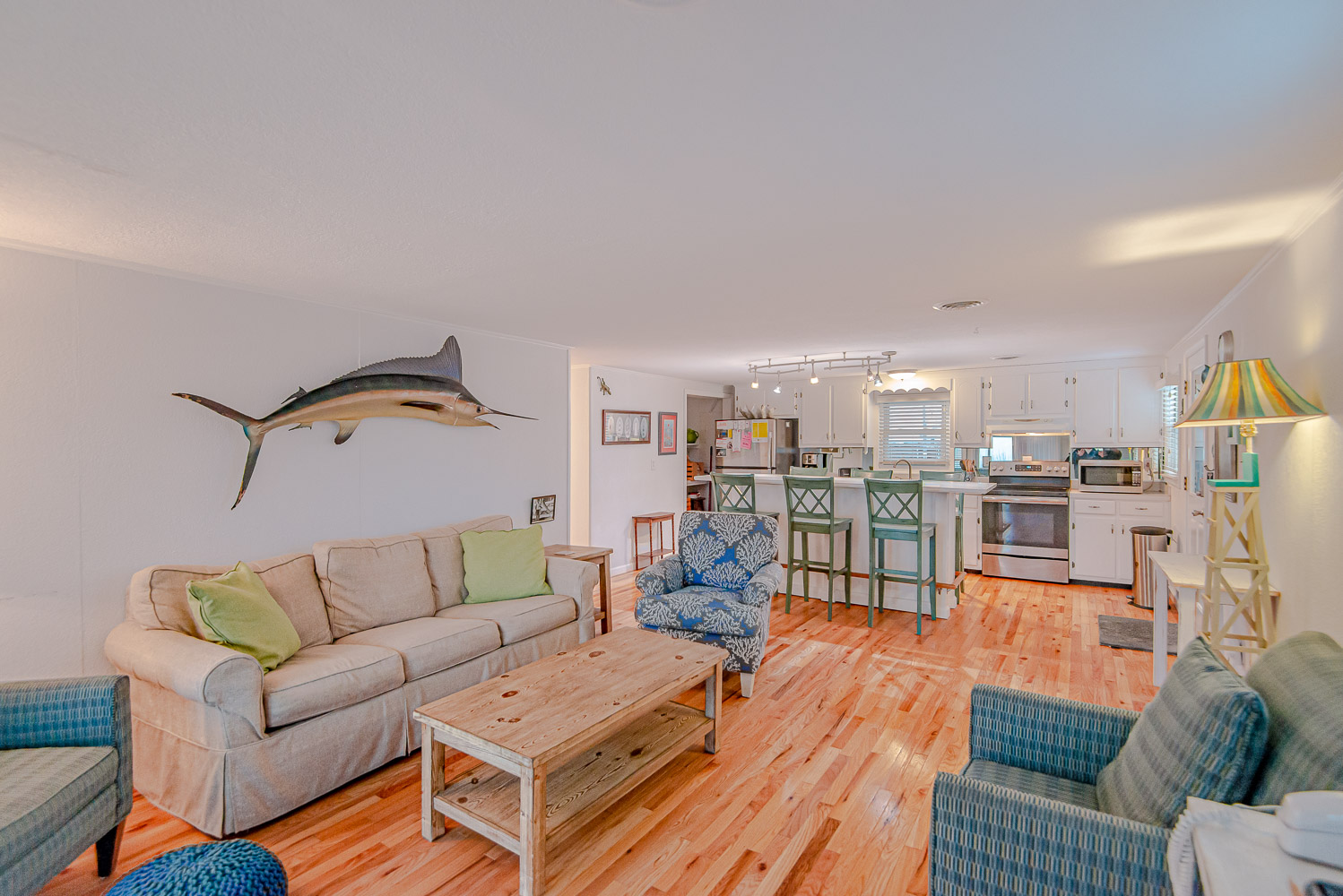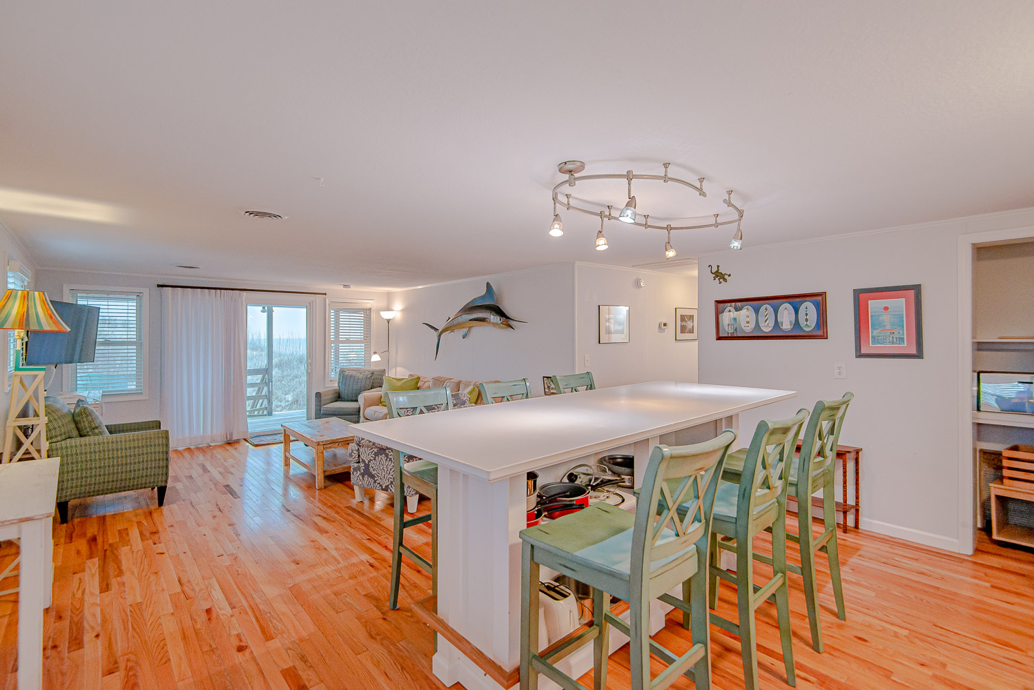 Main Level: Living/Dining/Kitchen Combo, Ocean Views, 2 Smart Flat Screen TV’s (48 Inch & 40 Inch), Queen Sleep Sofa, Hardwood Floors, Island Bar Dining, 3 Bedrooms (Private Suite w/Queen, TV, & Full Bath, 1 w/Queen, 1 w/2 Singles), Full Hall Bath, & a Covered Oceanfront Deck.