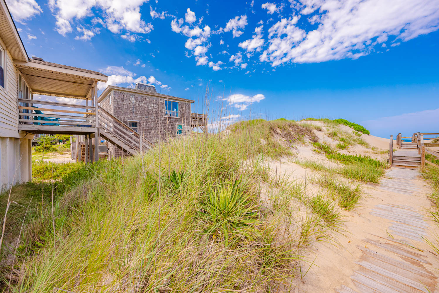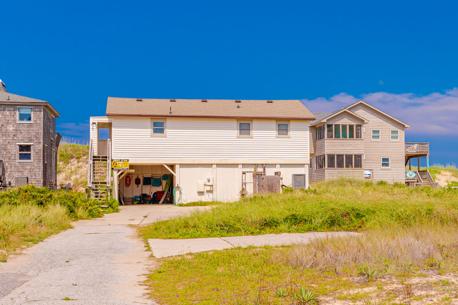 Ground Level: Parking for 3 Cars, Carport, Storage Area w/Laundry, Outside Shower, & Shared Walkway to Beach.